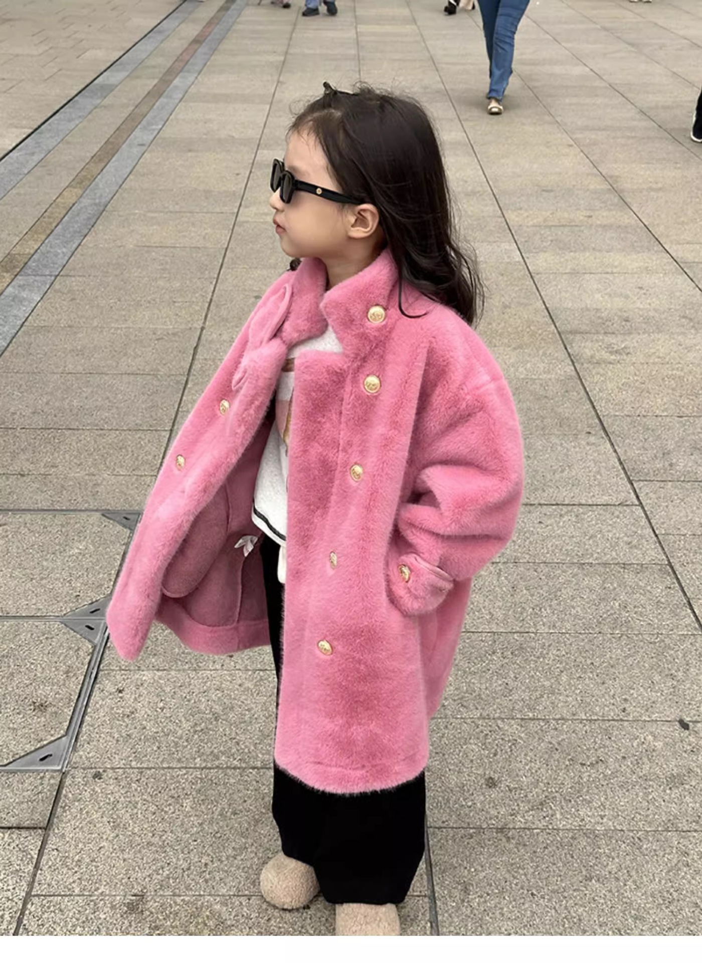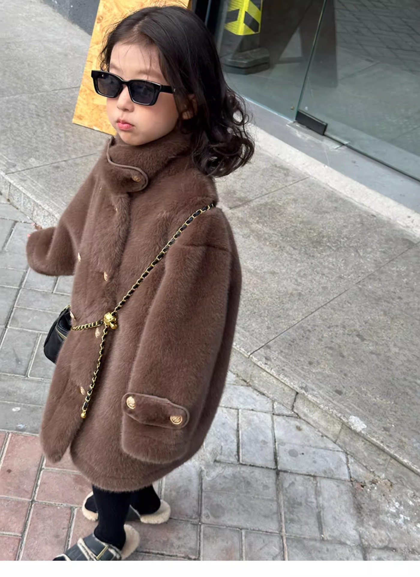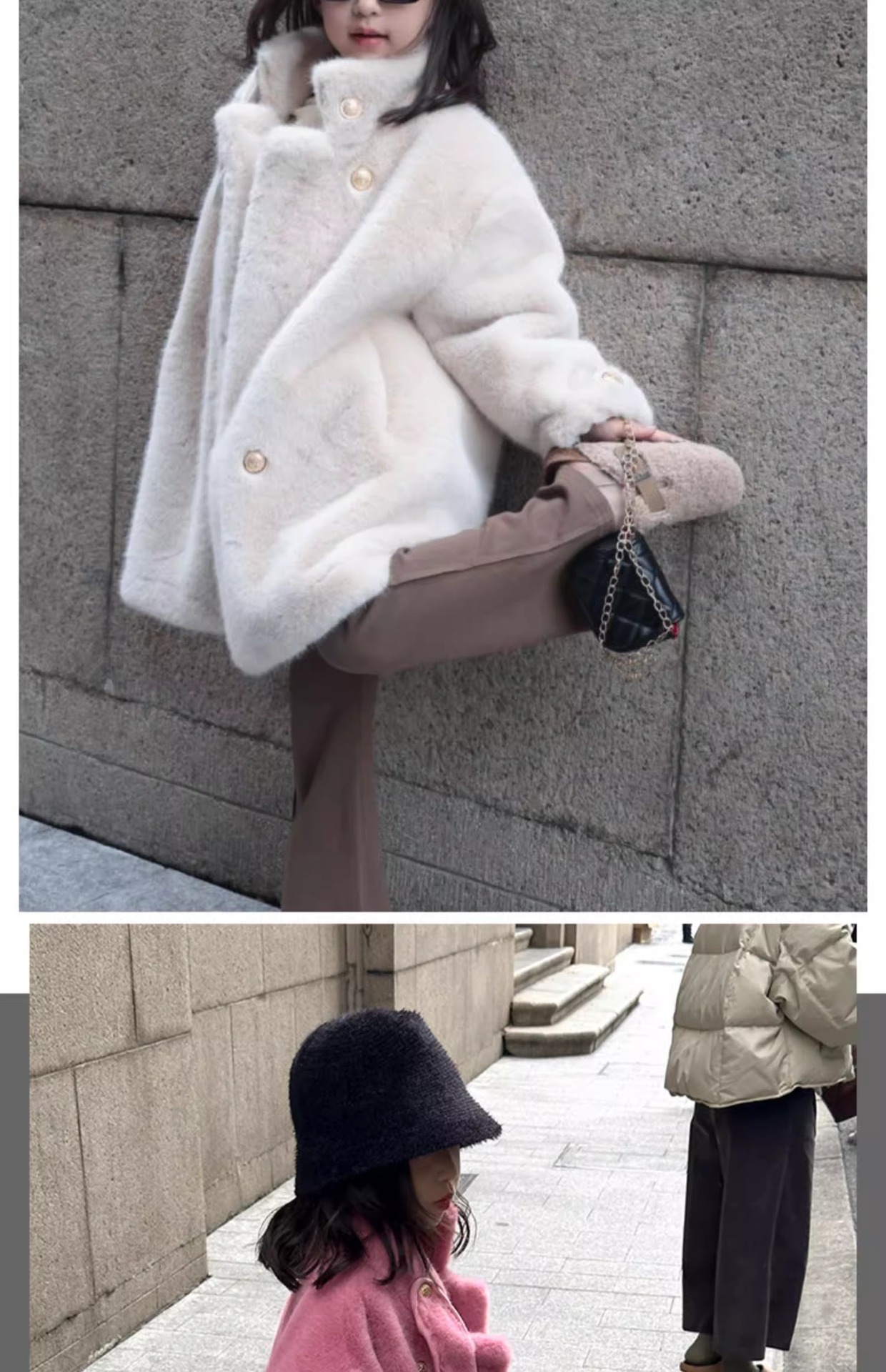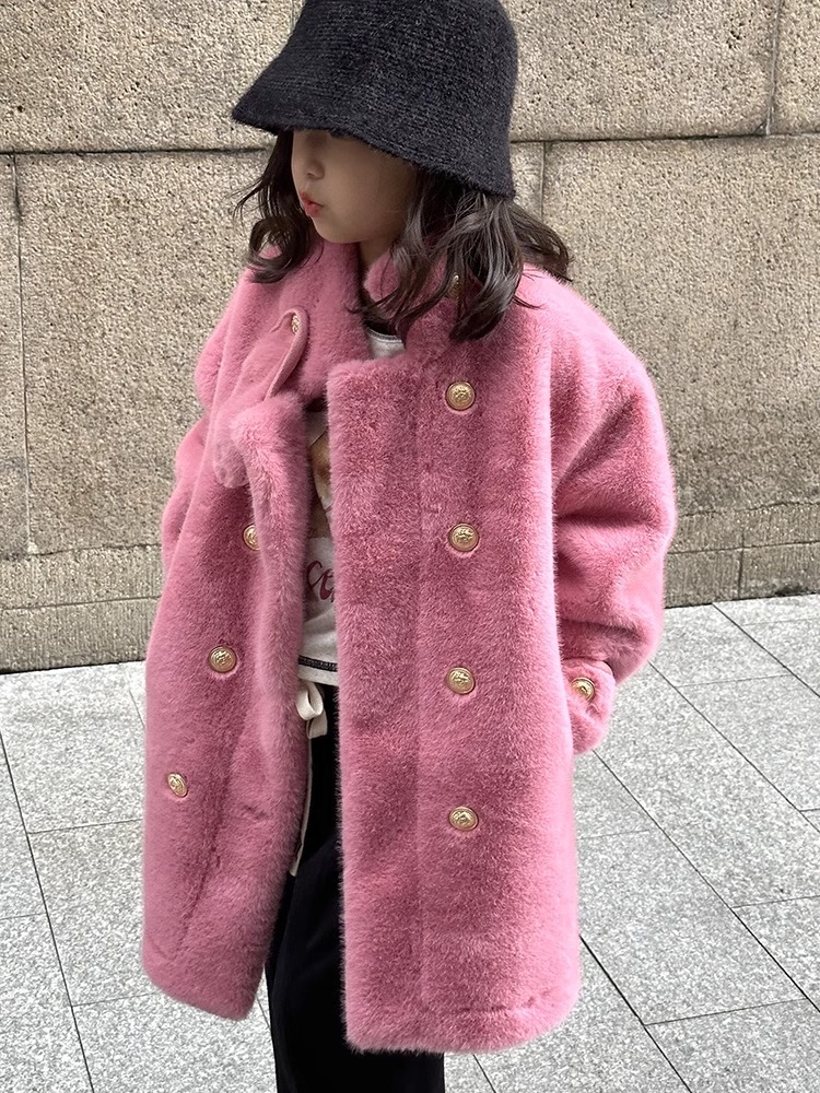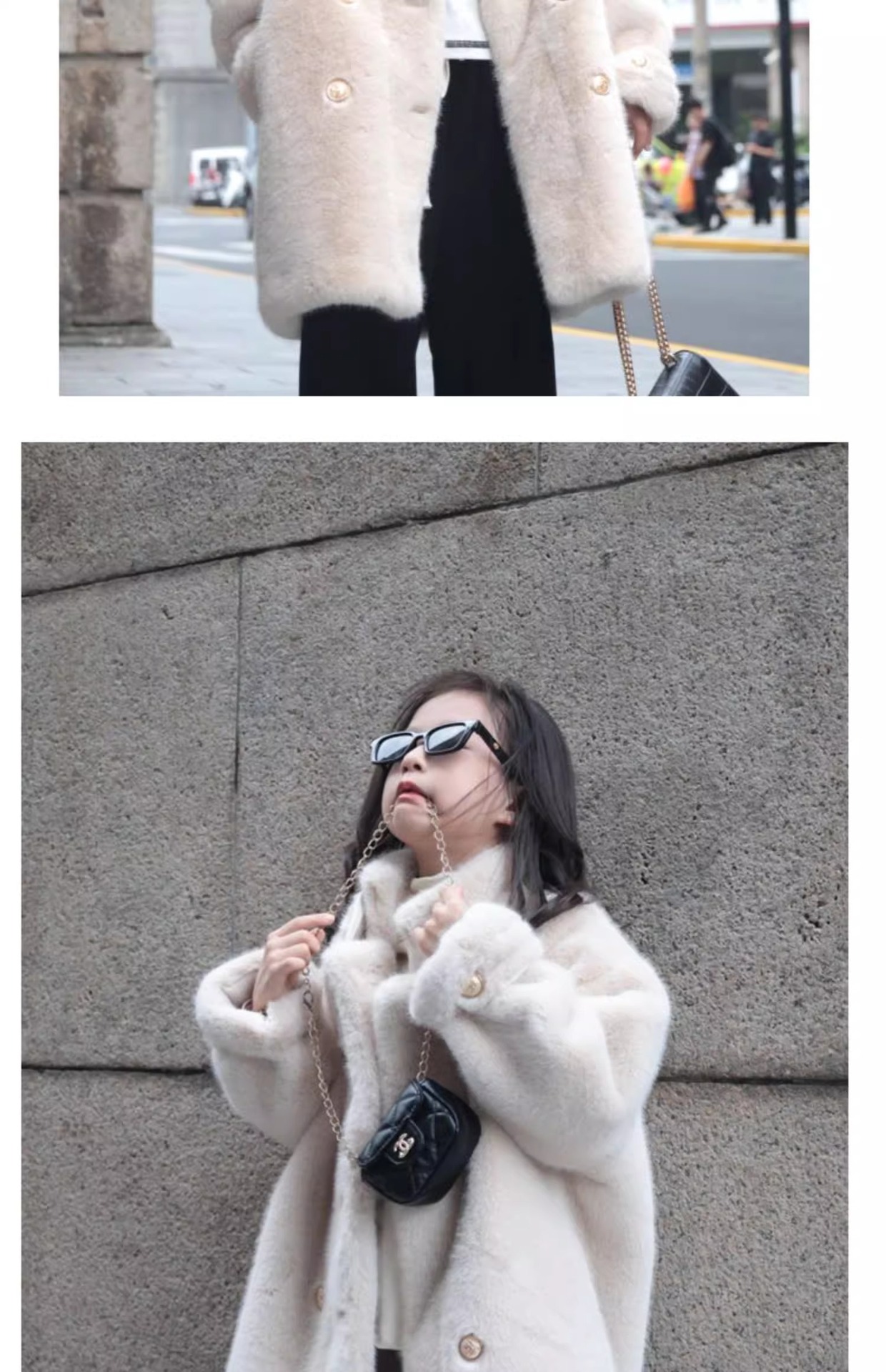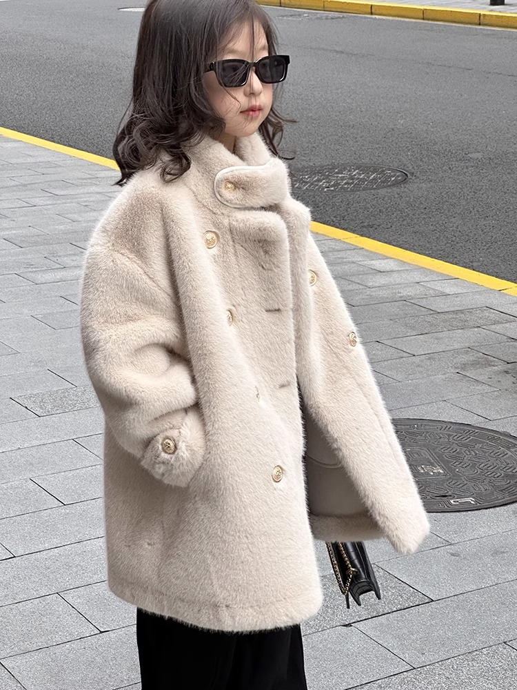 Универсальная верхняя одежда из меха для девочек, зимняя верхняя одежда из искусственного меха, новый стиль, шерсть ягненка средней длины для маленьких девочек, большой размер