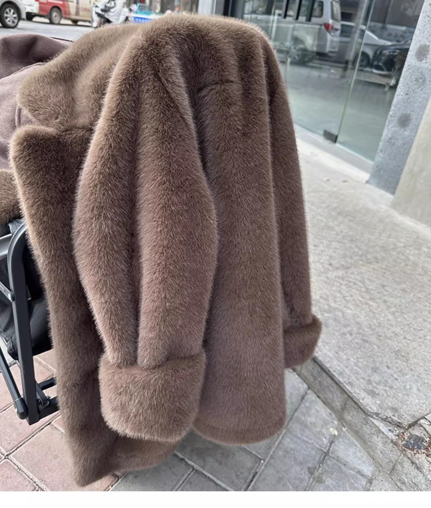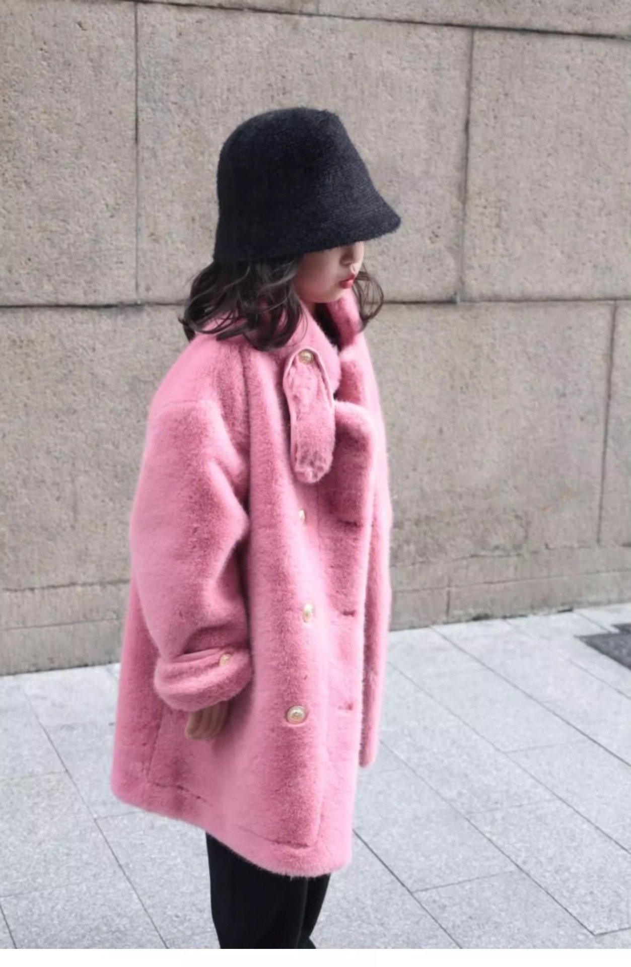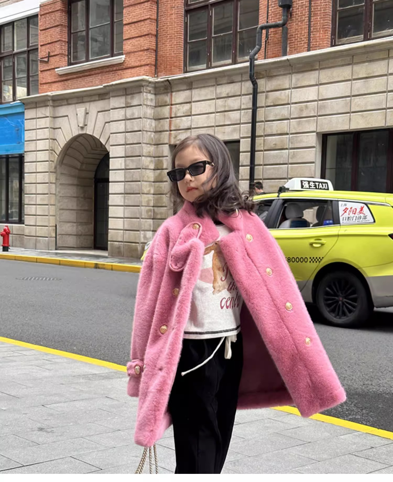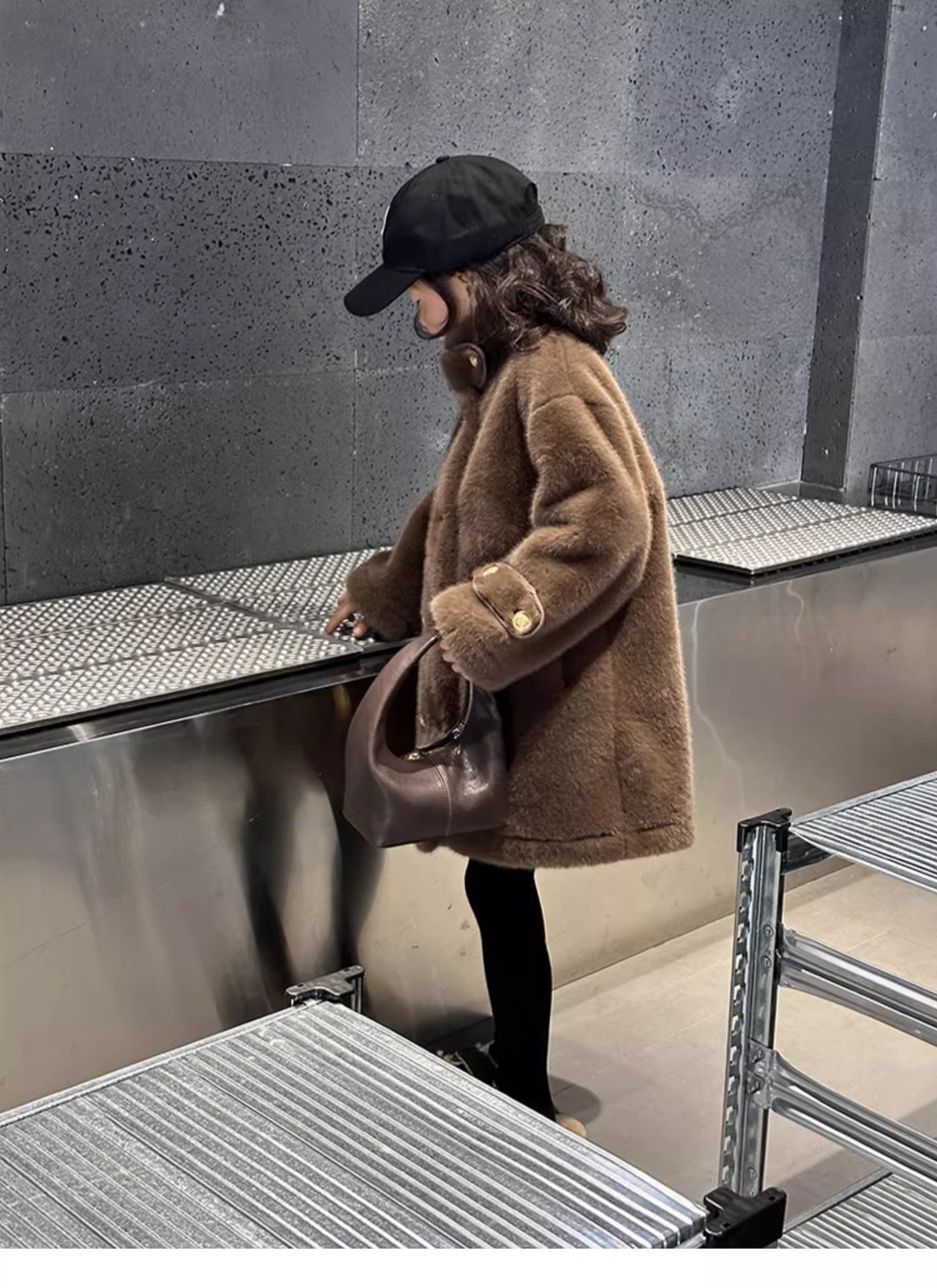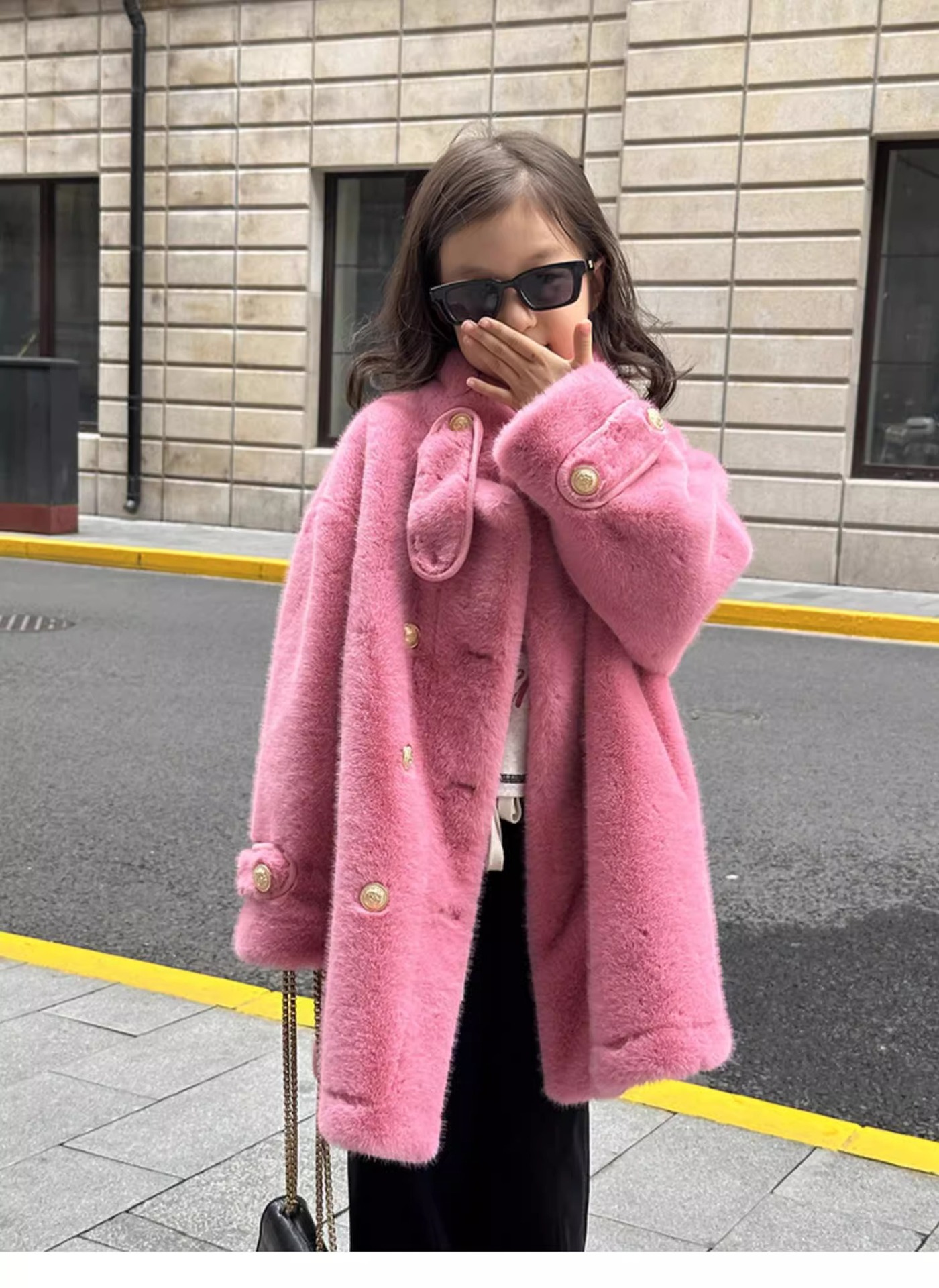 Универсальная верхняя одежда из меха для девочек, зимняя верхняя одежда из искусственного меха, новый стиль, шерсть ягненка средней длины для маленьких девочек, большой размер
