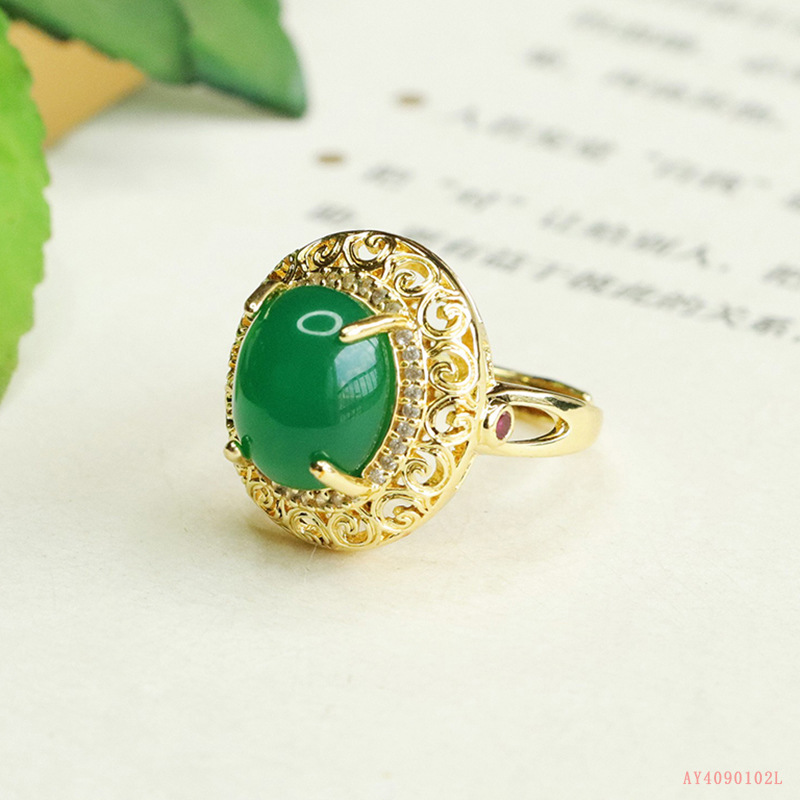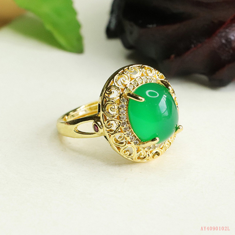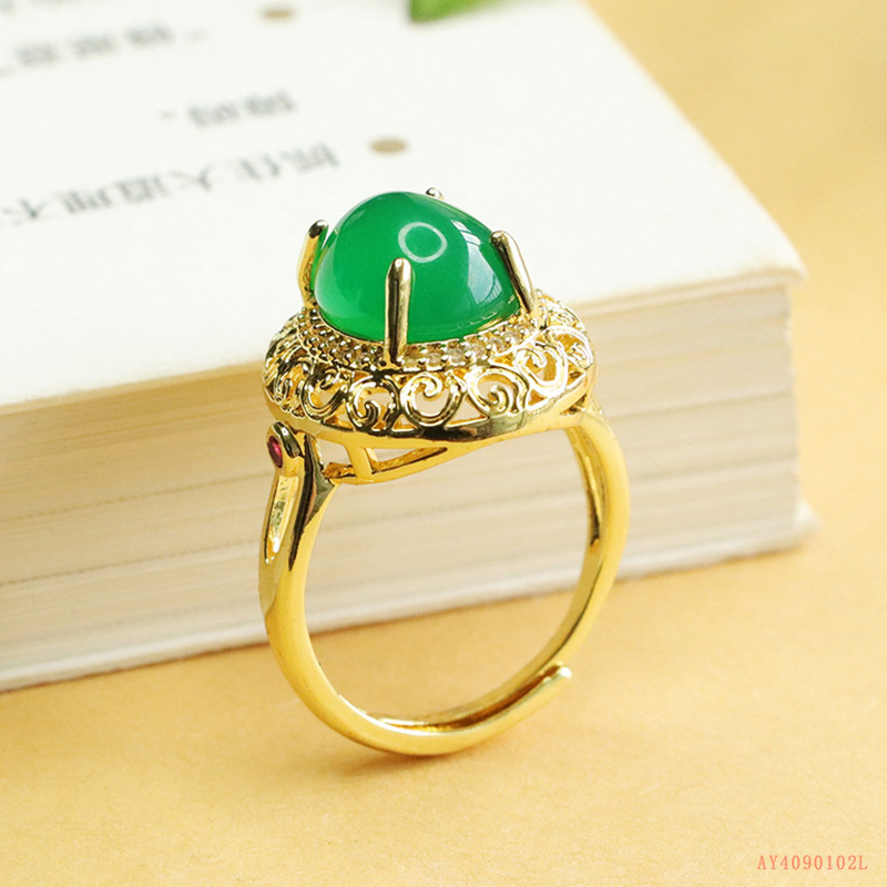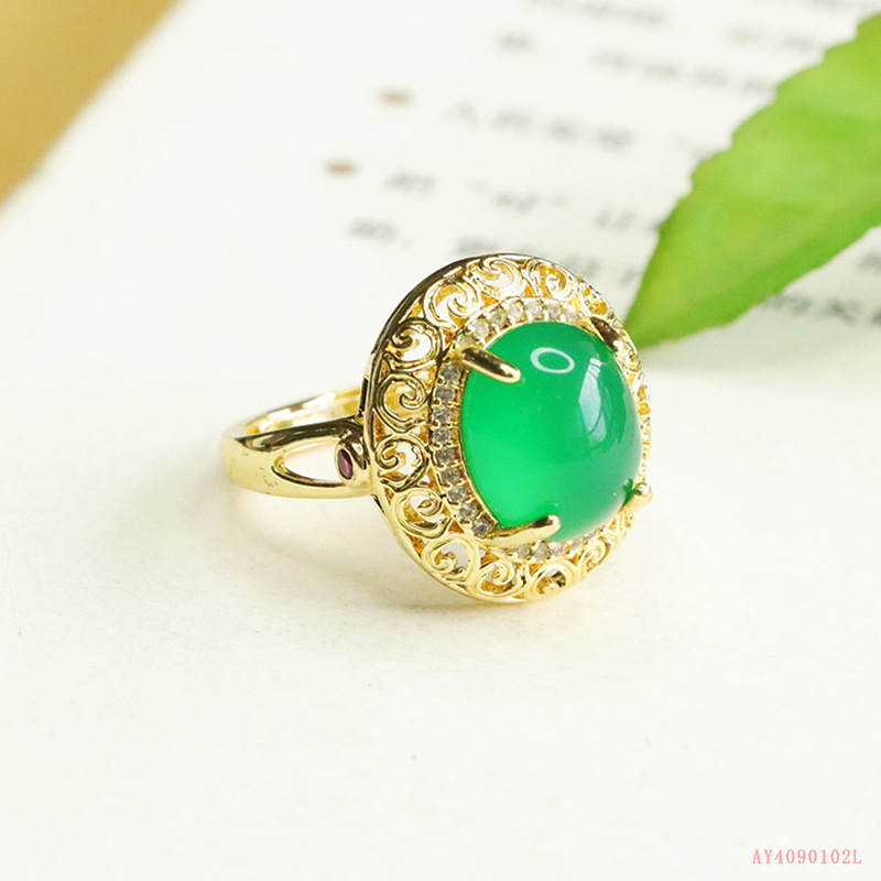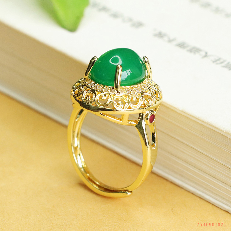 Aiyu натуральный зеленый халцедон кольцо агат хрустальное кольцо ретро ювелирные изделия для женщин оптом AY4090102L