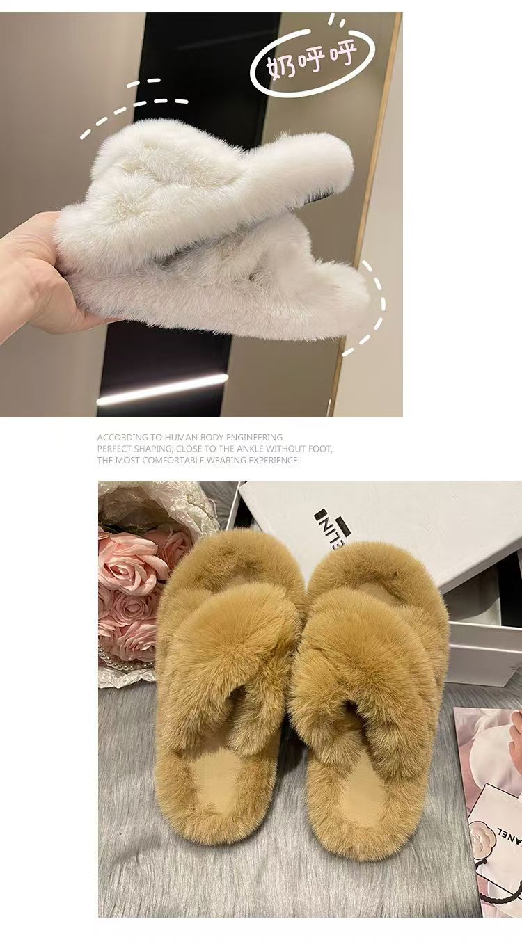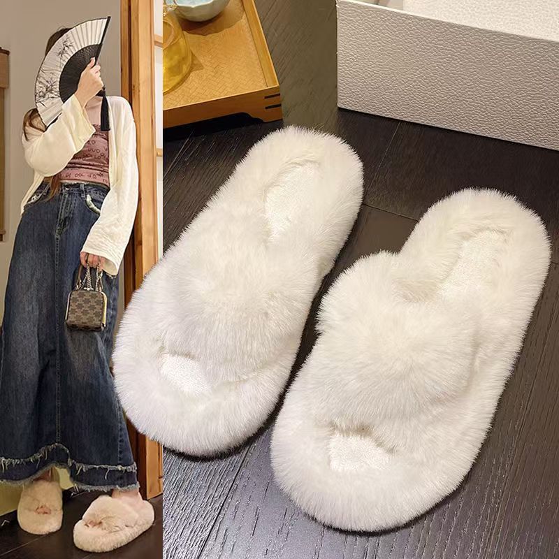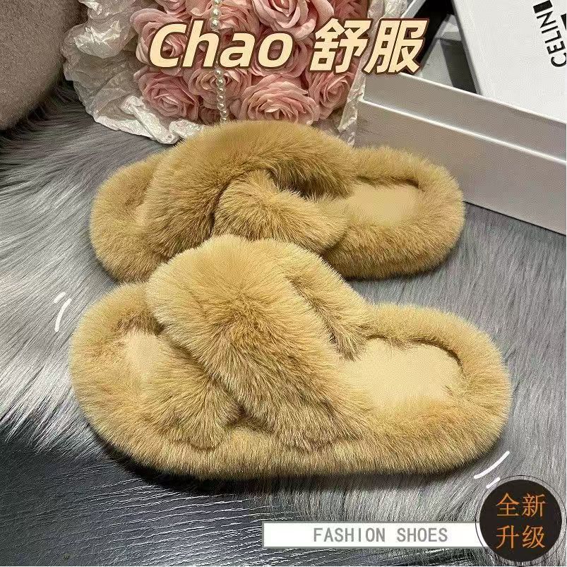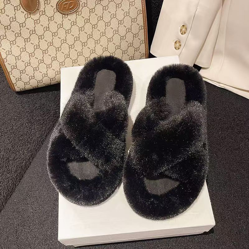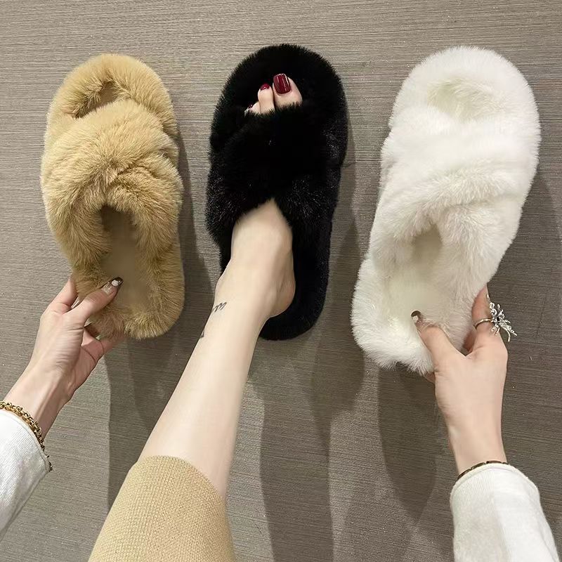 Волосатые хлопчатобумажные тапочки женские осень-зима
