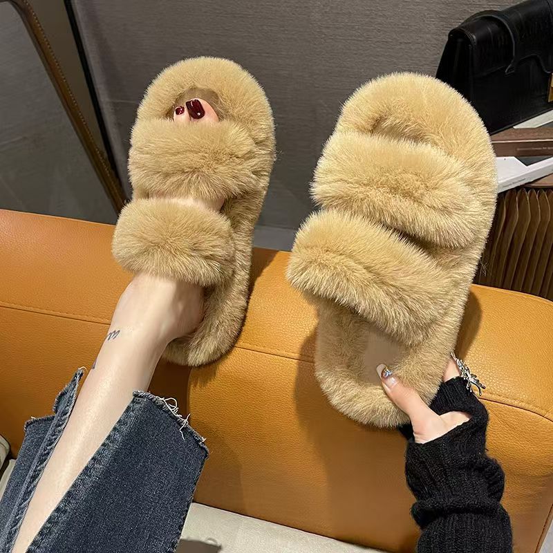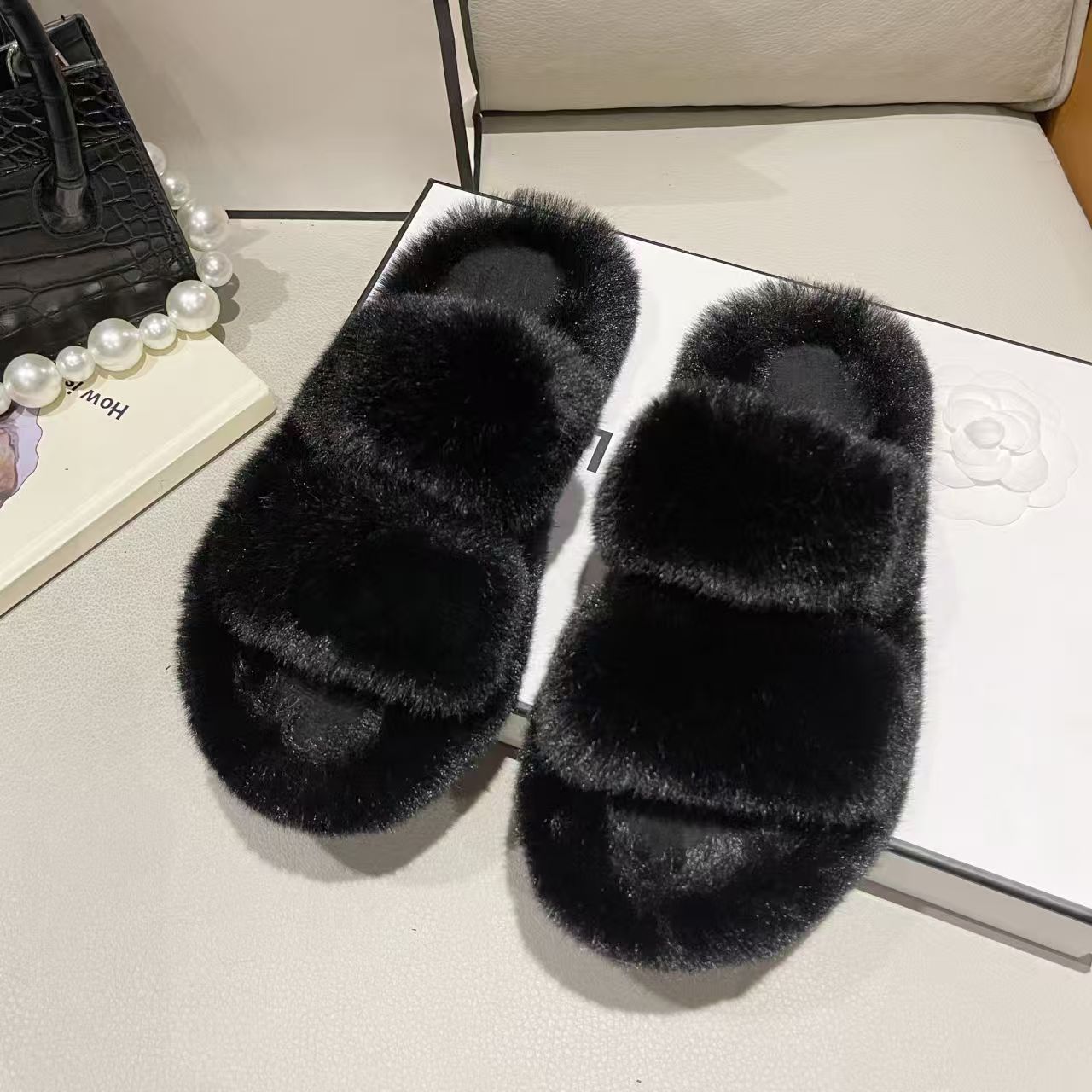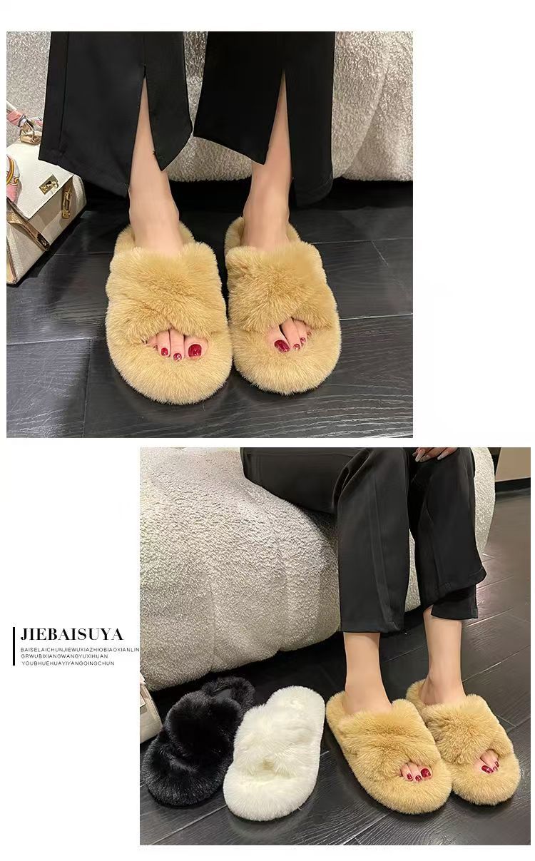 Волосатые хлопчатобумажные тапочки женские осень-зима