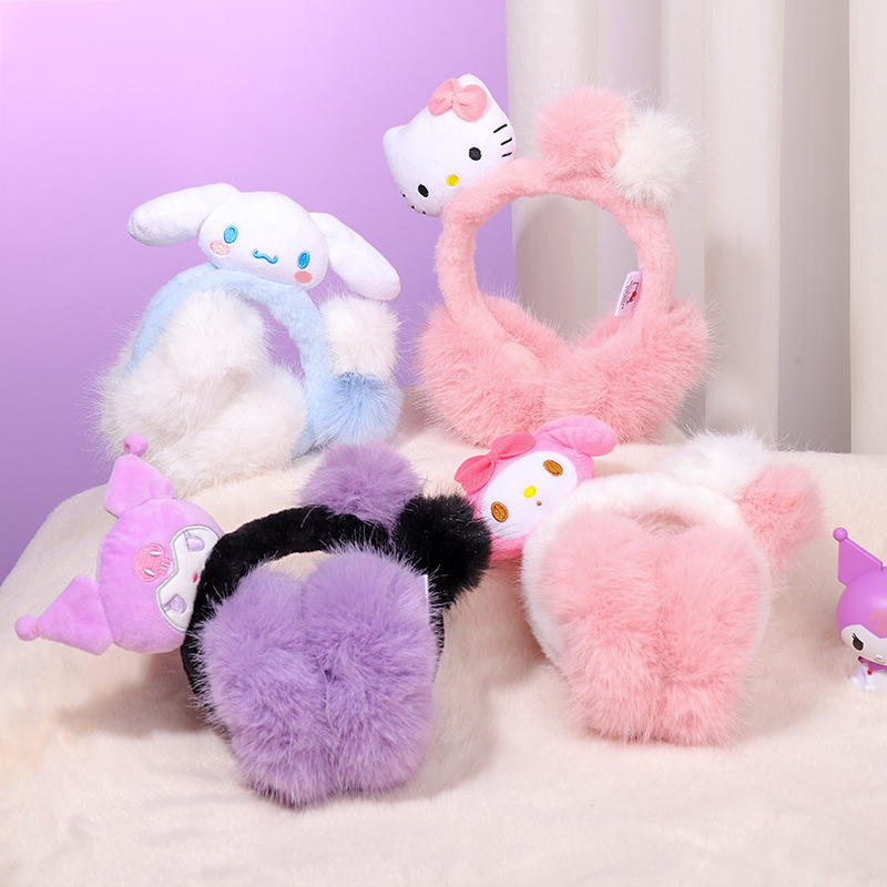 LDD Sanrio, натуральные детские меховые шарики, грелки для ушей, домашние уличные теплые плюшевые наушники, милые наушники, сумки для ушей