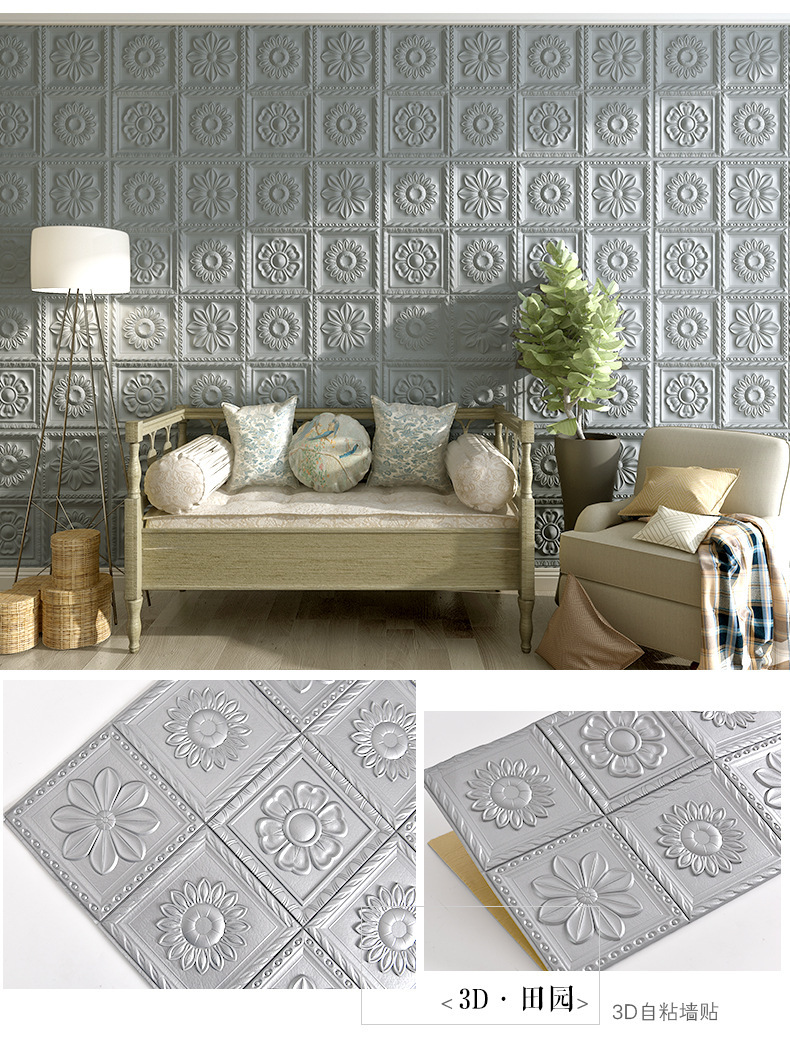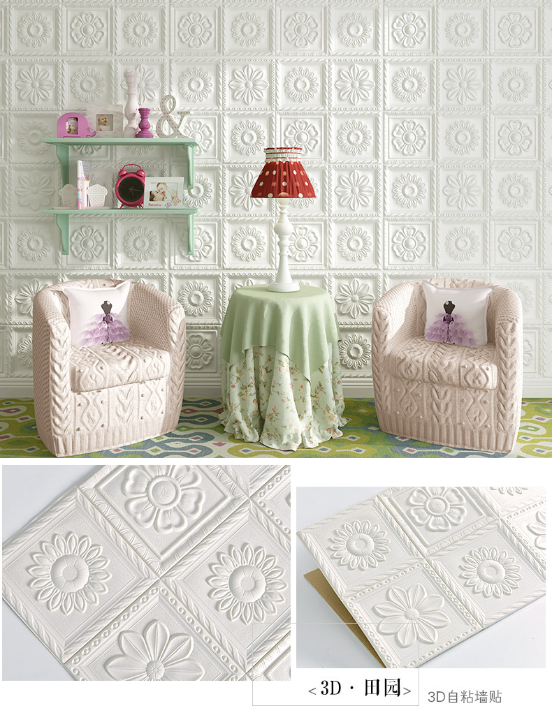 Трансграничный дропшиппинг с AliExpress, Amazon, Temu: самоклеящиеся водонепроницаемые 3D-обои 35 см в европейском стиле с цветочным узором