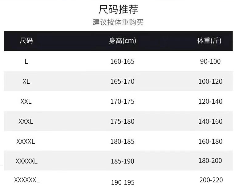 L; XL; XXL; XXXL; XXXXL; XXXXXL; 6XL