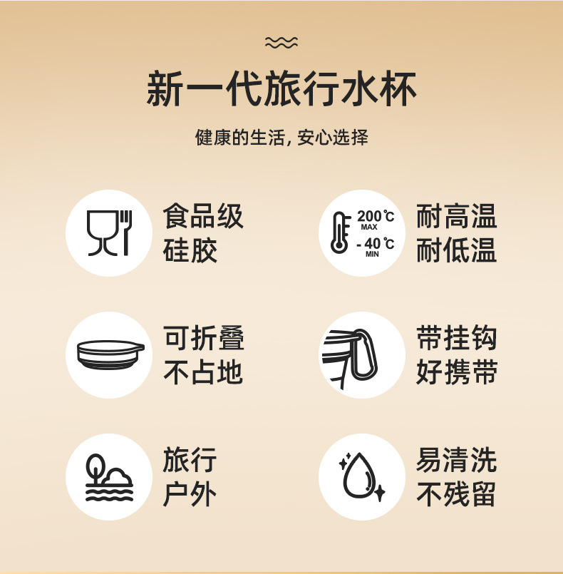 Новая силиконовая складная чашка для воды с крючком, портативная чашка для полоскания рта, кофейная чашка для деловых поездок на открытом воздухе