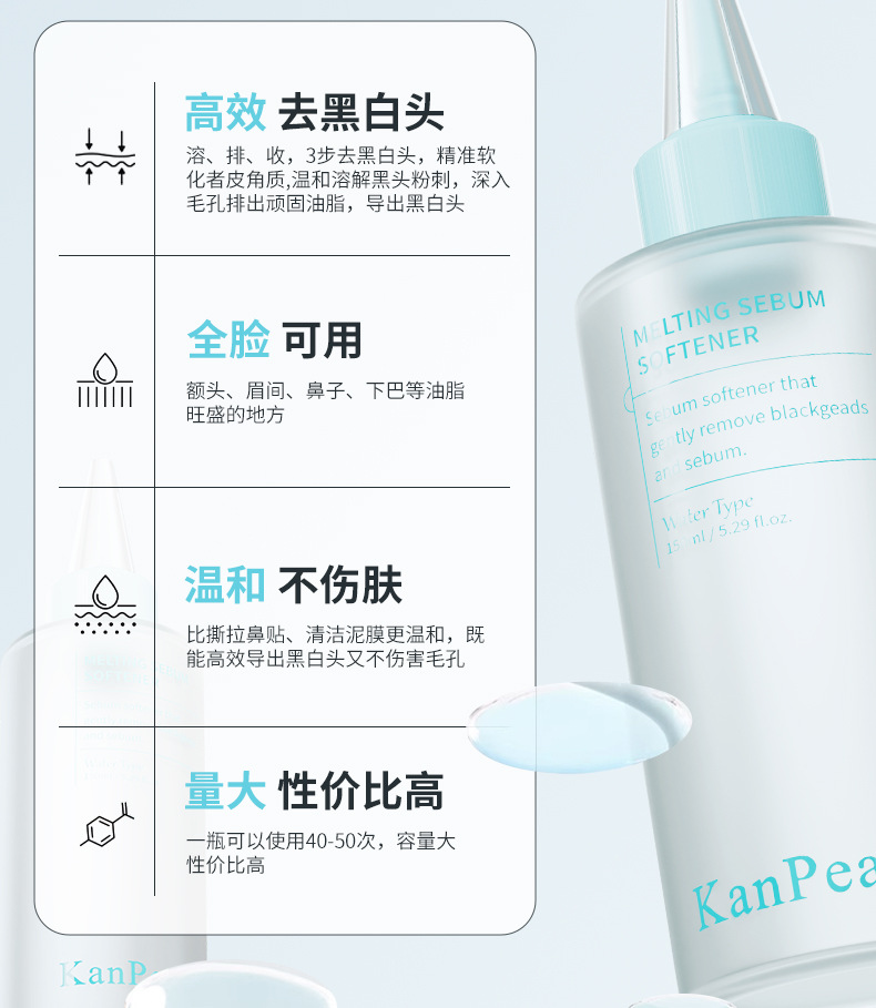 QK01-KanПерсиковая экспортная эссенция от черных точек 150 мл + влажный компресс-хлопок; Светло-зеленая лопата для угрей; Темно-зеленая лопата для угрей