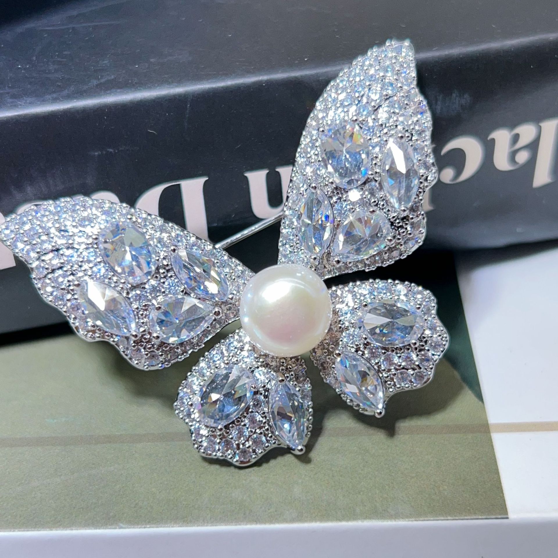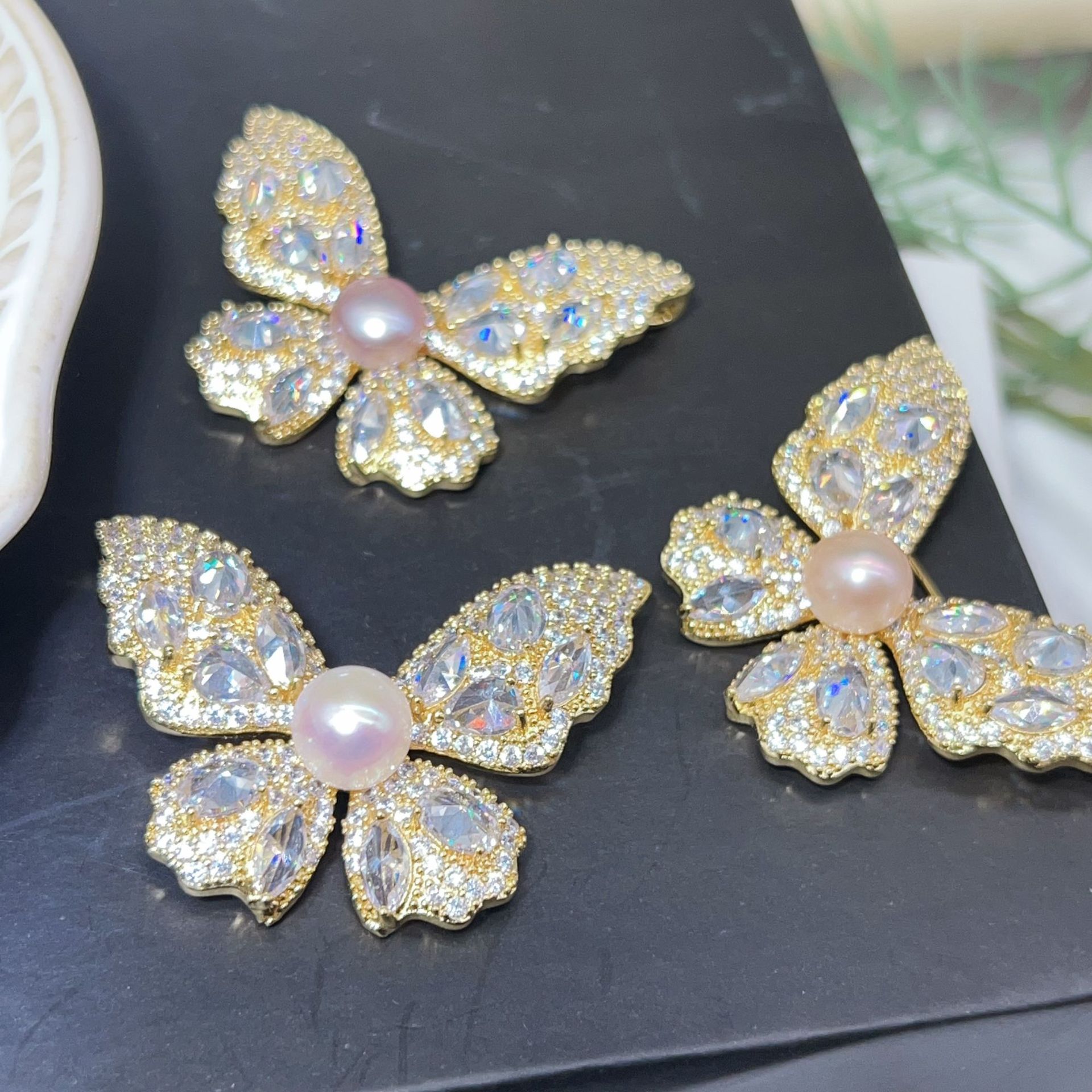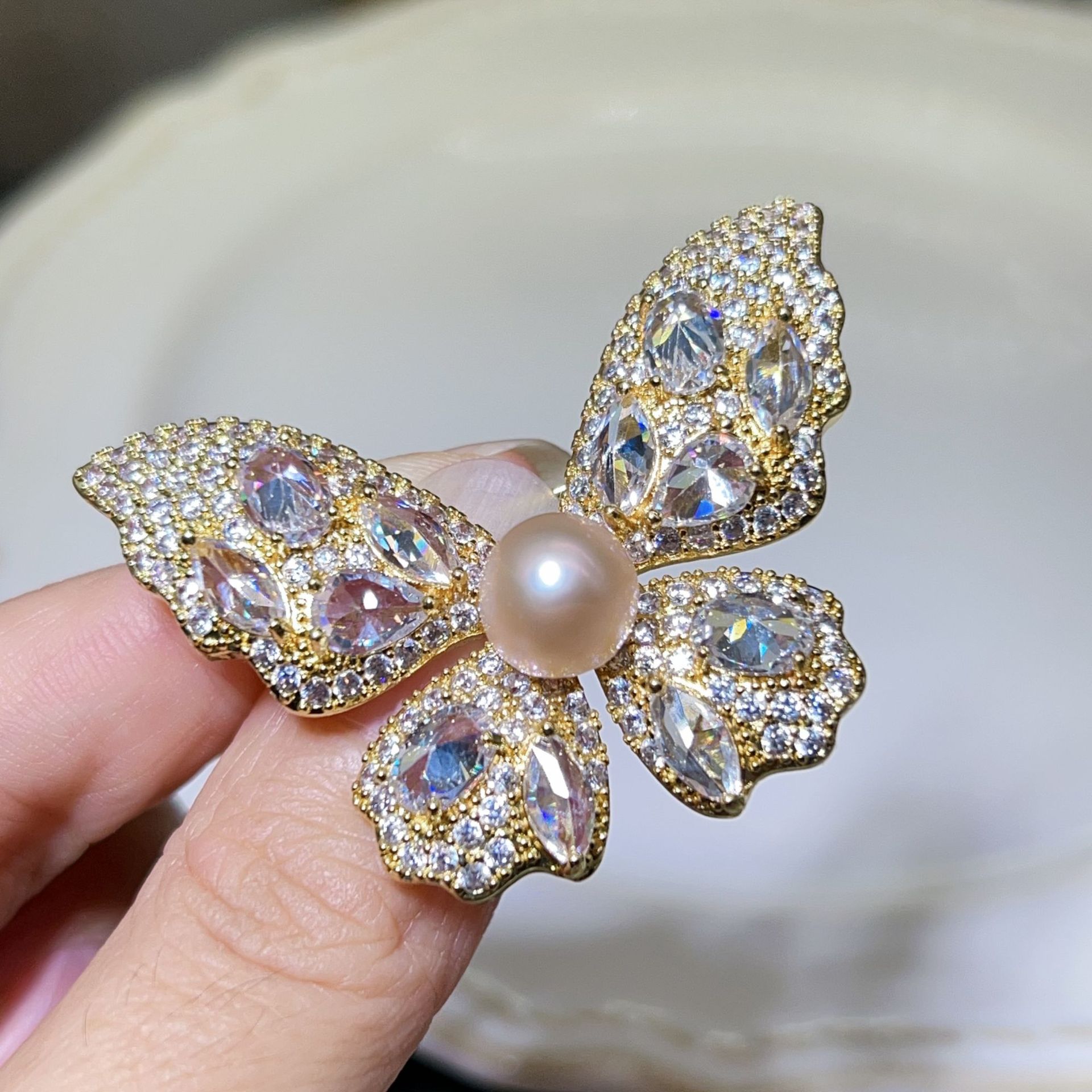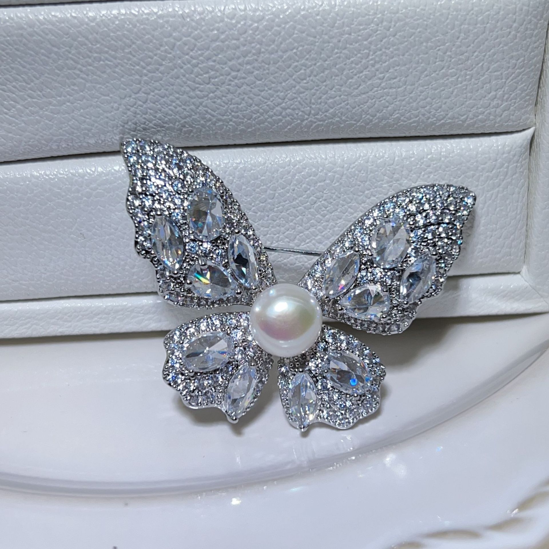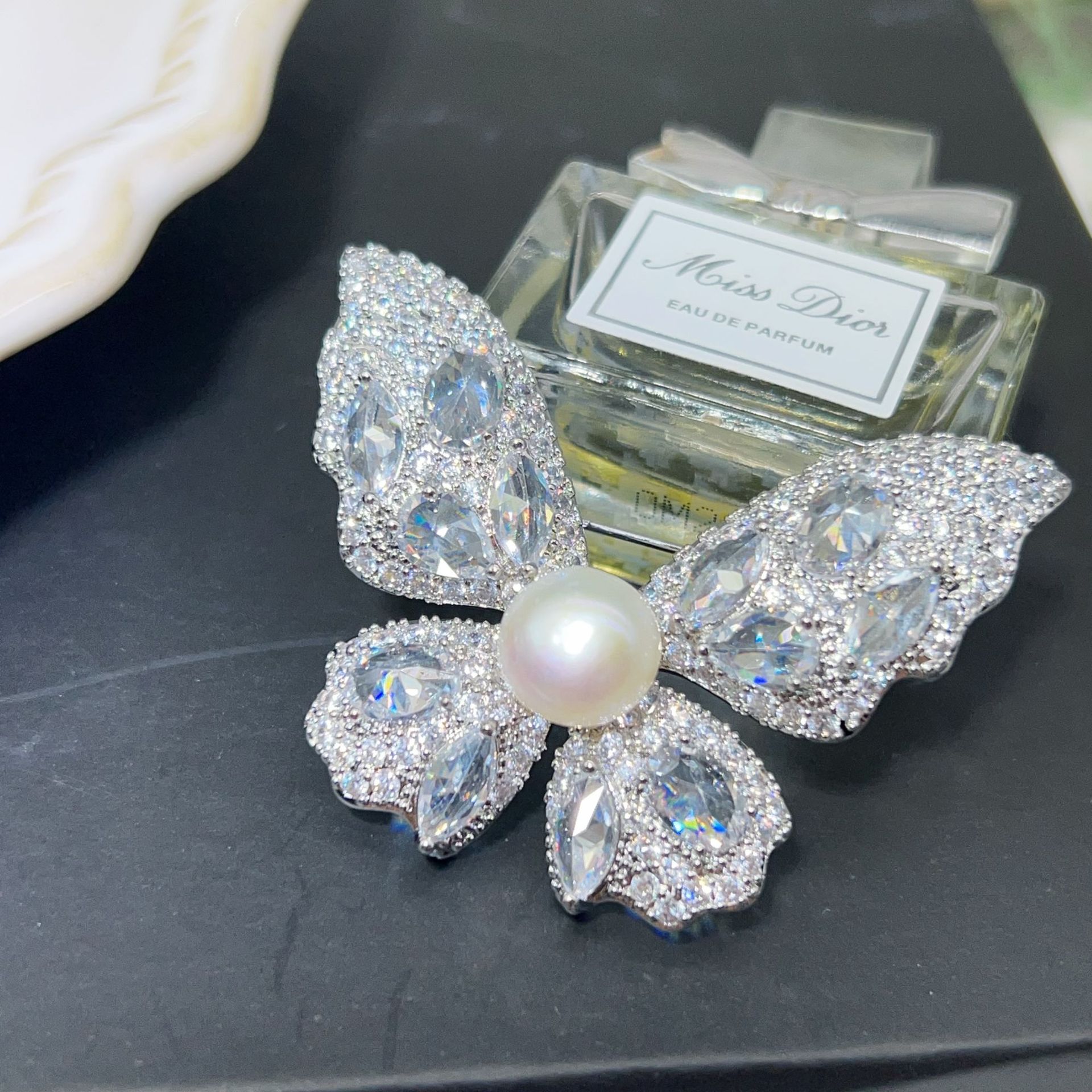 Брошь с жемчугом, оптовая продажа, циркон, роскошный стиль, жемчужная брошь в стиле бабочки, 8-9 мм, брошь с пресноводным жемчугом и костюмом