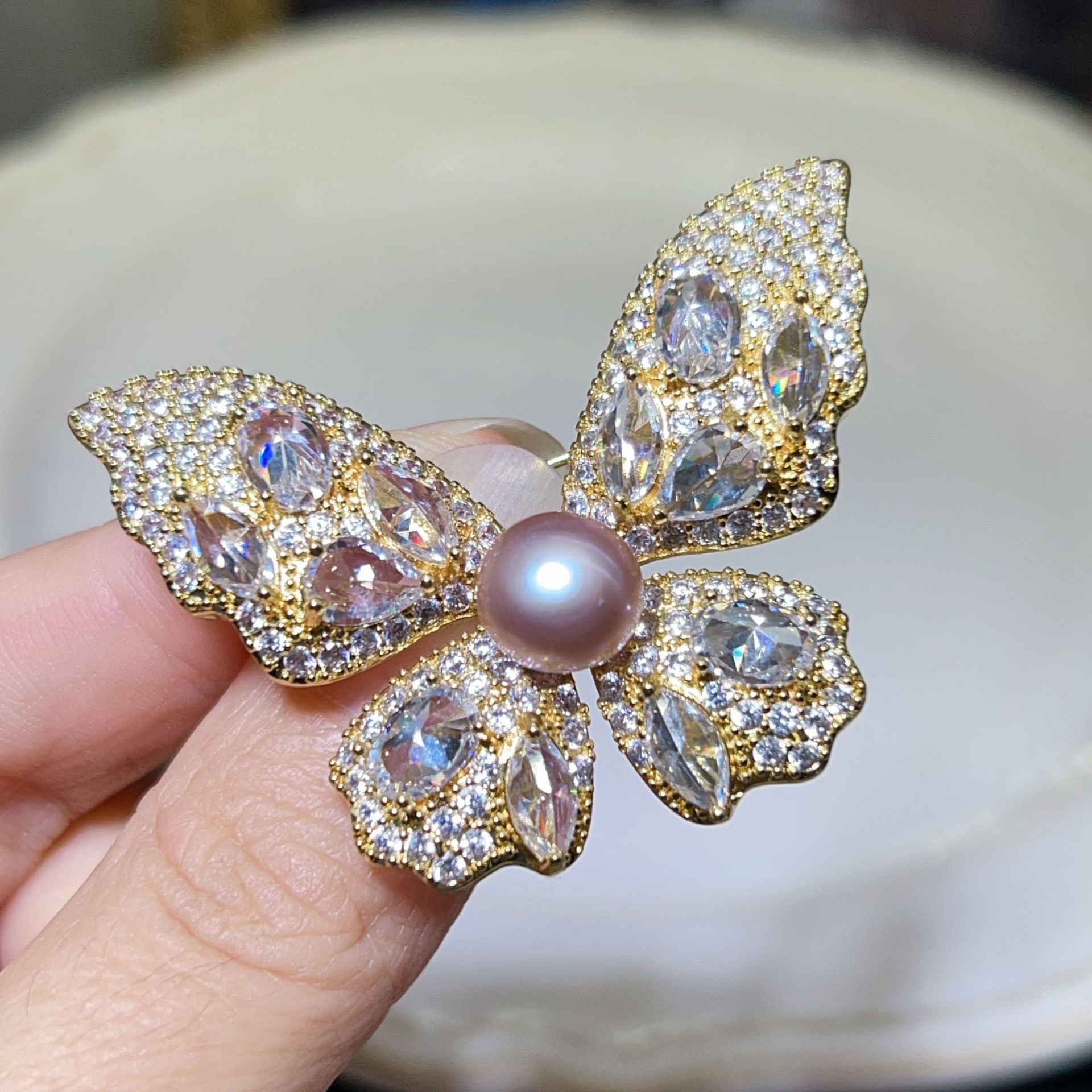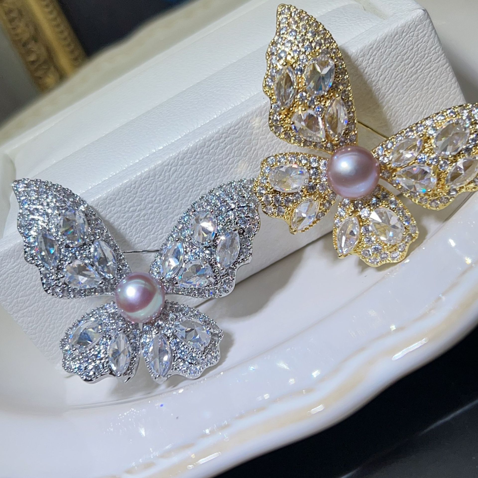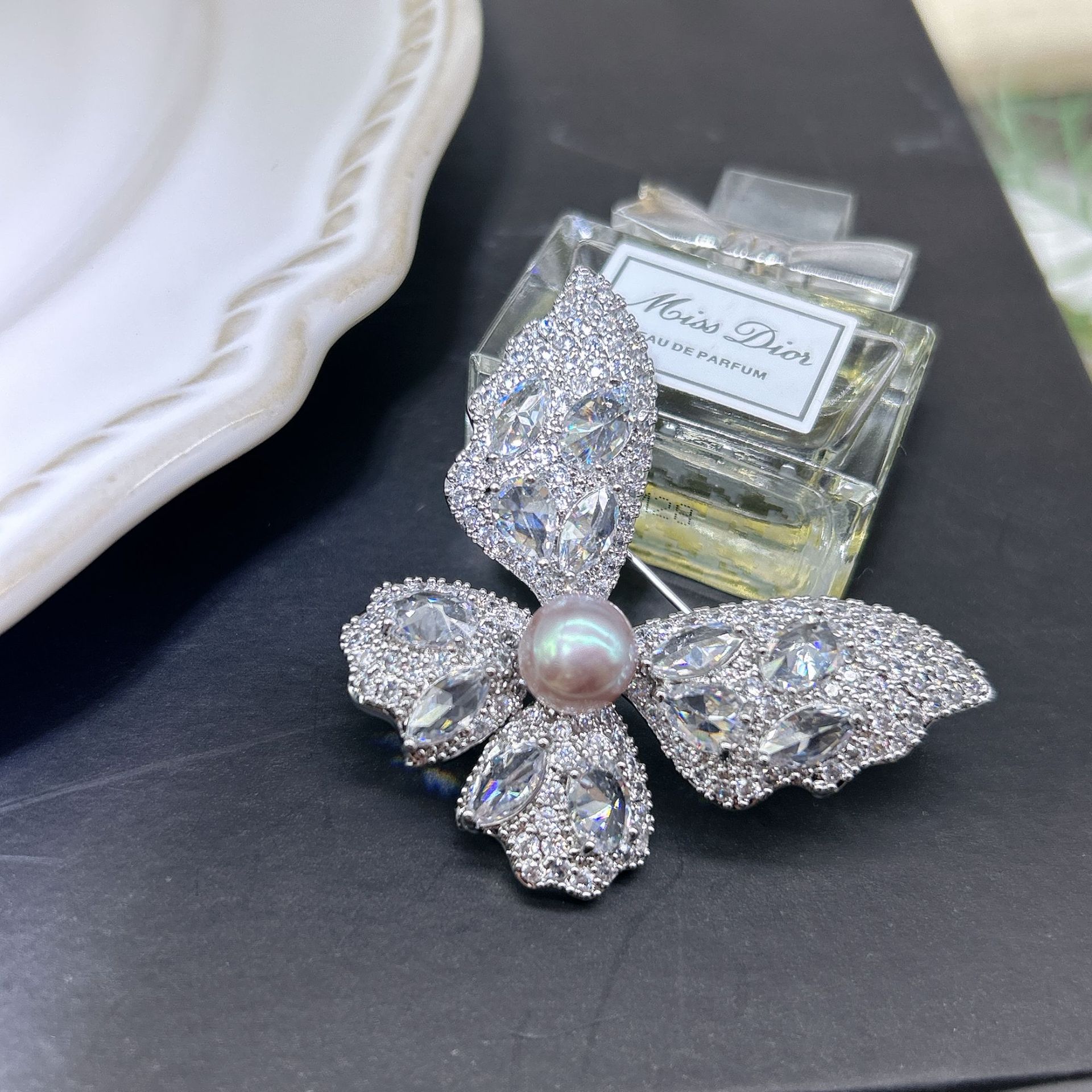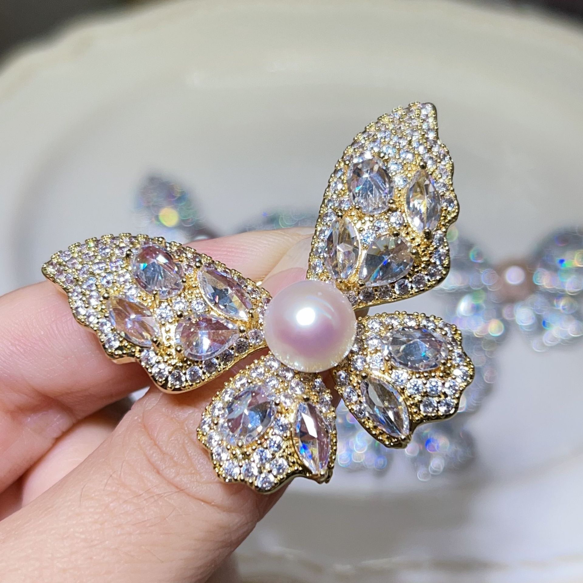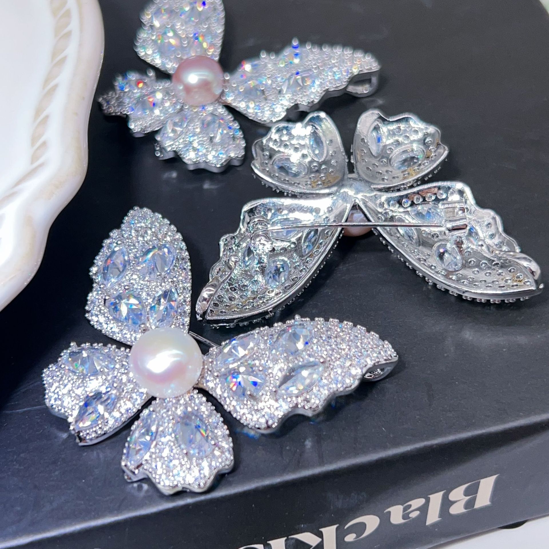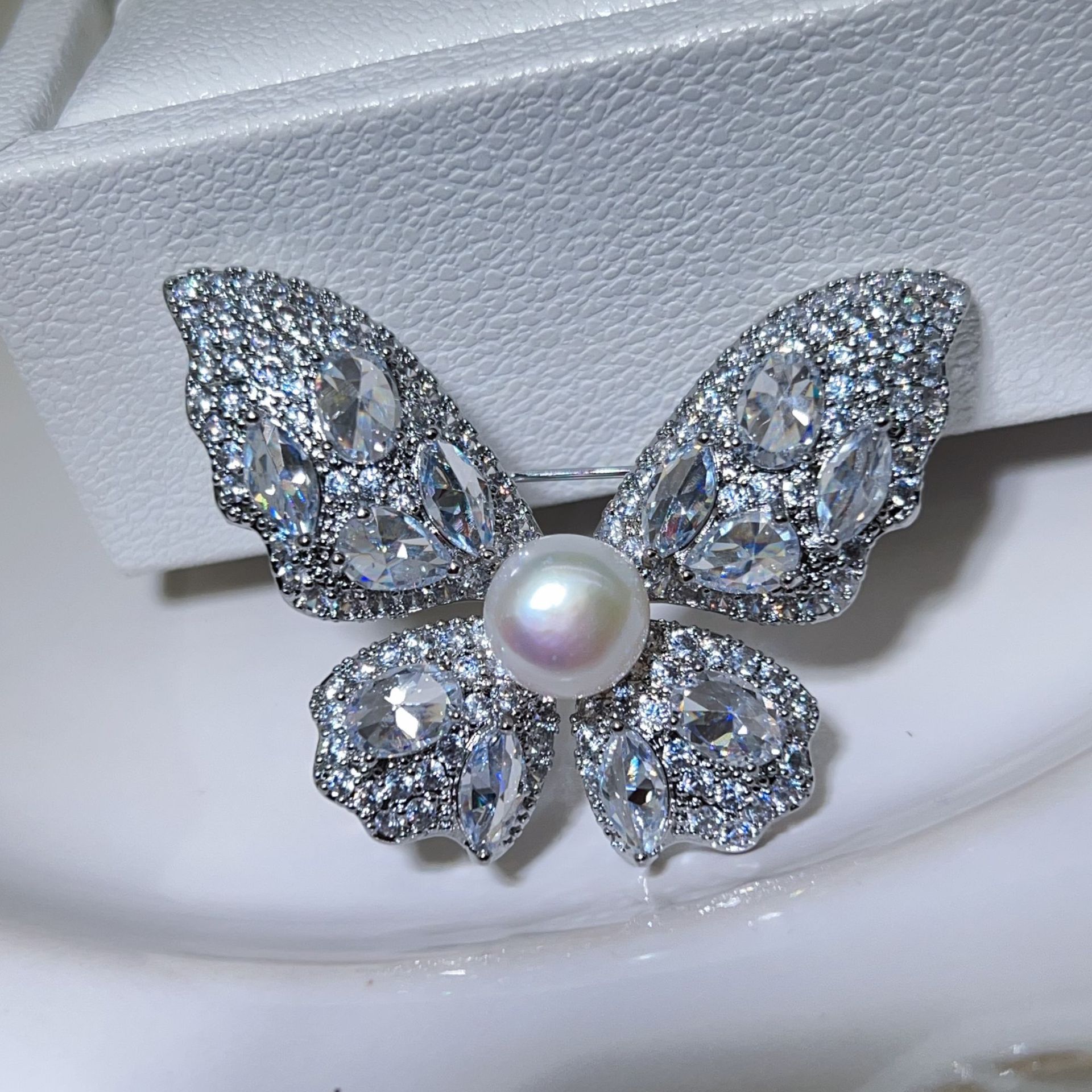 Брошь с жемчугом, оптовая продажа, циркон, роскошный стиль, жемчужная брошь в стиле бабочки, 8-9 мм, брошь с пресноводным жемчугом и костюмом