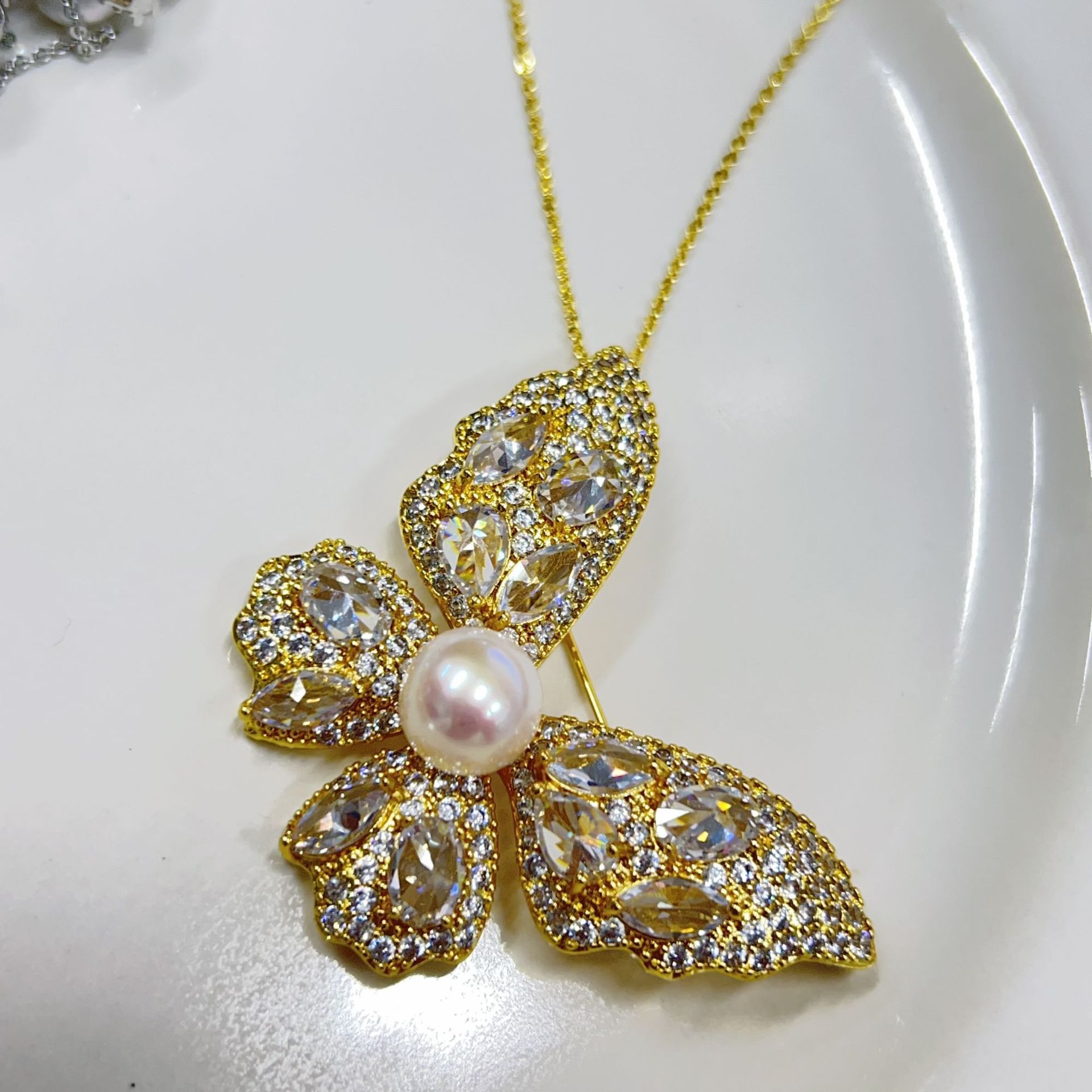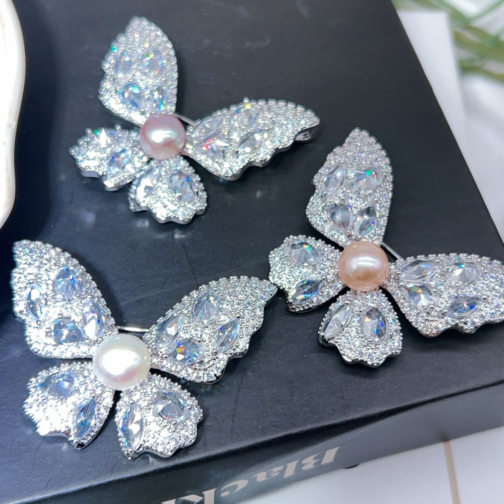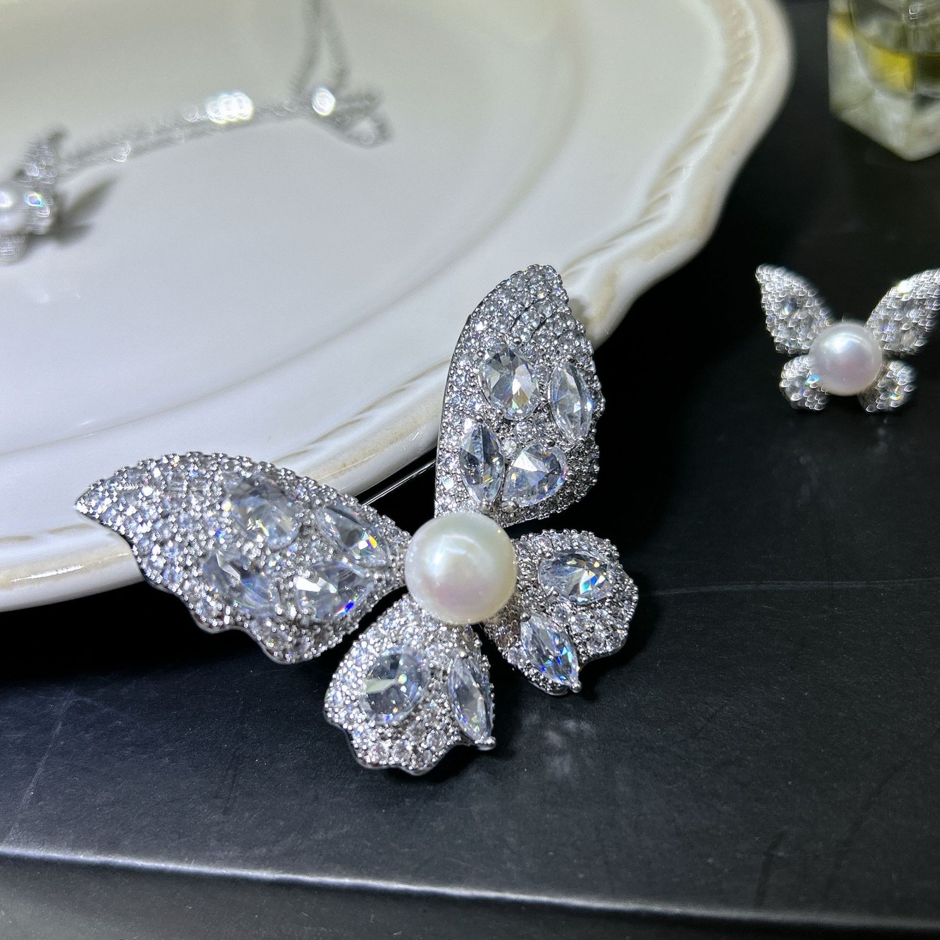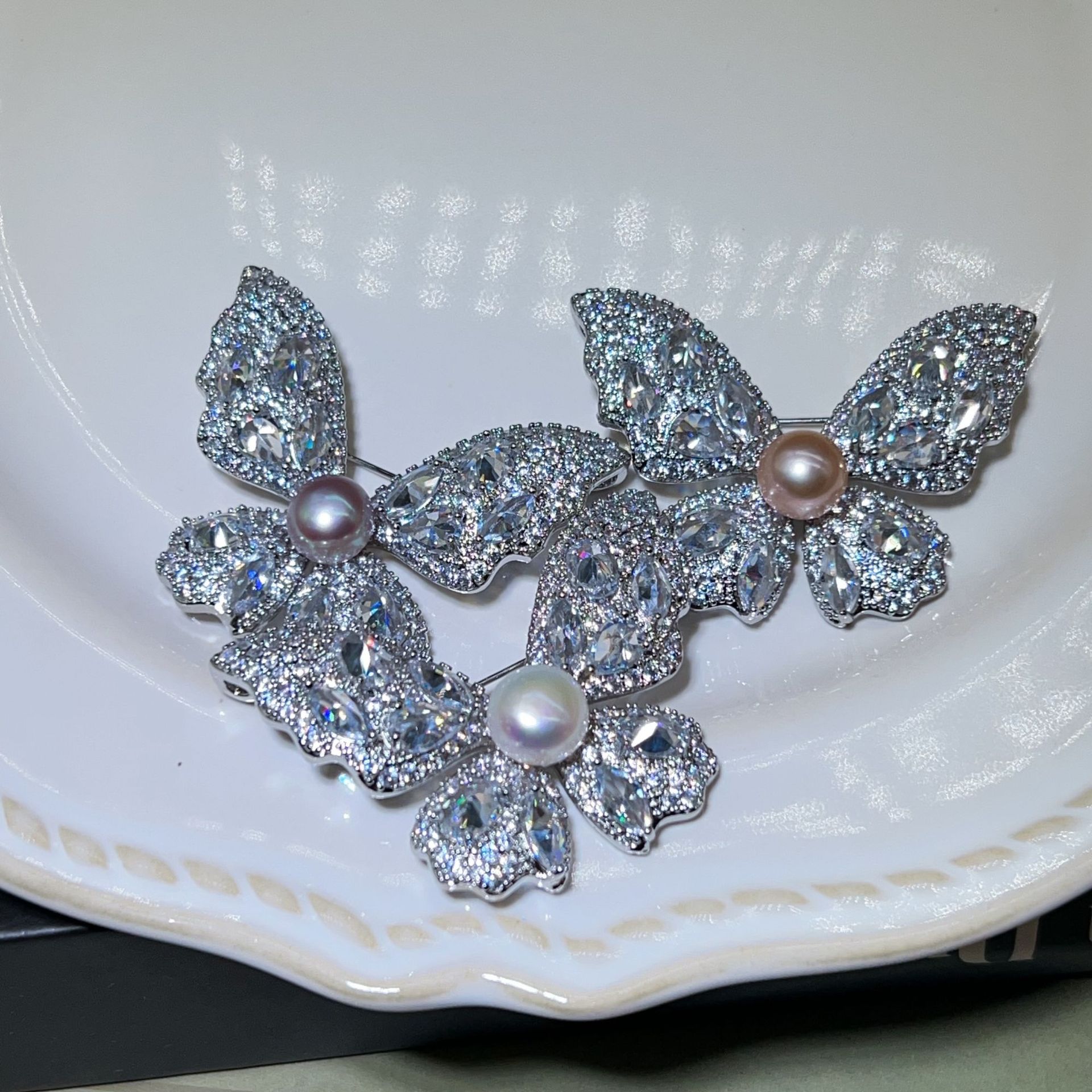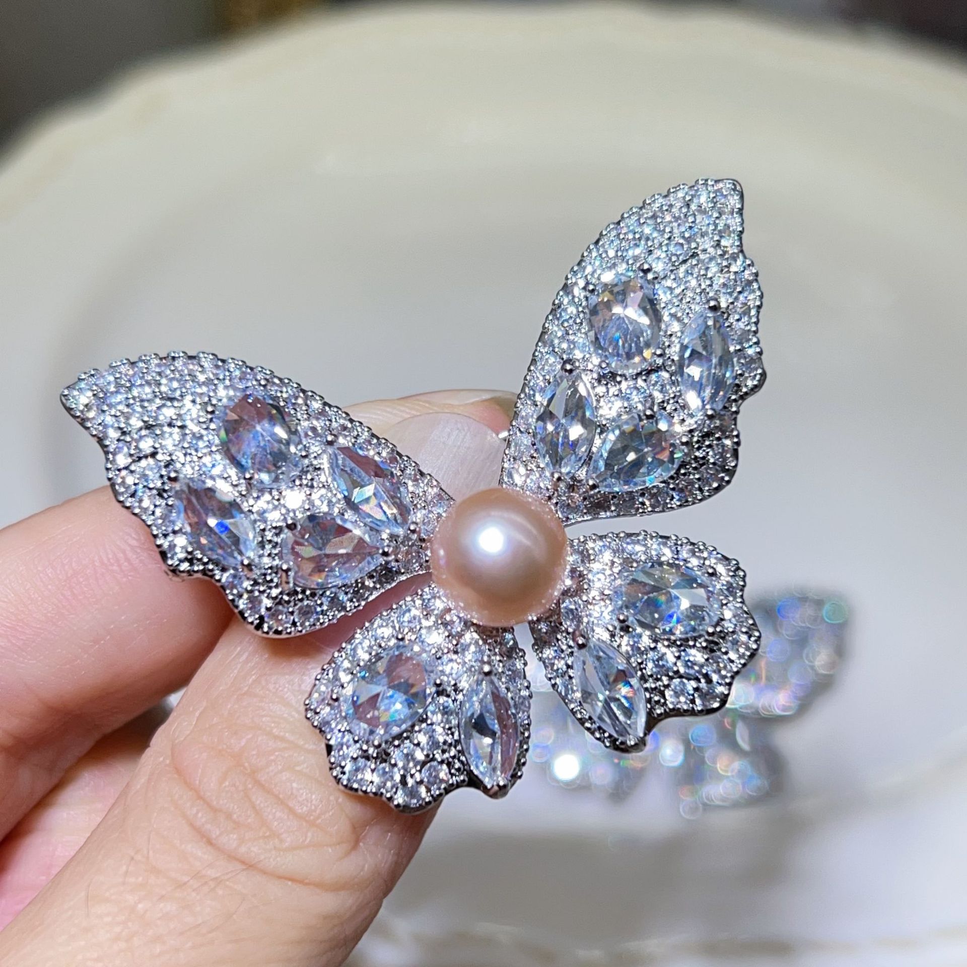 Брошь с жемчугом, оптовая продажа, циркон, роскошный стиль, жемчужная брошь в стиле бабочки, 8-9 мм, брошь с пресноводным жемчугом и костюмом