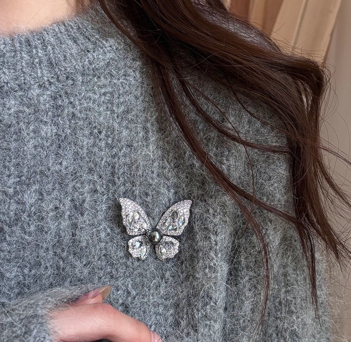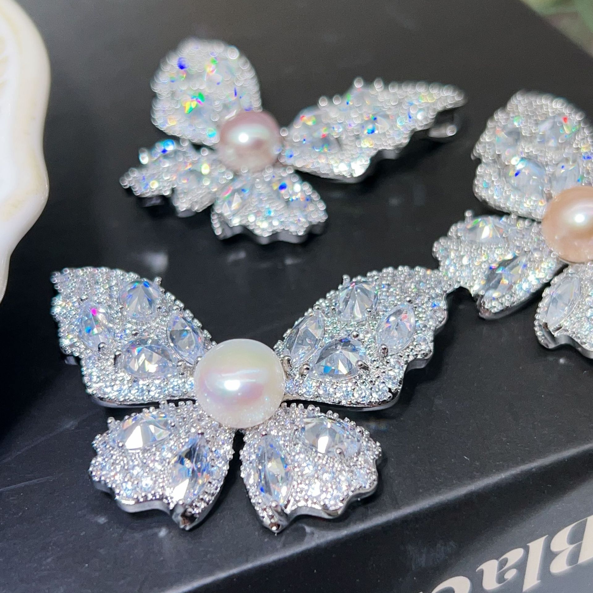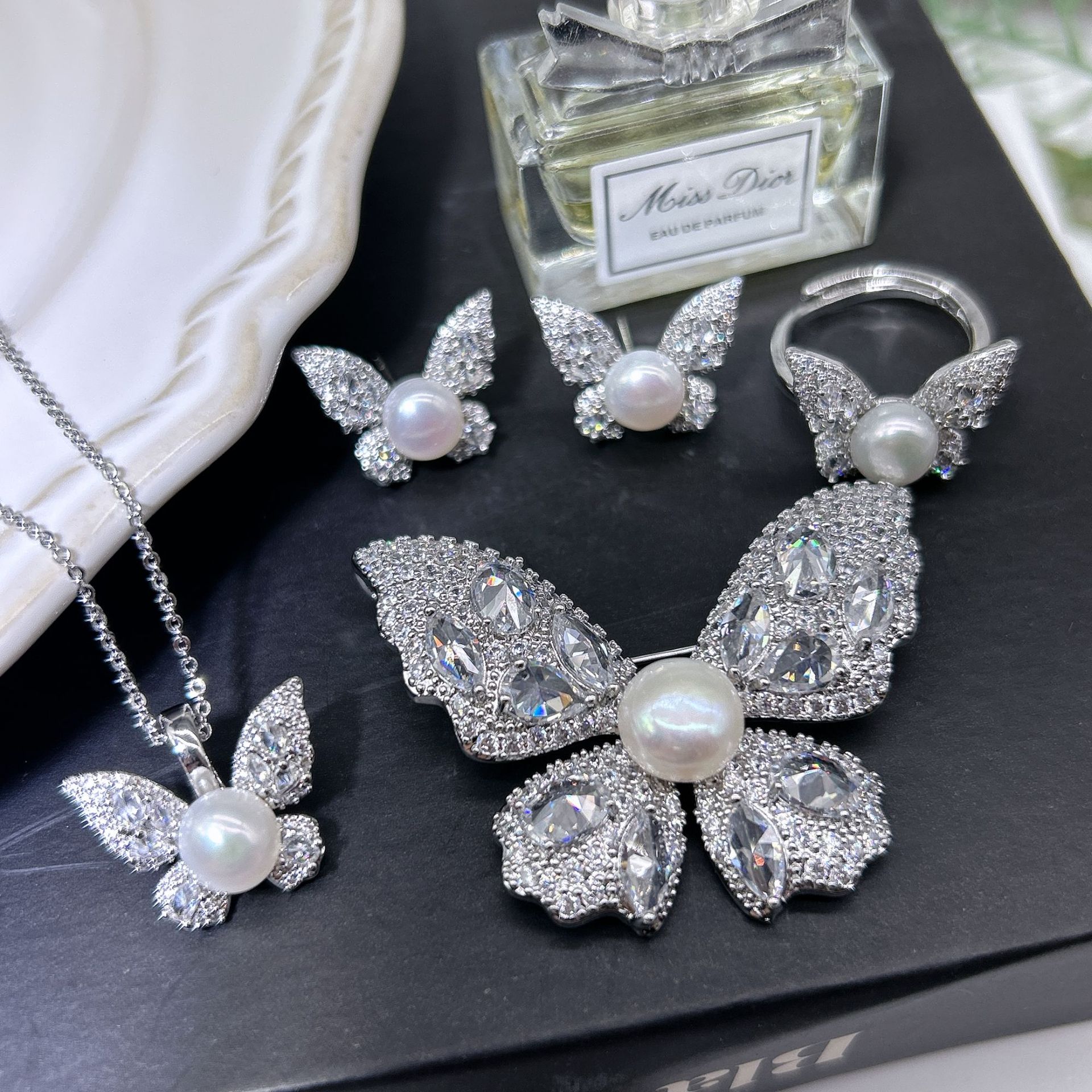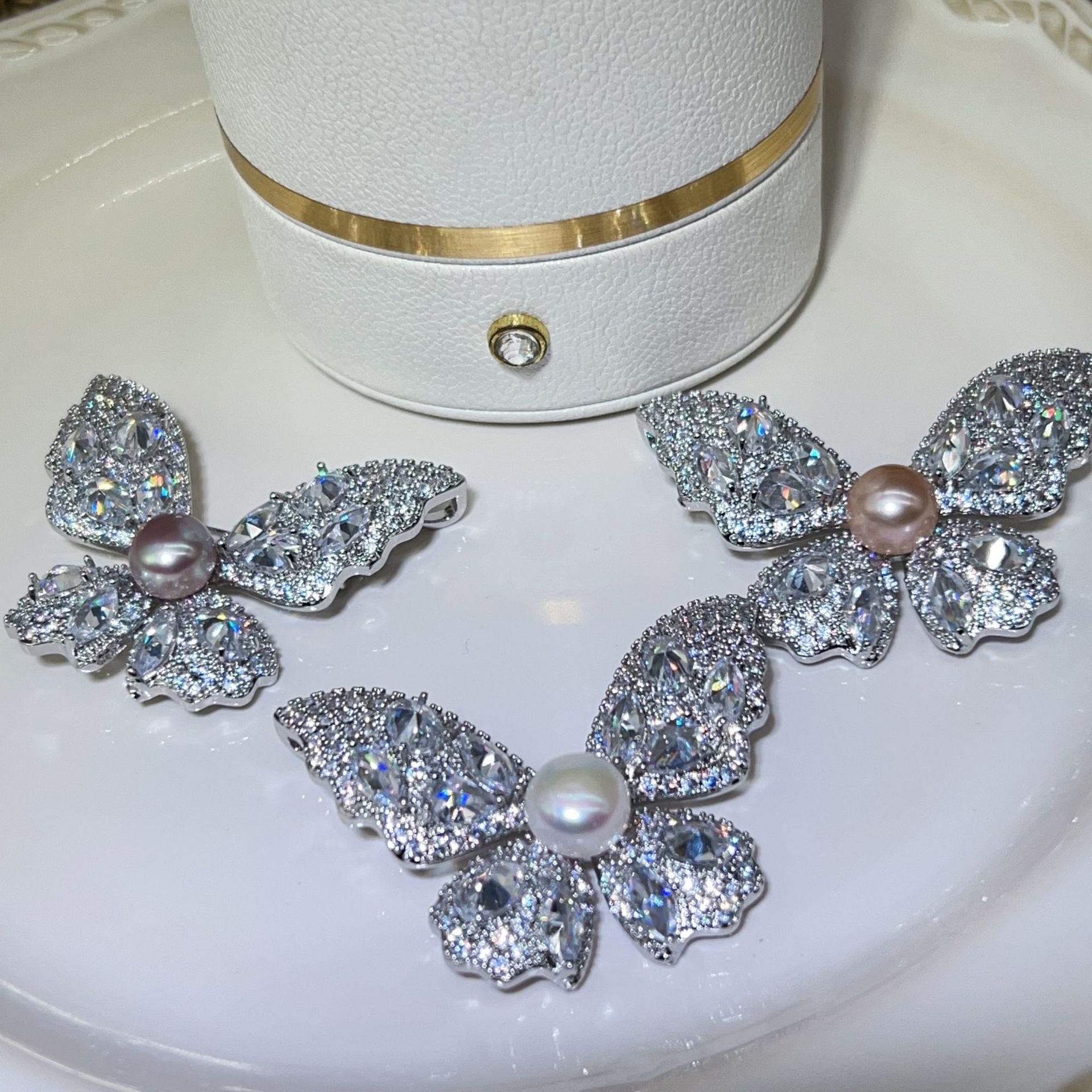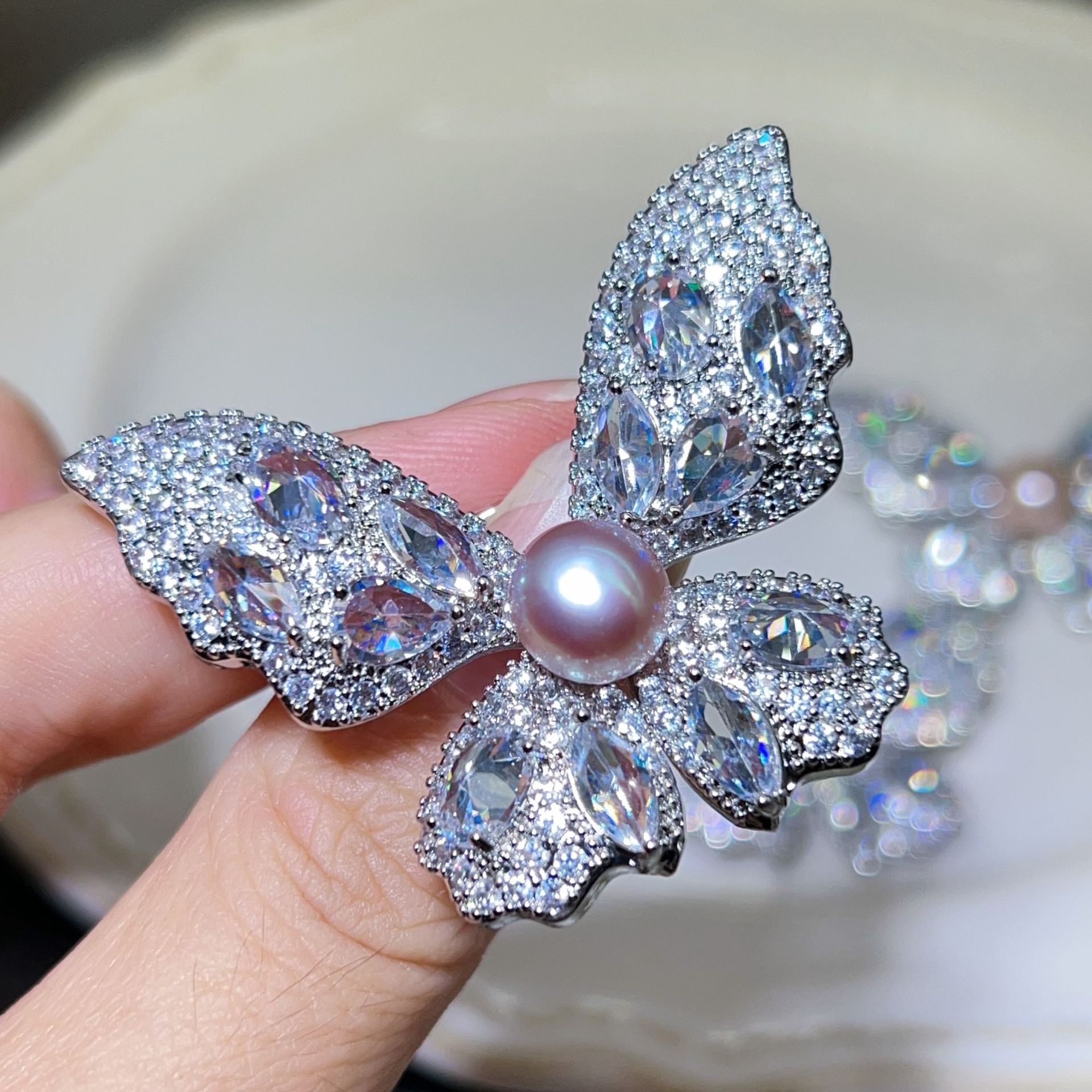 Брошь с жемчугом, оптовая продажа, циркон, роскошный стиль, жемчужная брошь в стиле бабочки, 8-9 мм, брошь с пресноводным жемчугом и костюмом