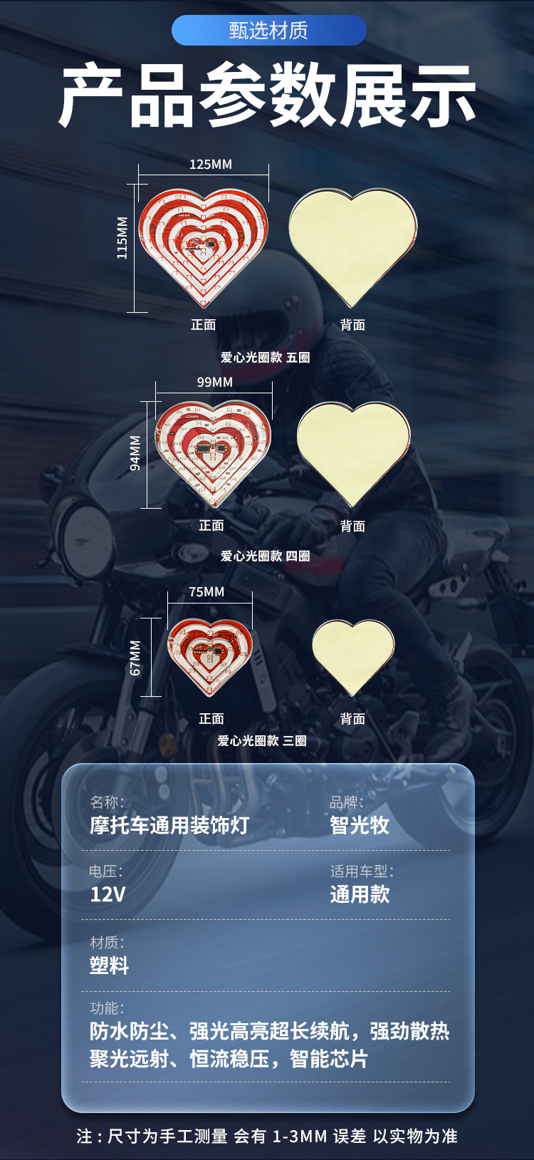 Подсветка номерного знака мотоцикла, трансграничная вспышка, круг любви, водонепроницаемый задний фонарь, 12 В, красочный декоративный светильник, светодиодный светильник для электромобиля