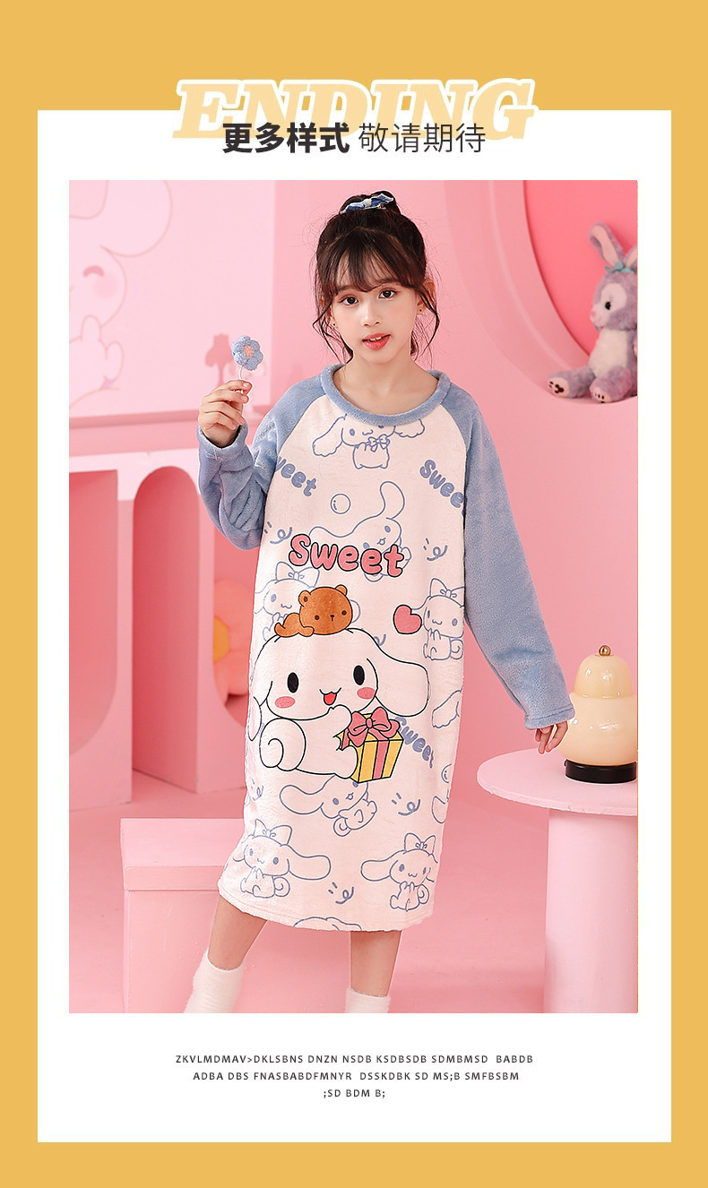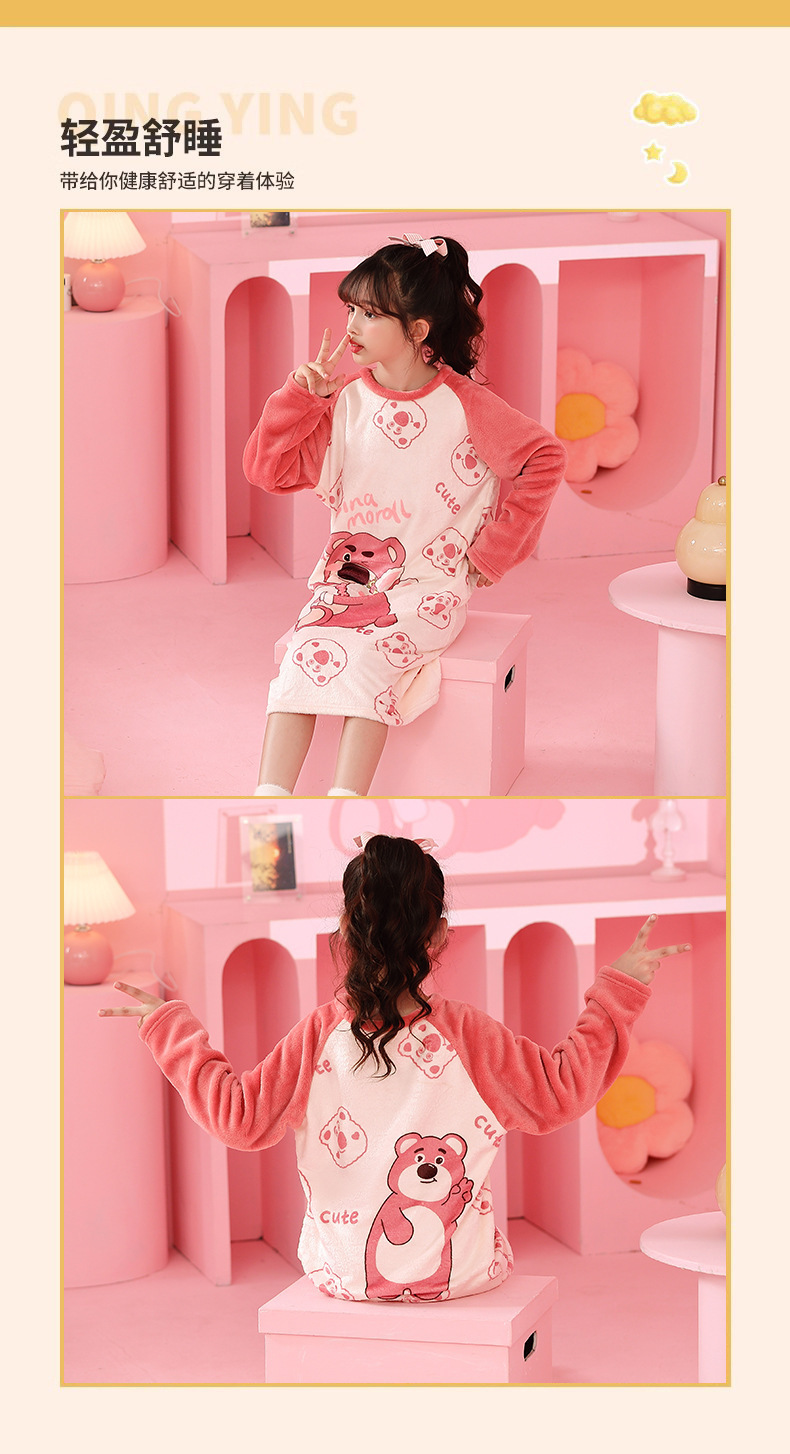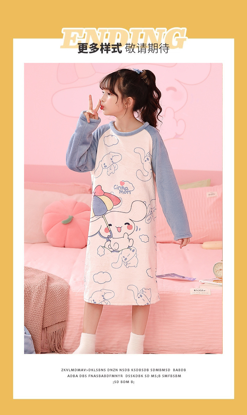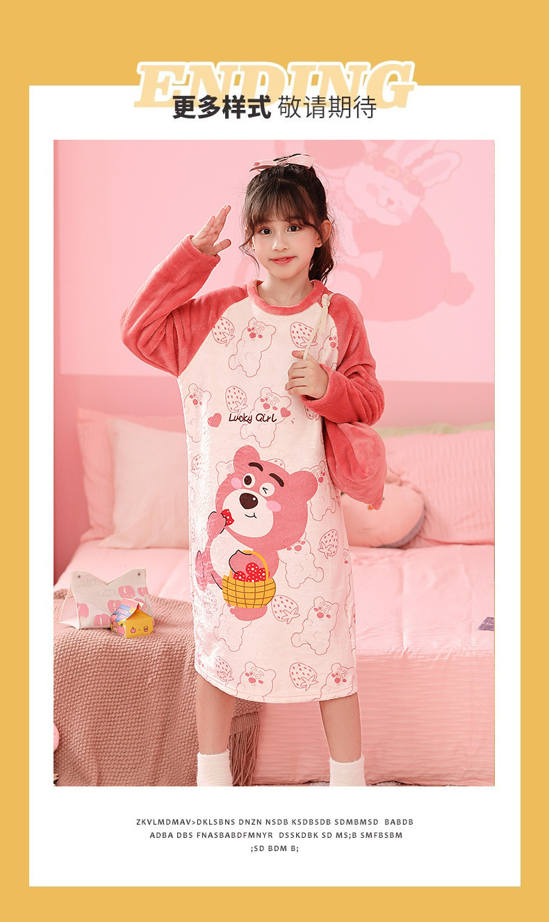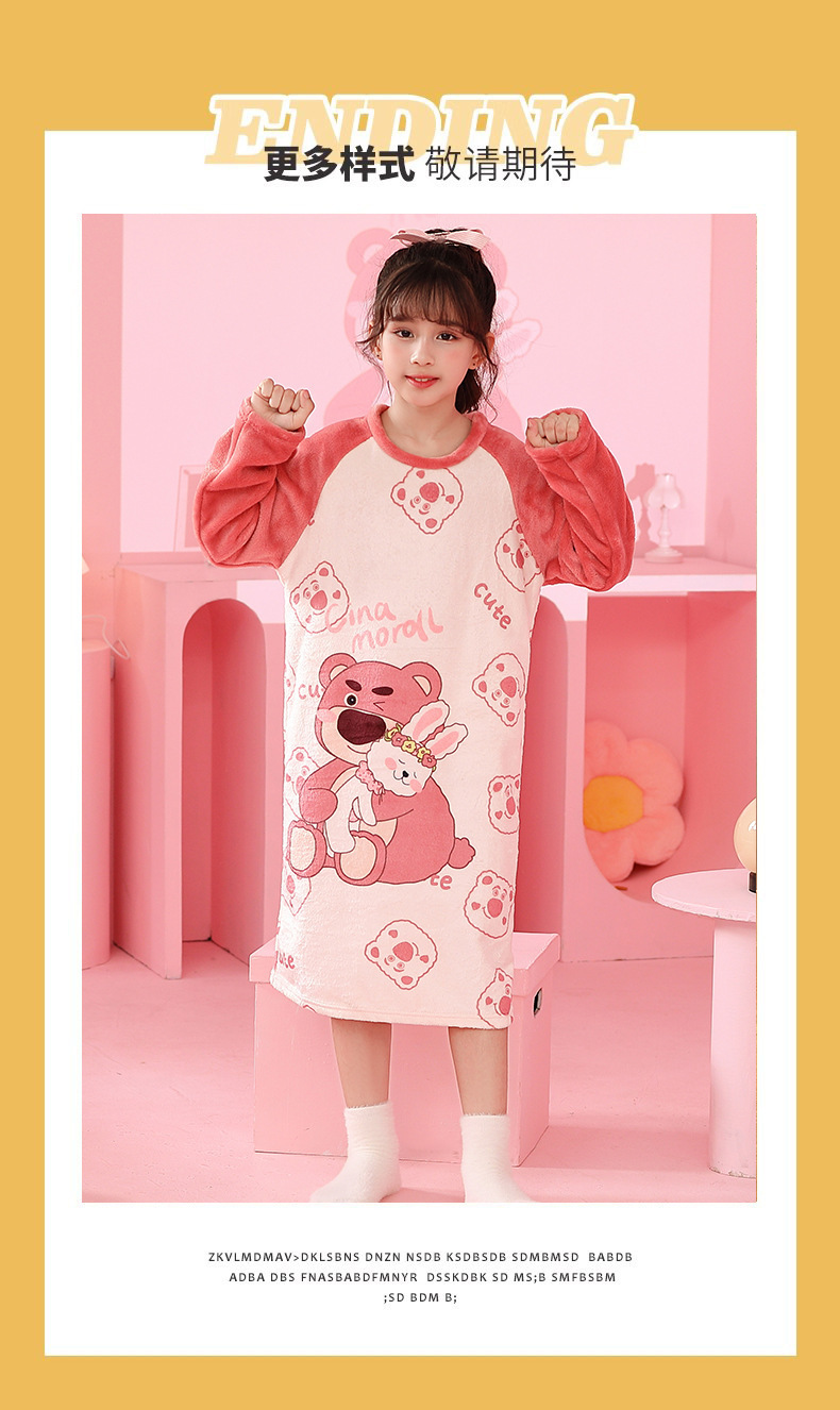 2024 осень и зима новая девушка фланелевая ночная рубашка девушка пижама зимняя детская домашняя одежда плюс бархатный мультяшный халат