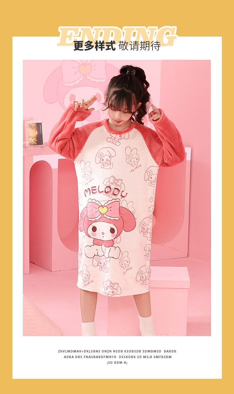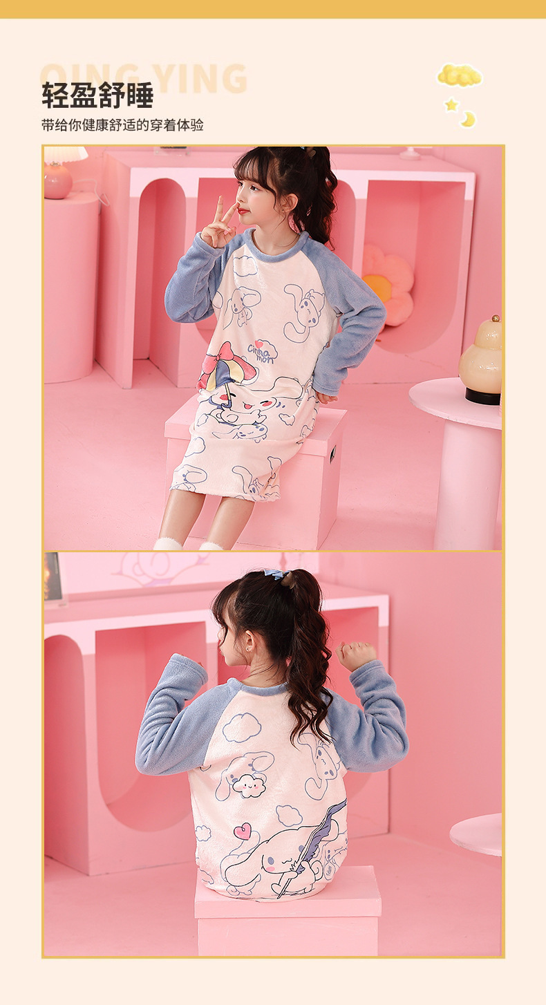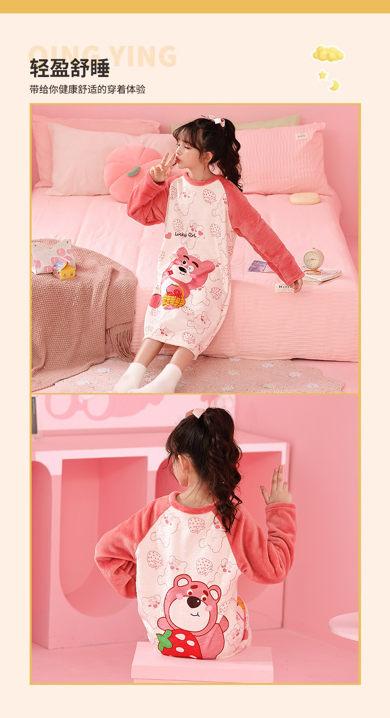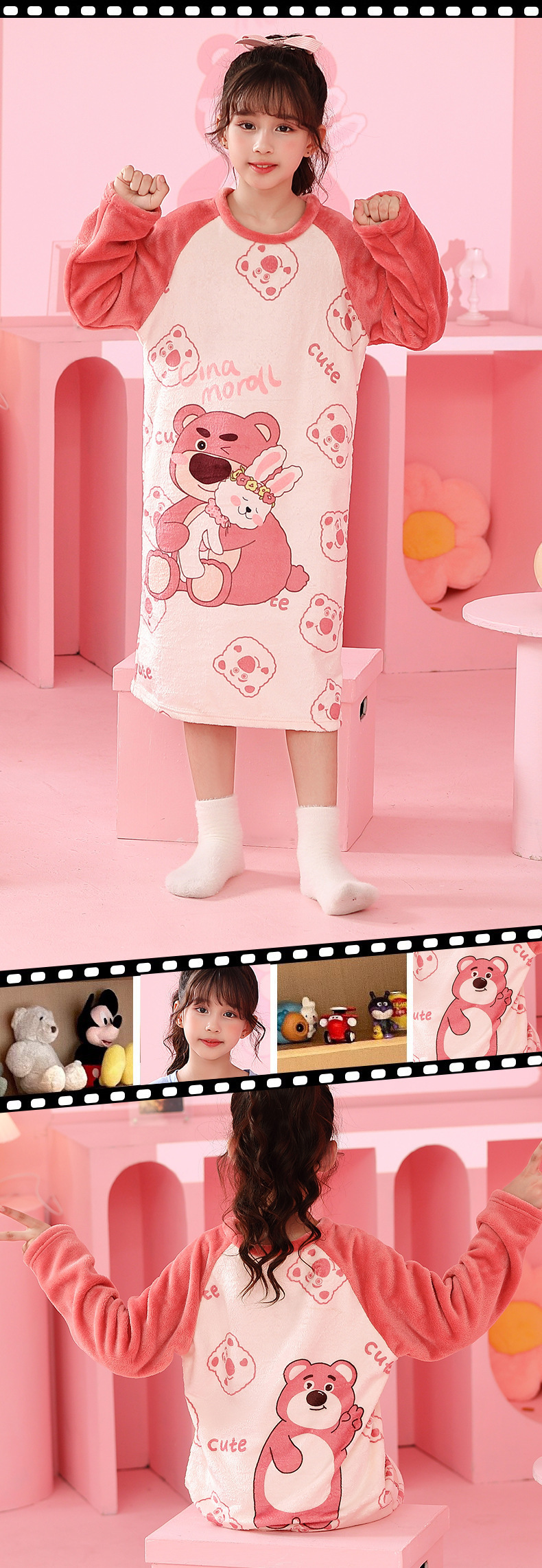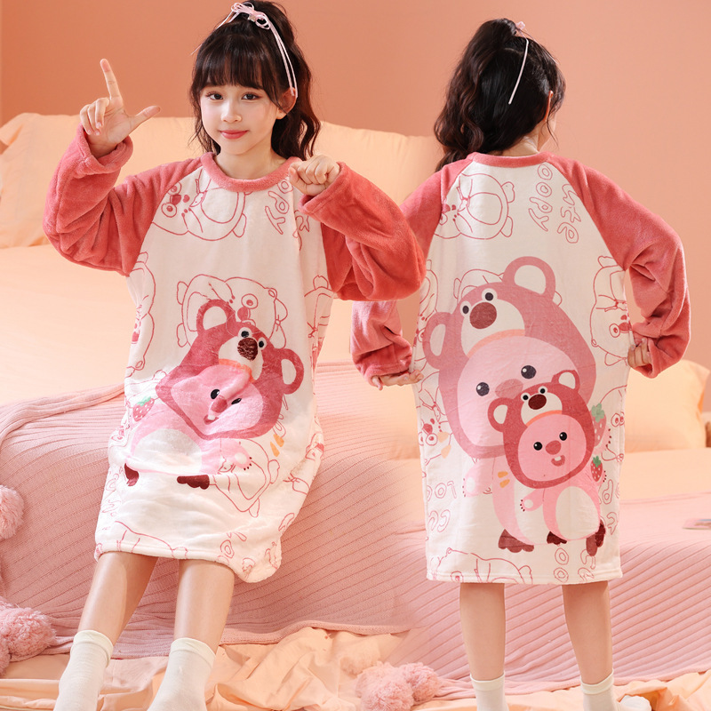 2024 осень и зима новая девушка фланелевая ночная рубашка девушка пижама зимняя детская домашняя одежда плюс бархатный мультяшный халат