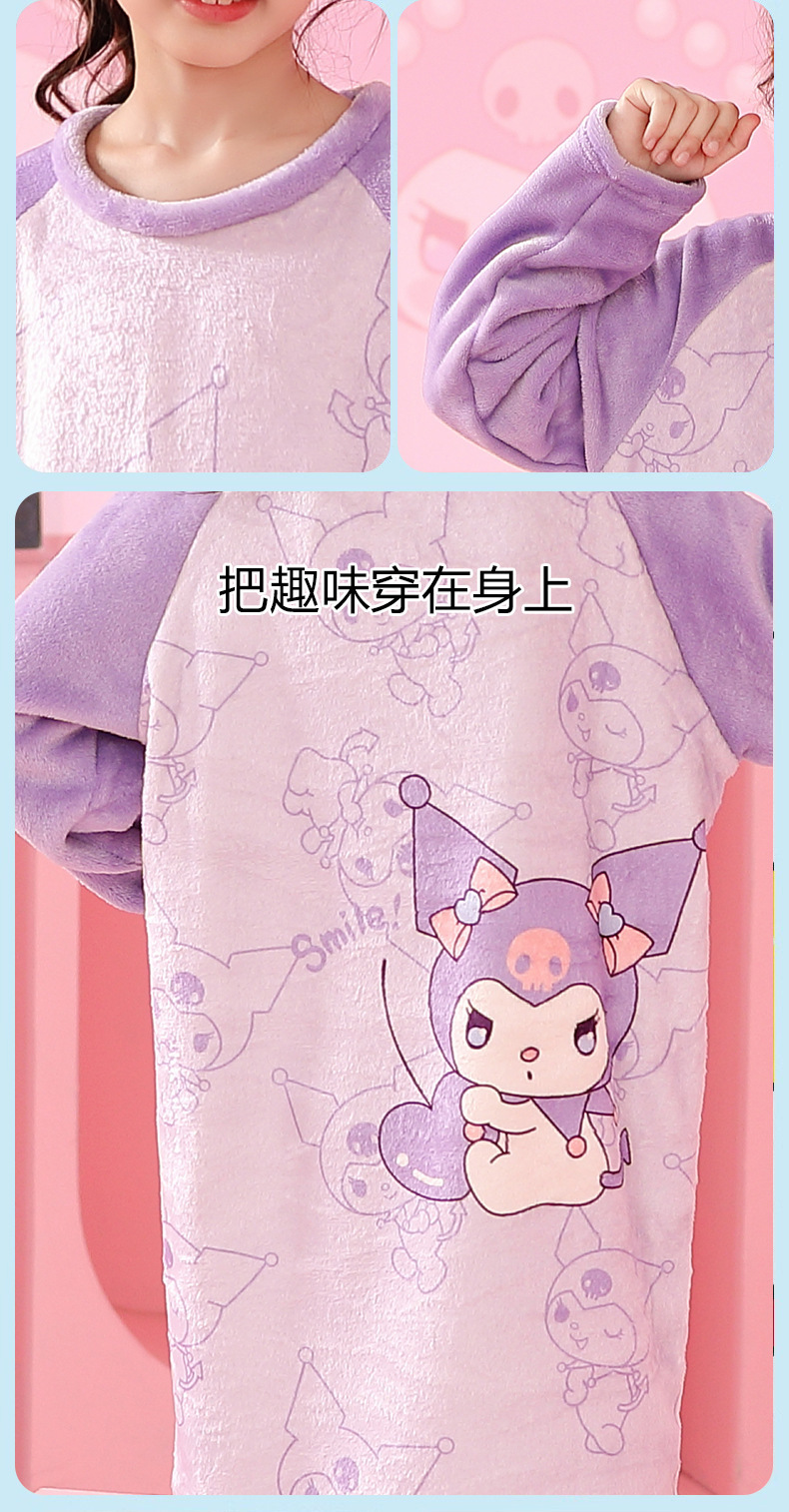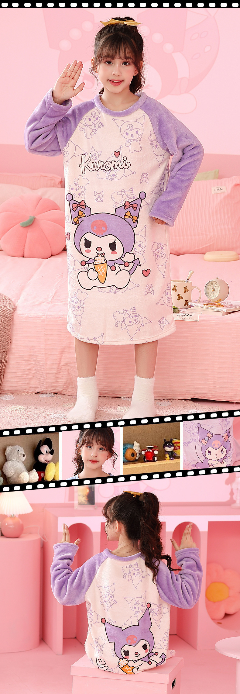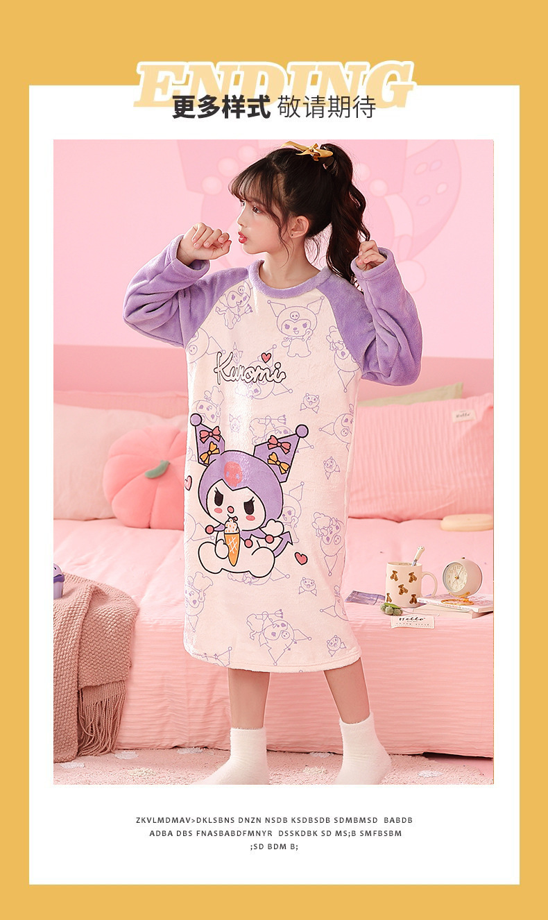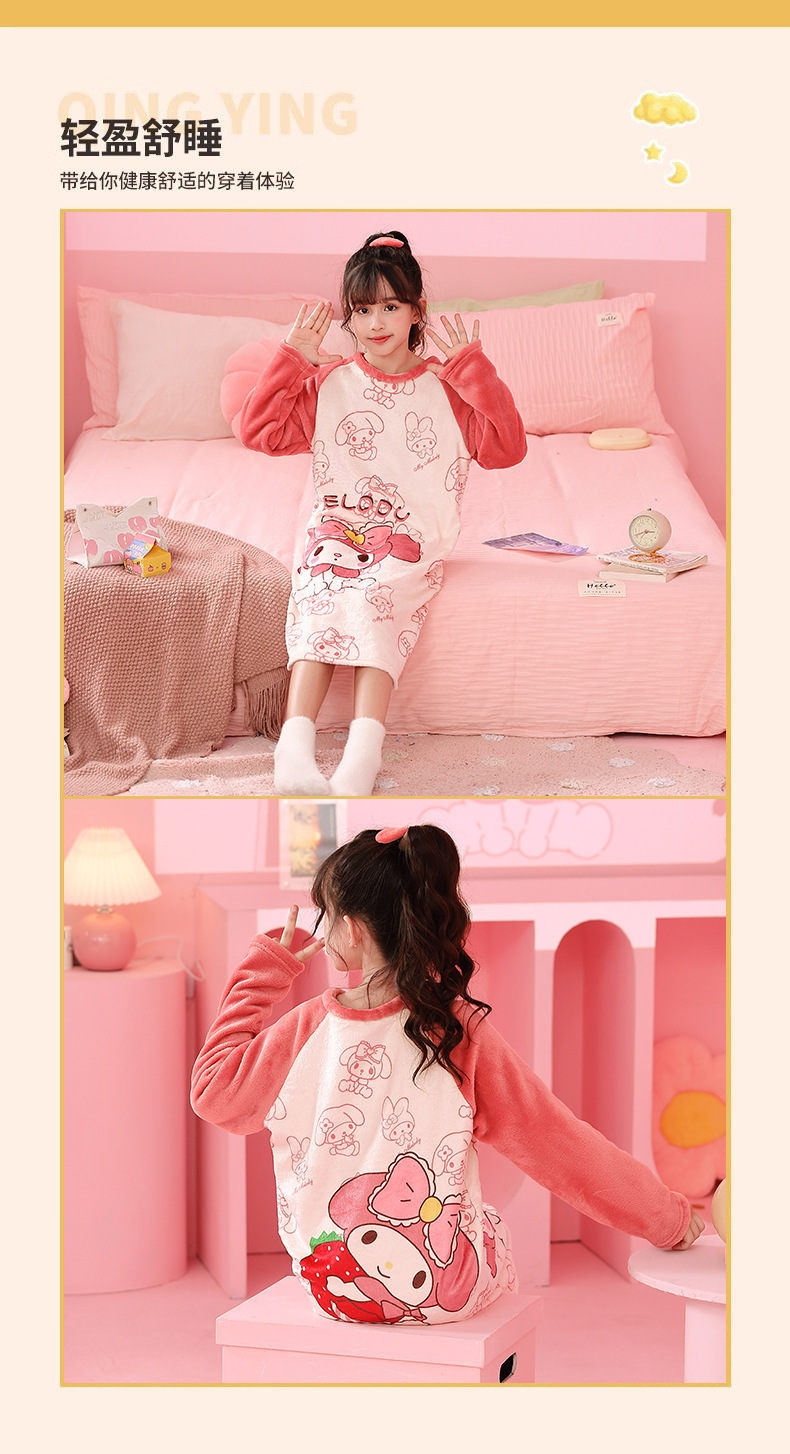 2024 осень и зима новая девушка фланелевая ночная рубашка девушка пижама зимняя детская домашняя одежда плюс бархатный мультяшный халат