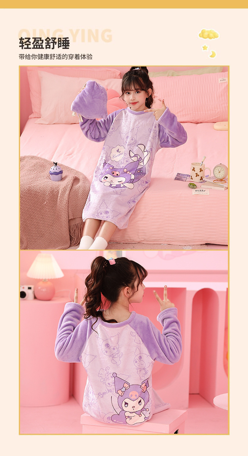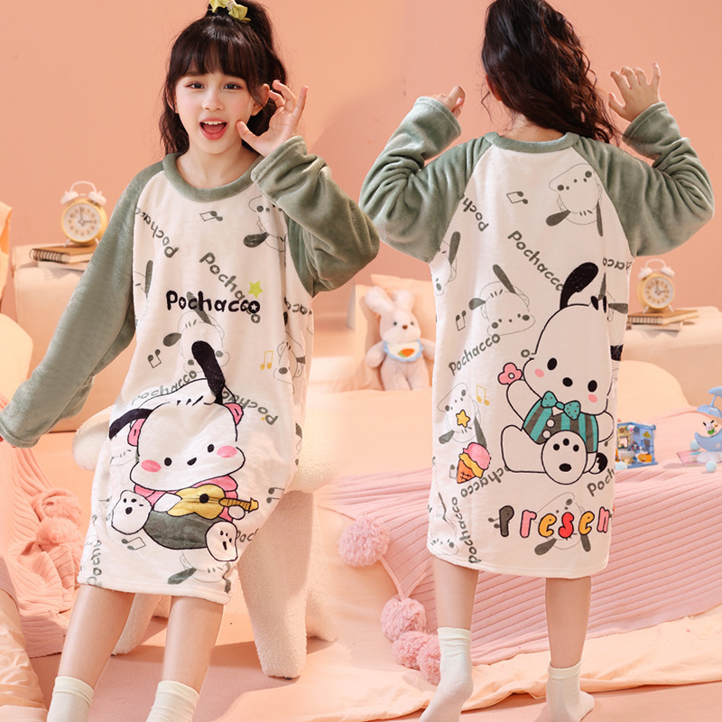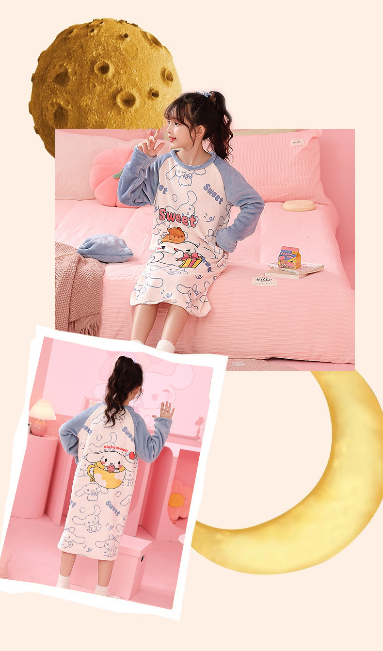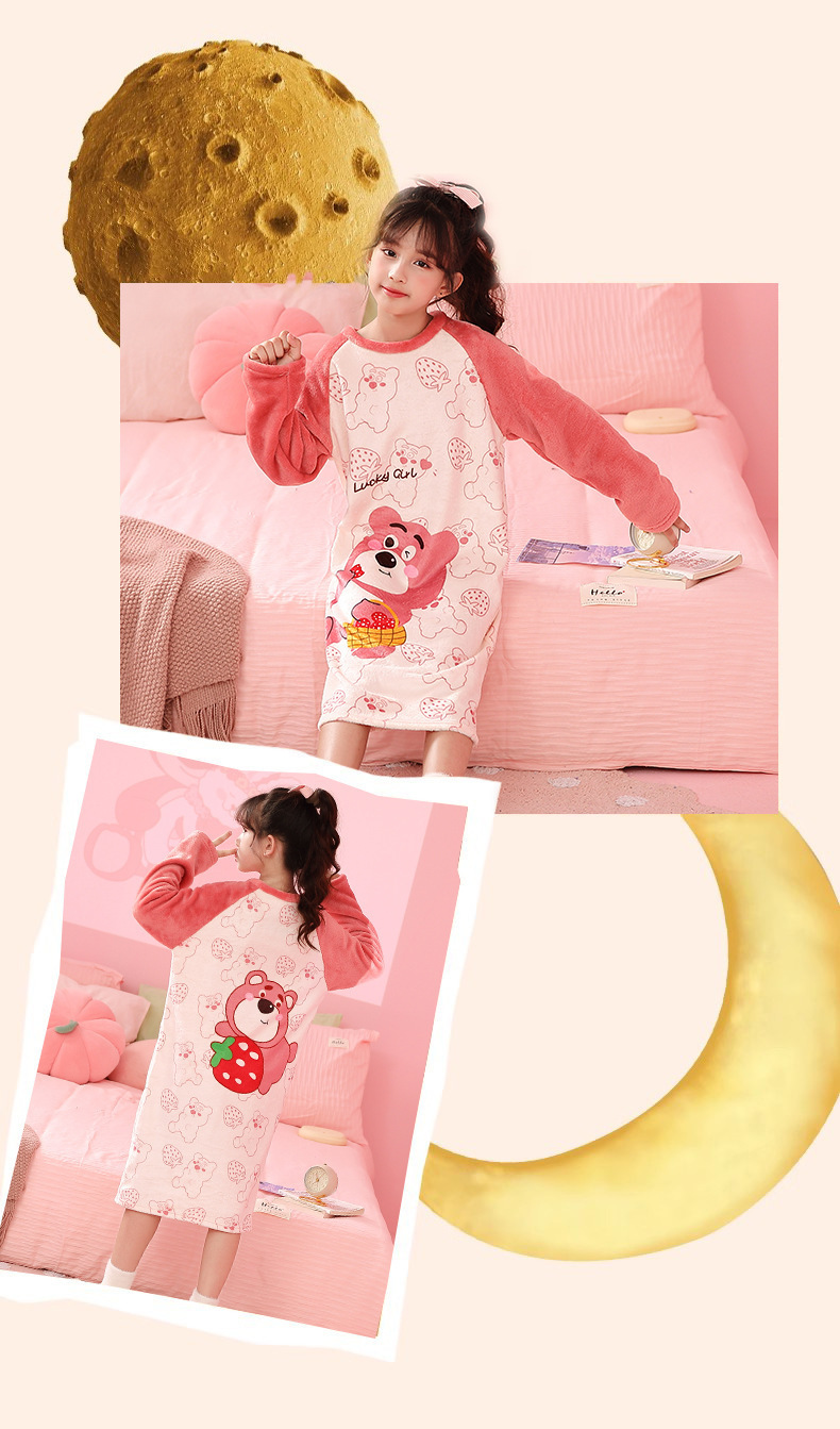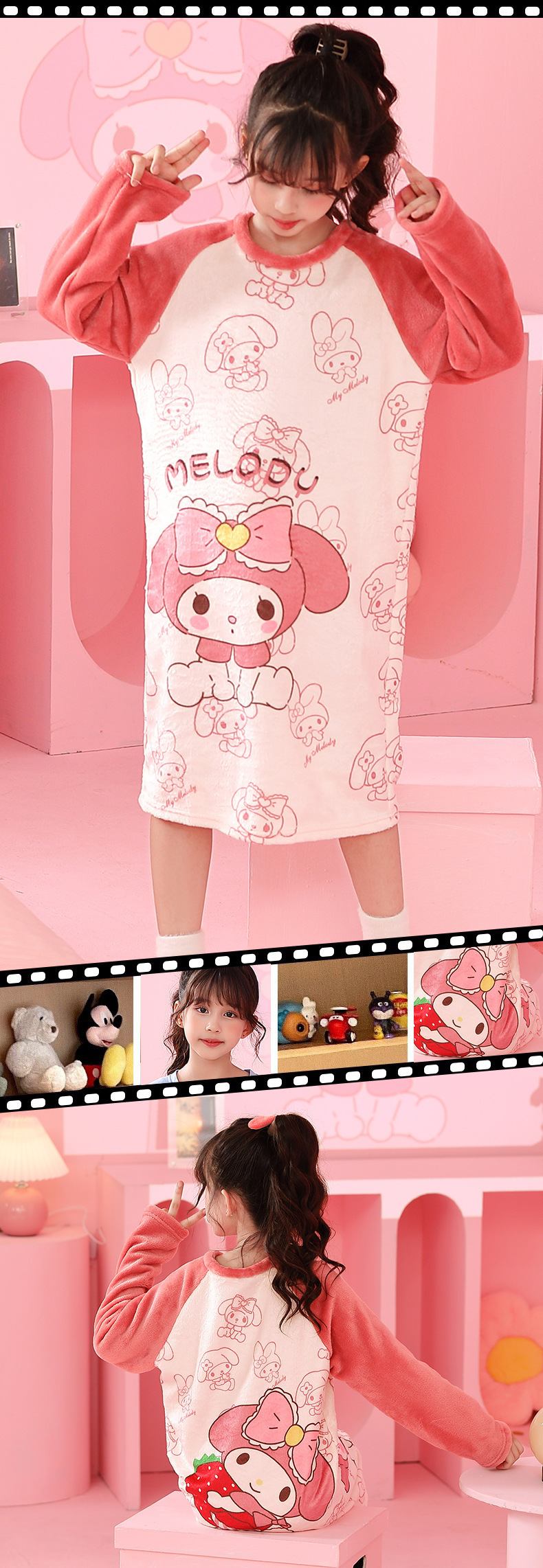 2024 осень и зима новая девушка фланелевая ночная рубашка девушка пижама зимняя детская домашняя одежда плюс бархатный мультяшный халат