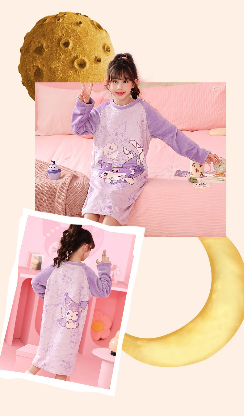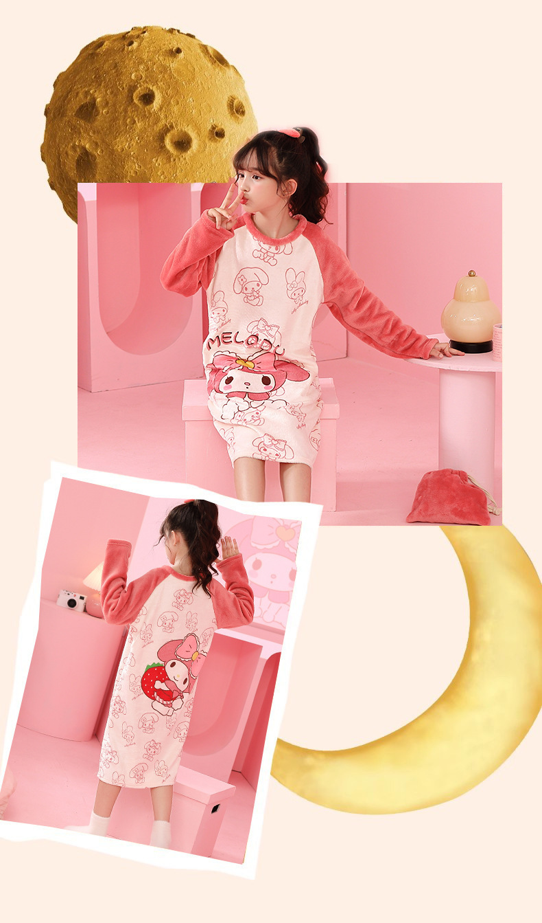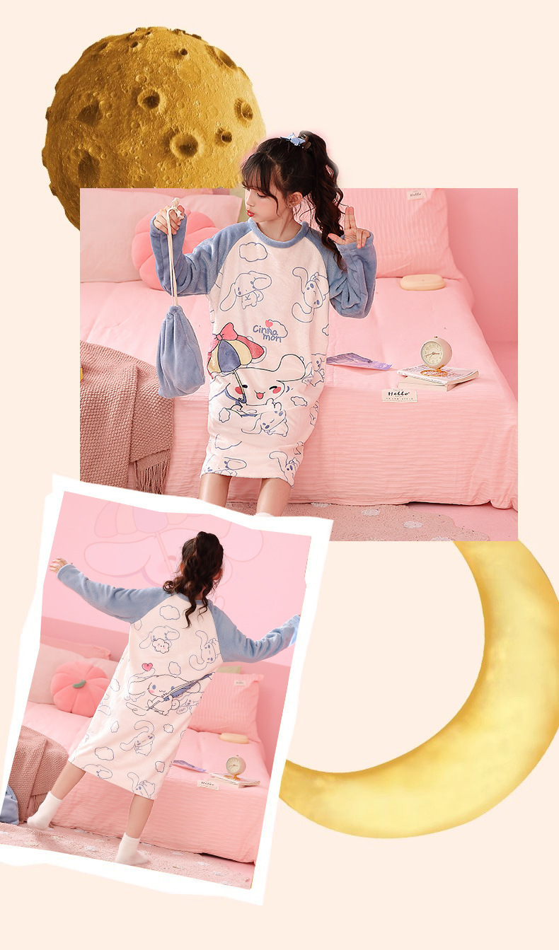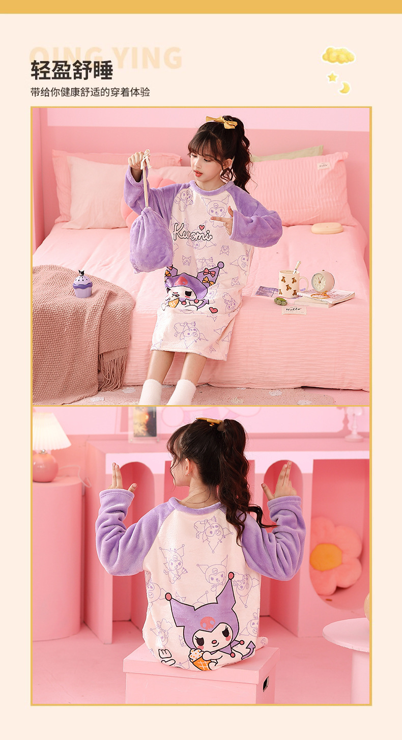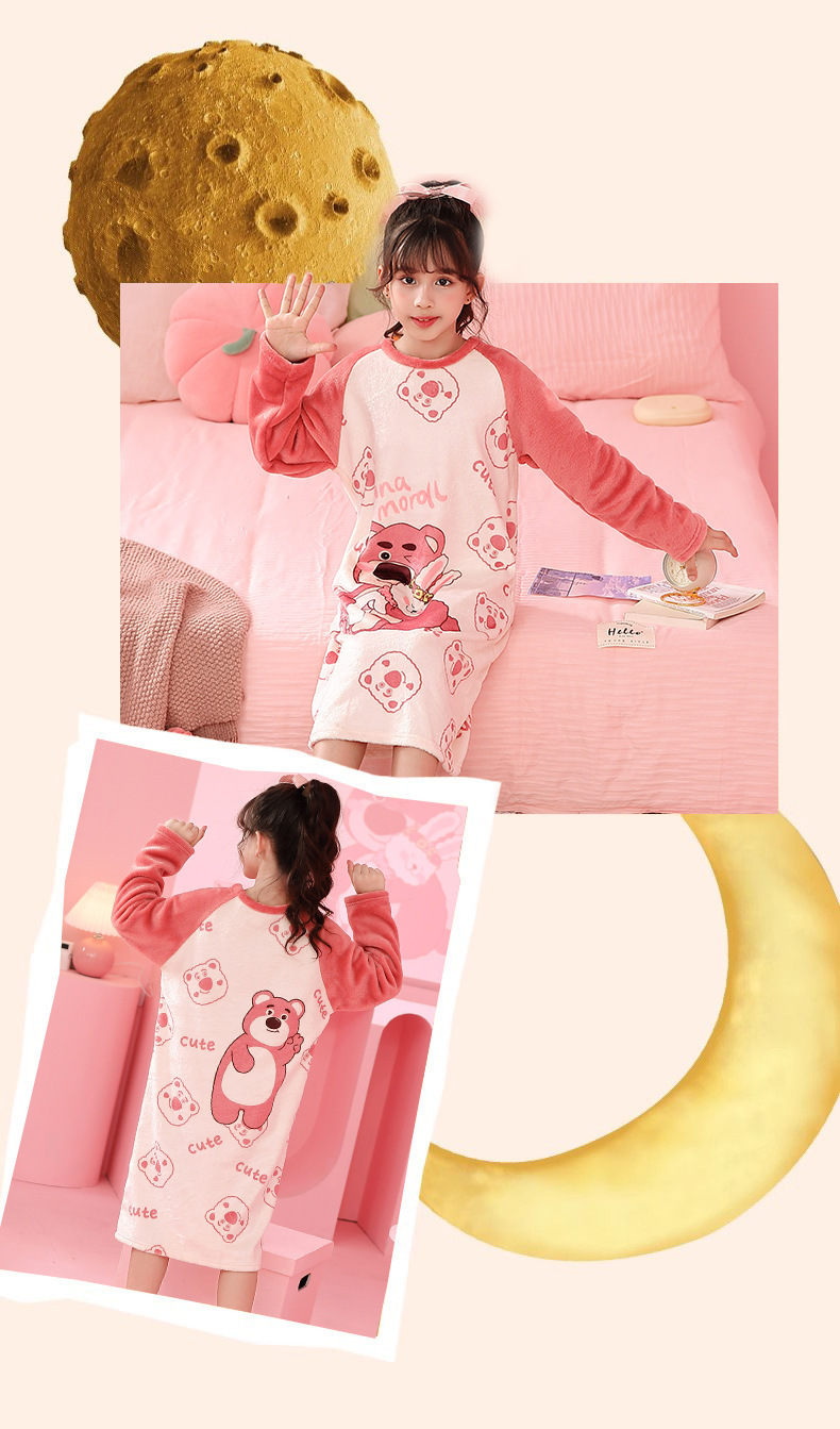 2024 осень и зима новая девушка фланелевая ночная рубашка девушка пижама зимняя детская домашняя одежда плюс бархатный мультяшный халат