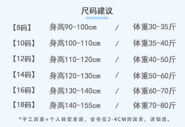Размер 8, рекомендуемая высота 95-105 см.; Размер 10, рекомендуемая высота 105-115 см.; Размер 12, рекомендуемая высота 115-125 см.; Размер 14, рекомендуемая высота 125-135 см.; Размер 16, рекомендуемая высота 135-145 см.; Размер 18, рекомендуемая высота 145-155 см.