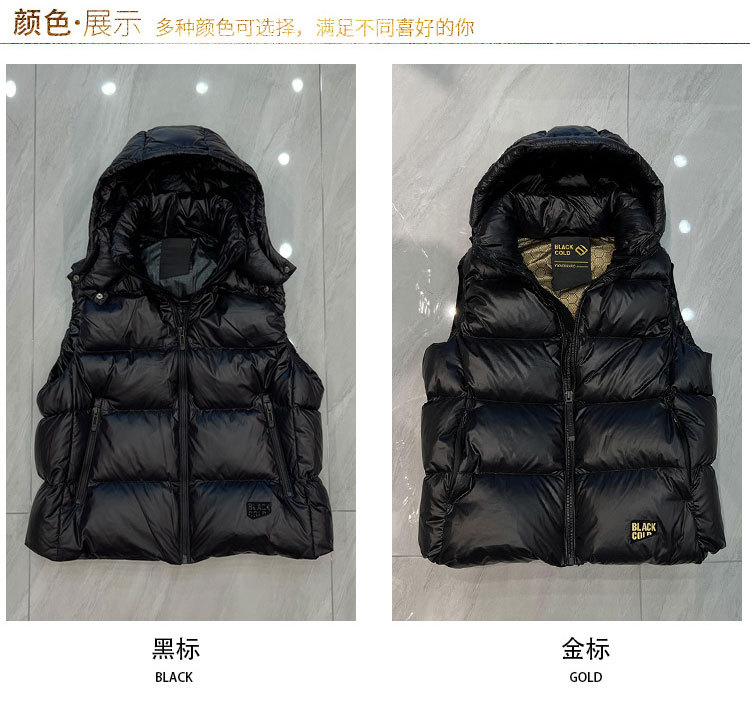 Черно-золотой гусиный жилет для мужчин и женщин в пуховике 2024 новый северо-восточный ультра толстый короткий жезл