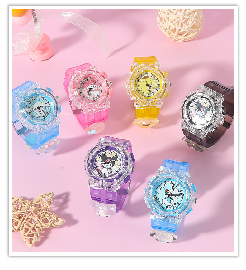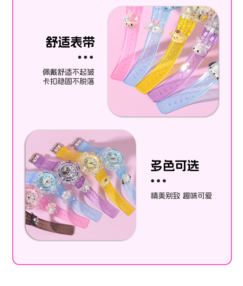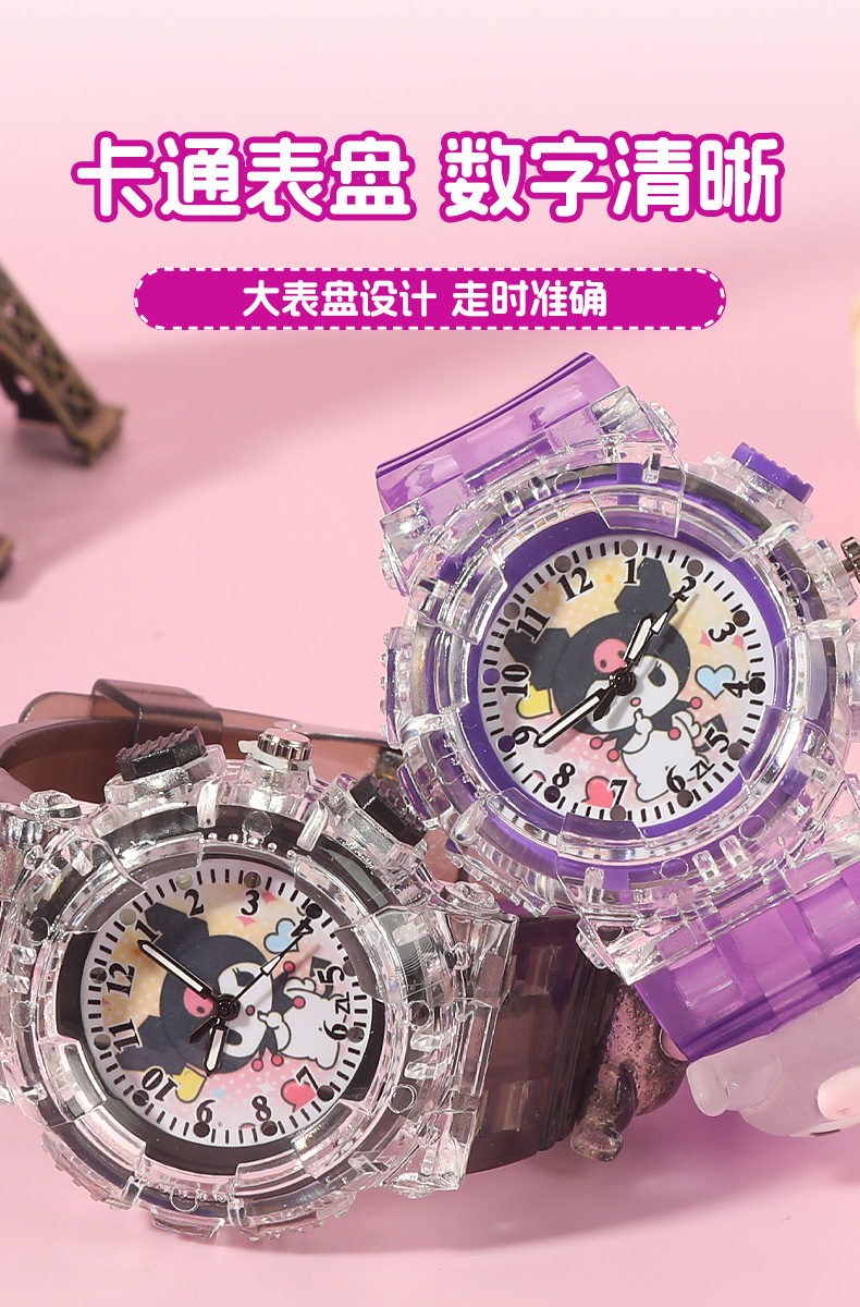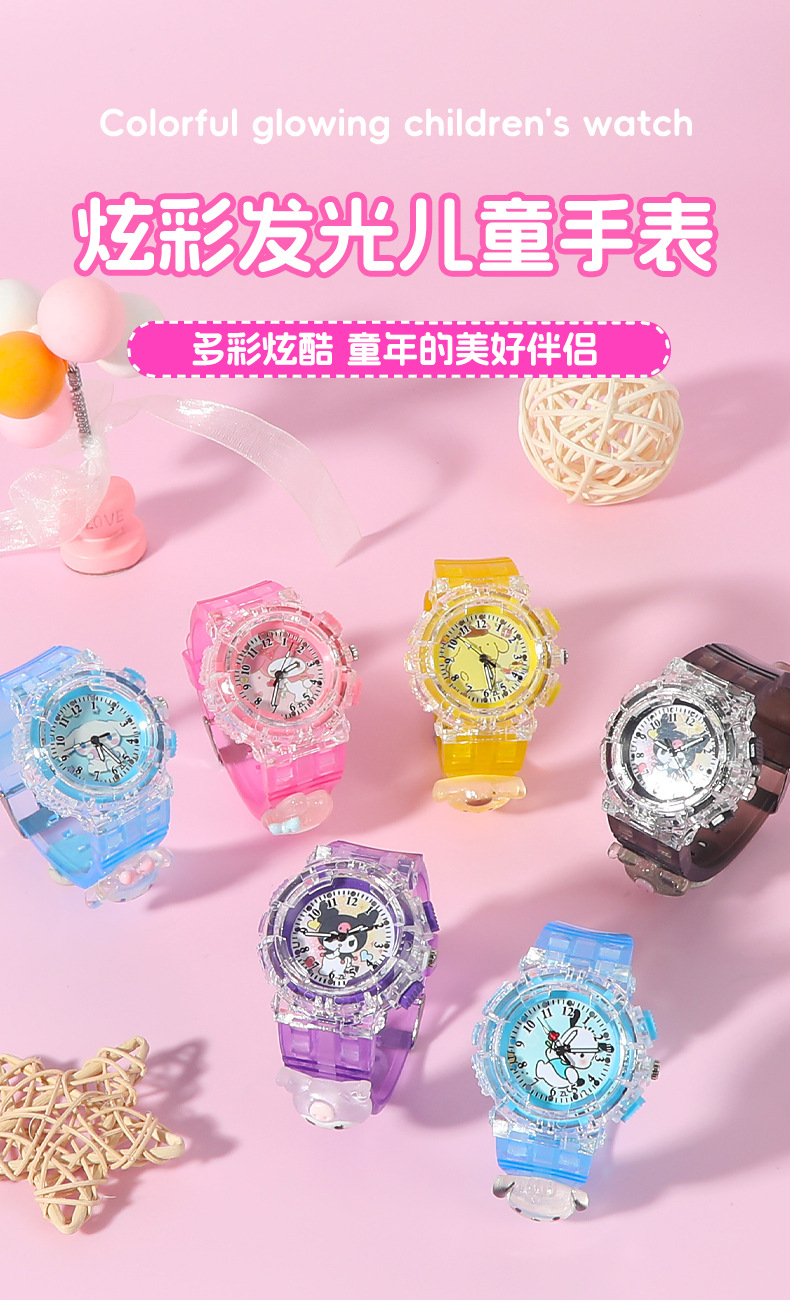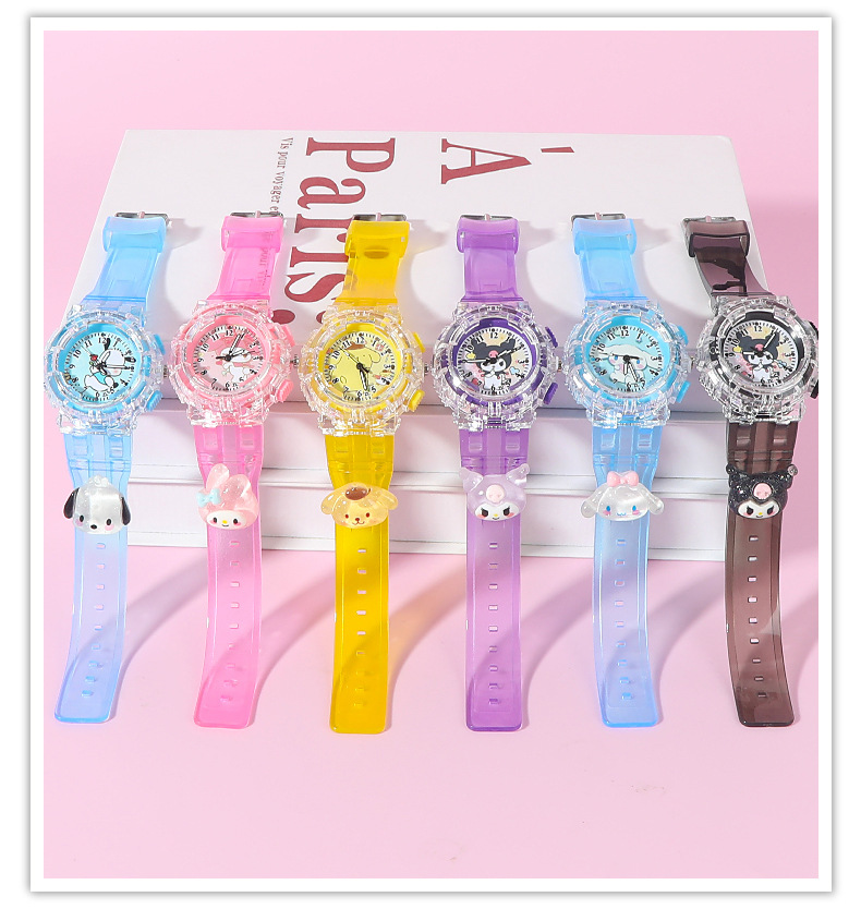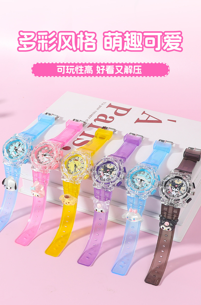 Детские часы Sanrio Мультяшные куклы Красочные блестящие кварцевые часы для учащихся начальной и средней школы Цифровые указатели Электронные часы