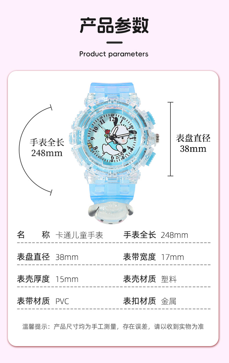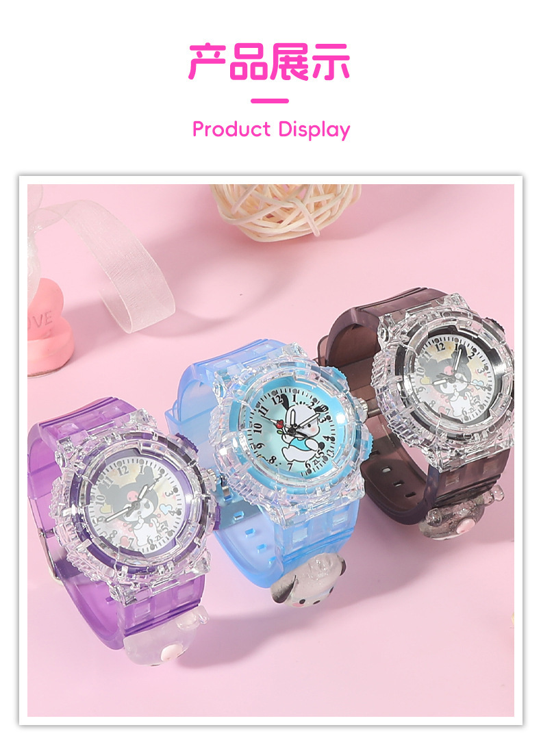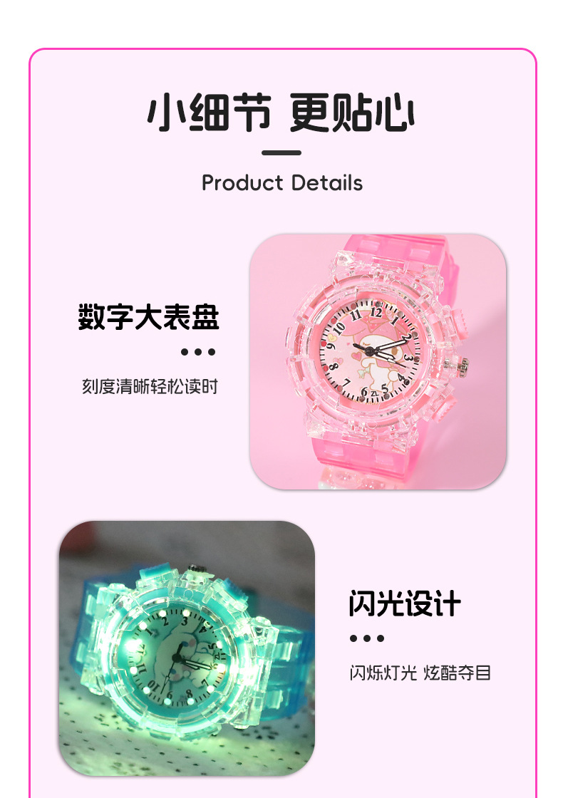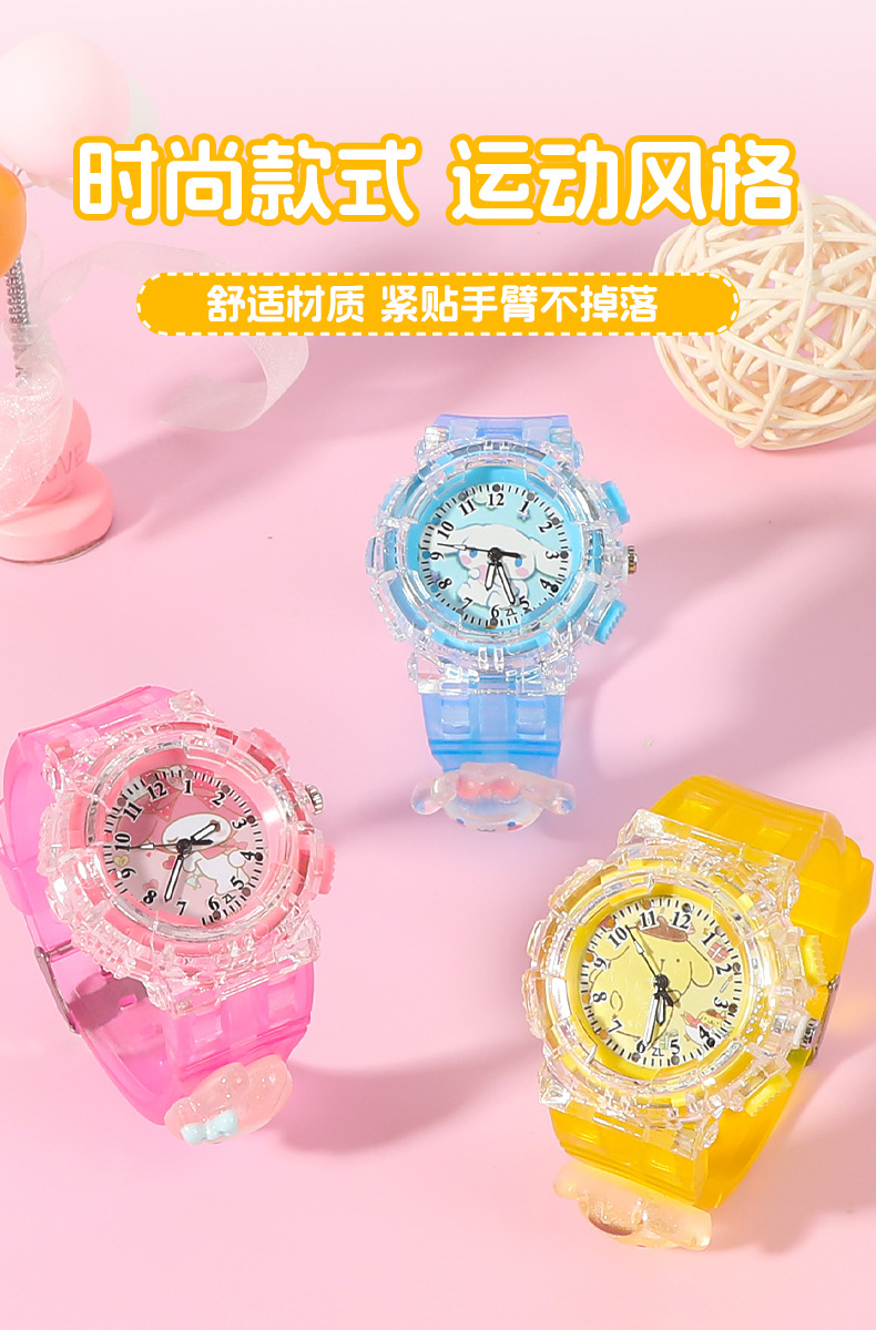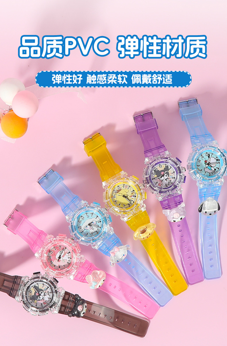 Детские часы Sanrio Мультяшные куклы Красочные блестящие кварцевые часы для учащихся начальной и средней школы Цифровые указатели Электронные часы