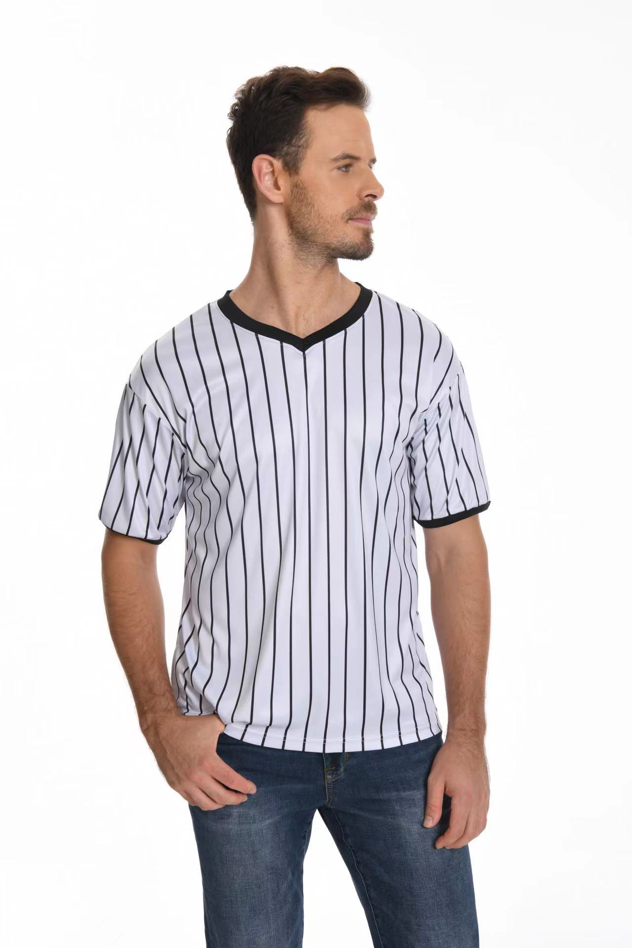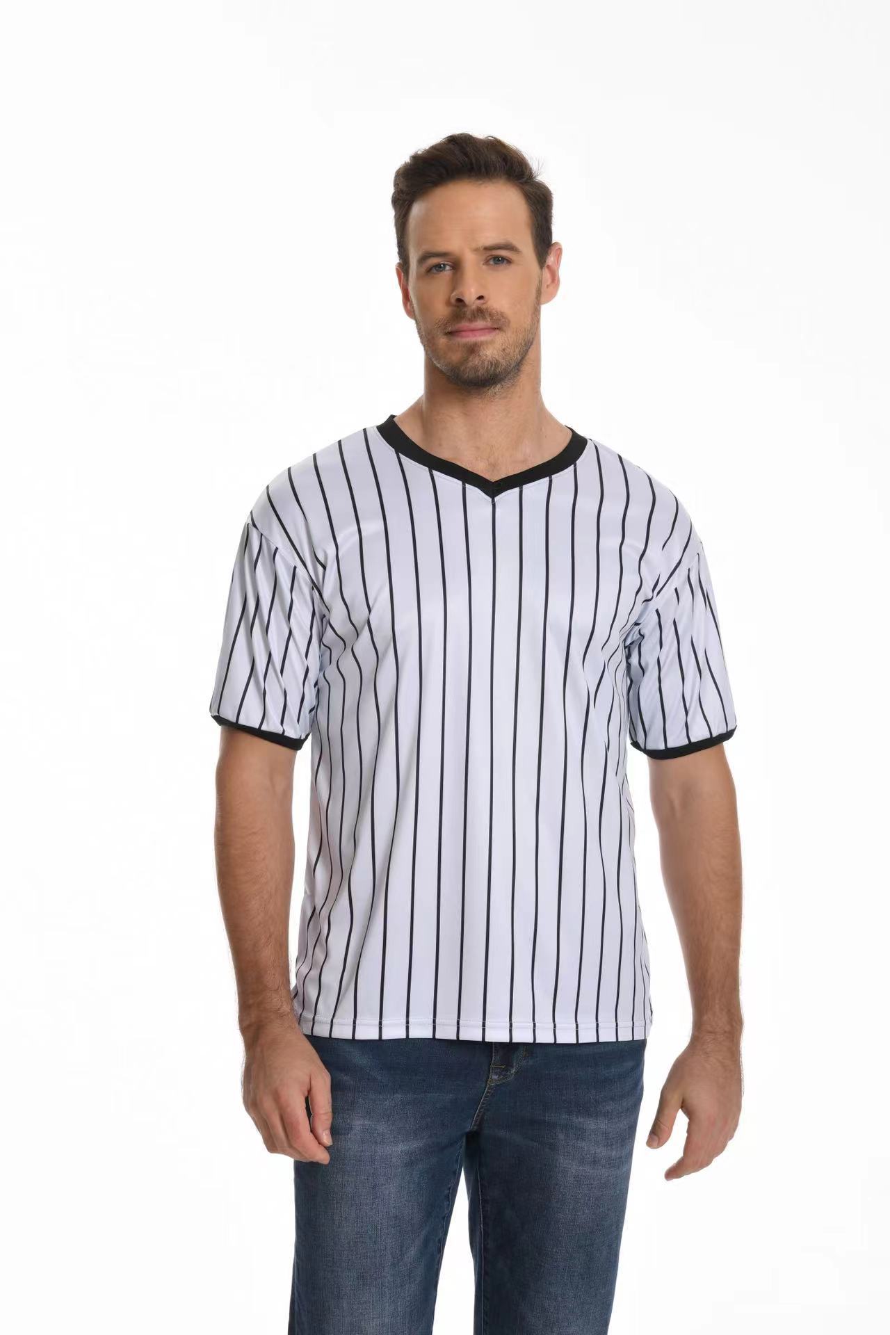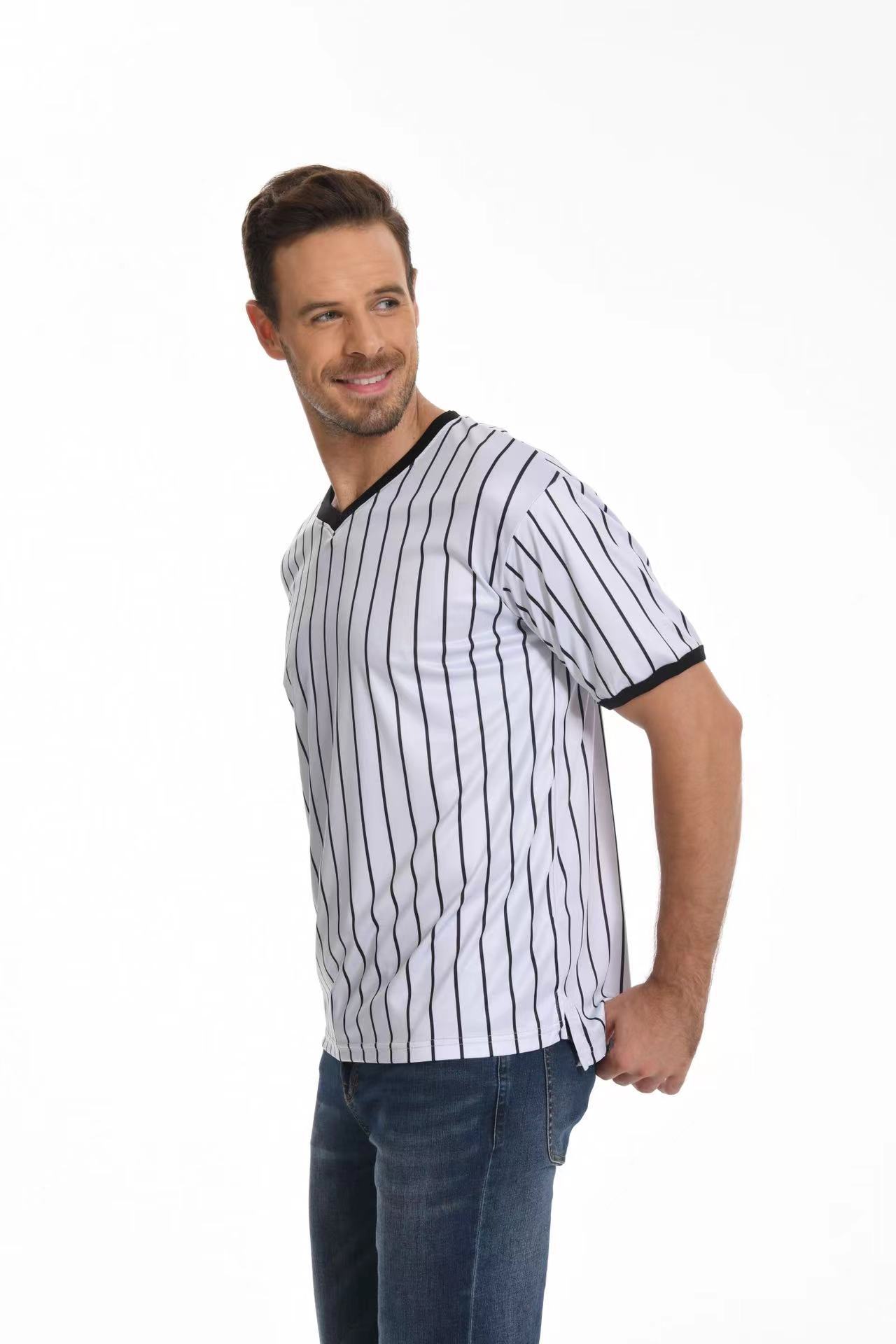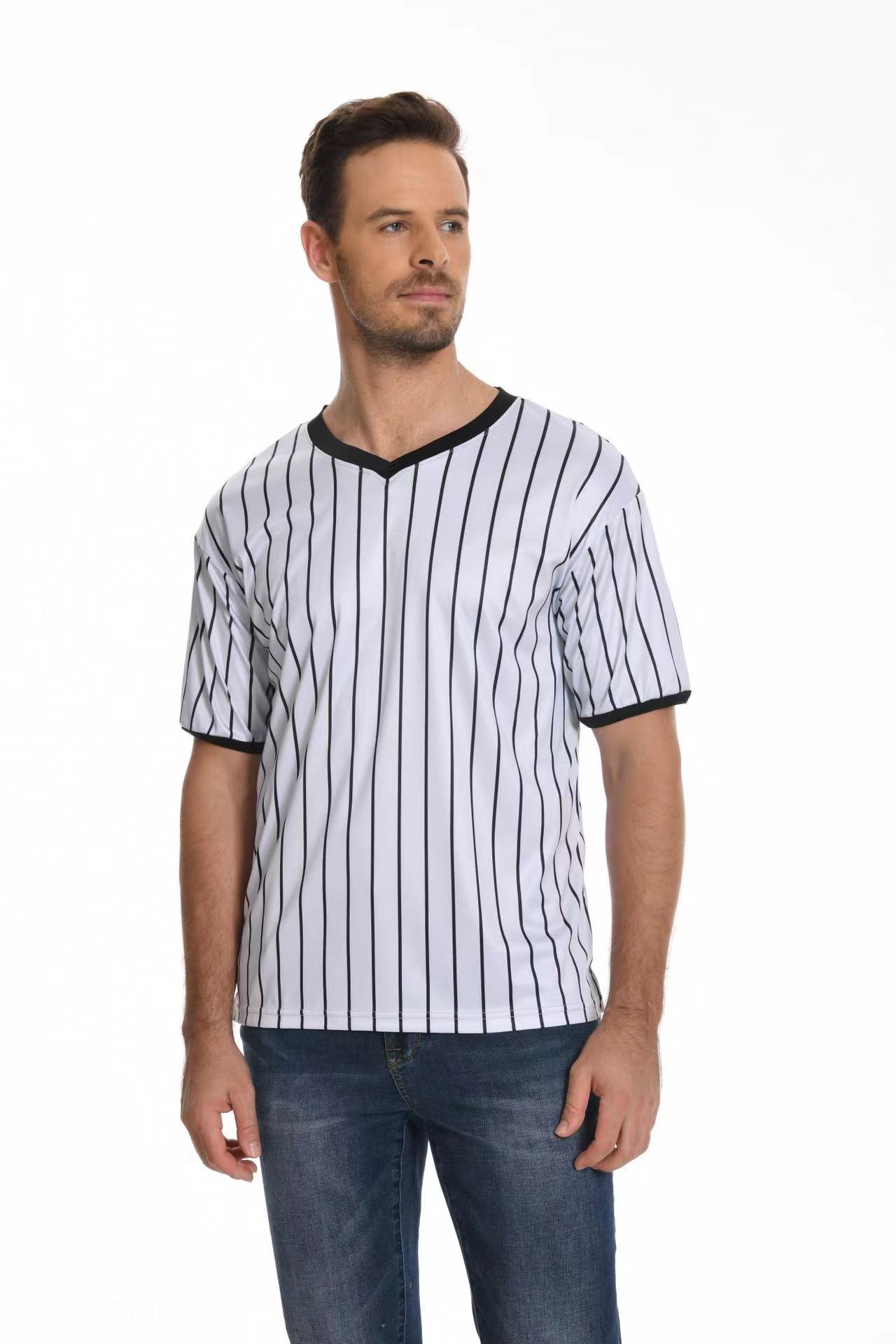 V-образный воротник производительность футболка в полоску рубашка влагопоглощающая пот с коротким рукавом баскетбольный футбольный рефери футболка в тонкую полоску
