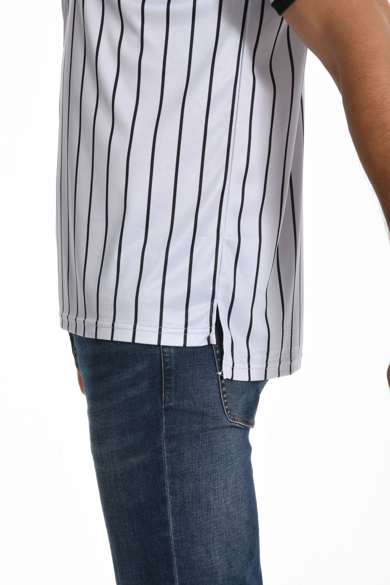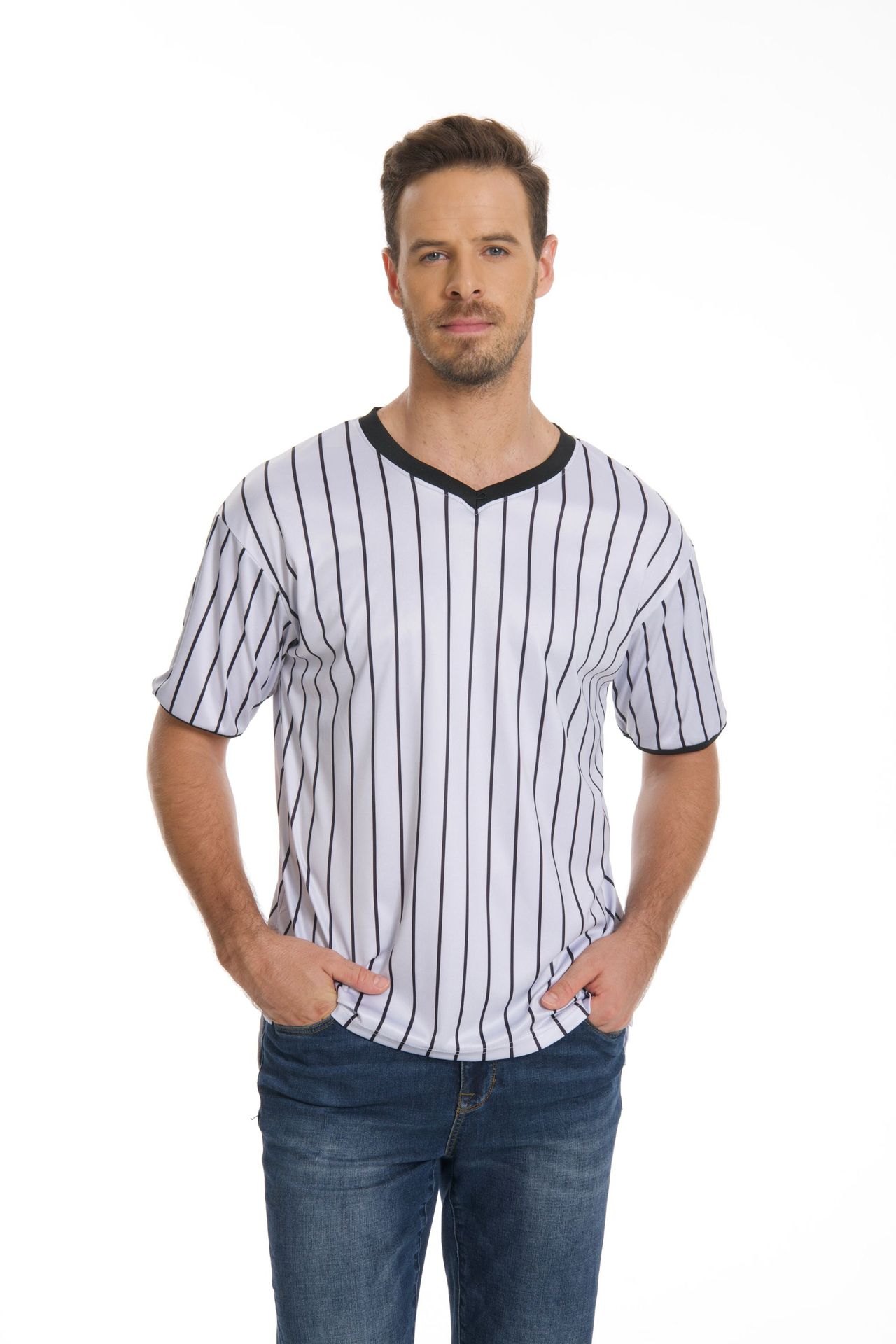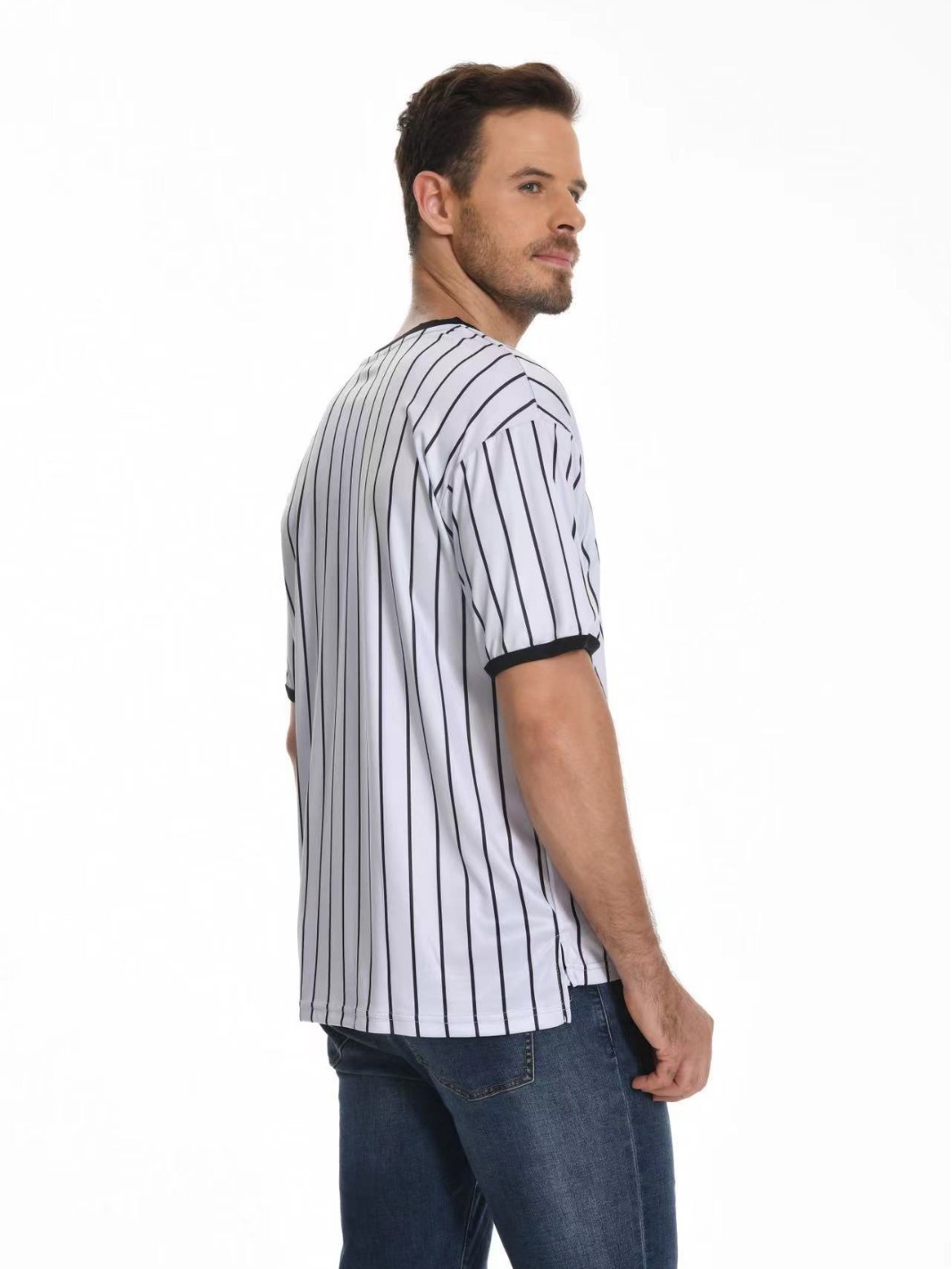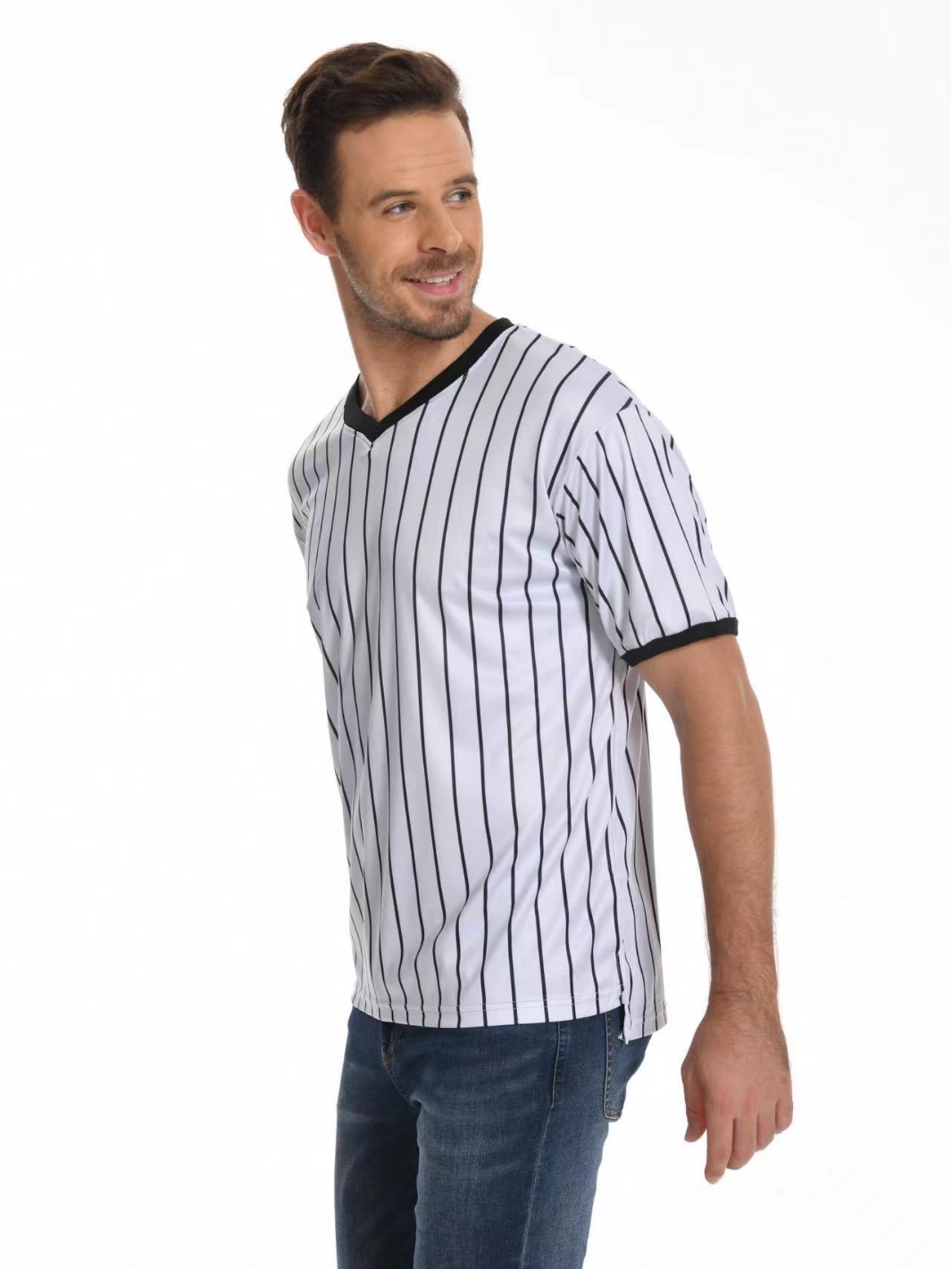 V-образный воротник производительность футболка в полоску рубашка влагопоглощающая пот с коротким рукавом баскетбольный футбольный рефери футболка в тонкую полоску