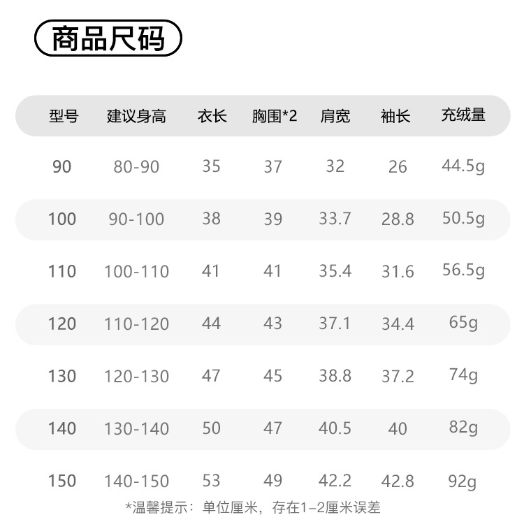 90, емкость наполнения 44,5 г.; Емкость наполнения 100 пухом 50,5 г; 110, емкость наполнения 56,5 г.; 120 пуха, емкость 65 г.; 130, емкость наполнения 74 г.; 140, емкость наполнения 82 г.; 150 пухового наполнения, 92 г.
