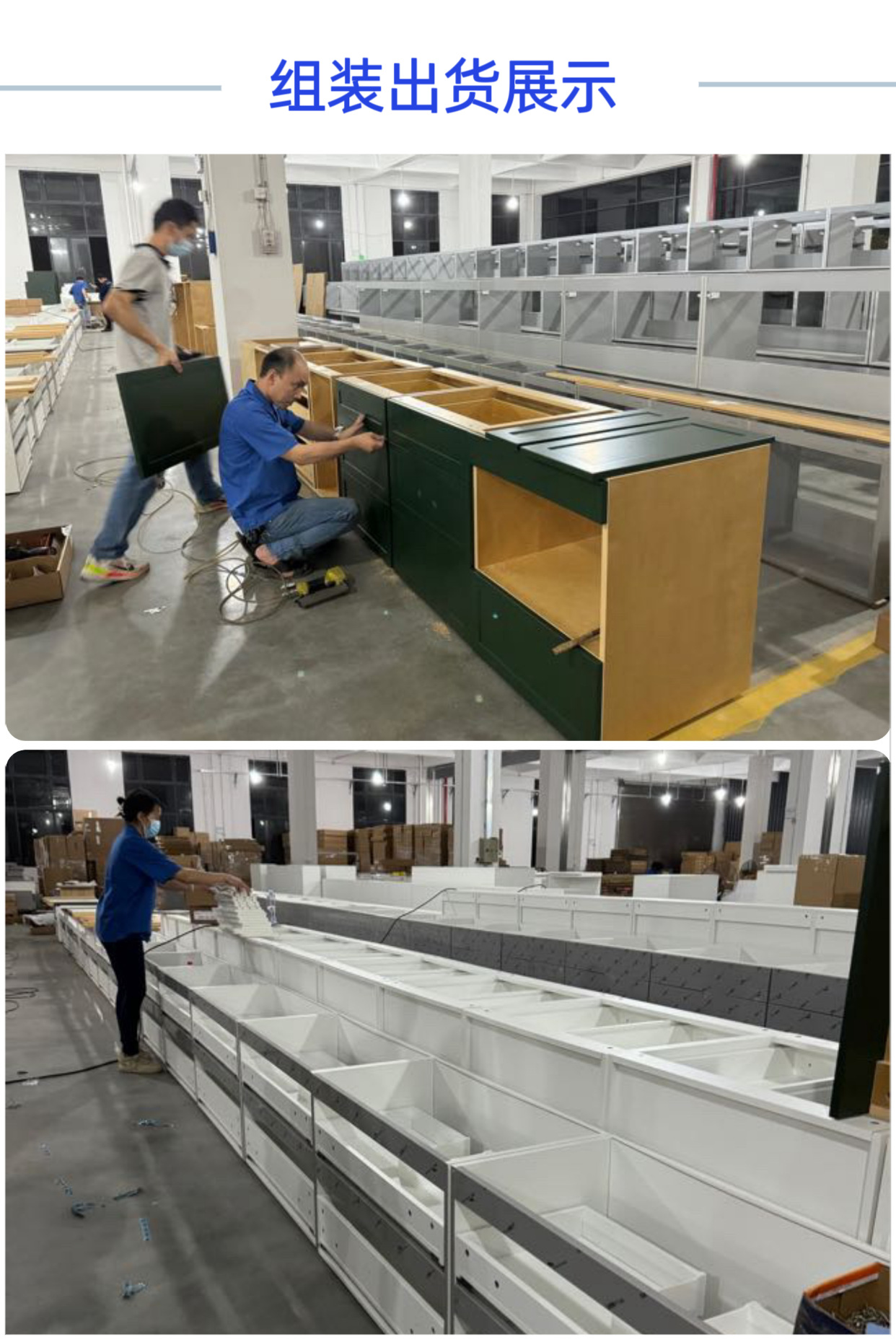 1、 自有工厂25000平方米,另有新兴分厂,专业生产橱柜,衣柜,浴室柜等板式实木家具。有15年的出口经验,只限做工程批发、OEM和出口单。
