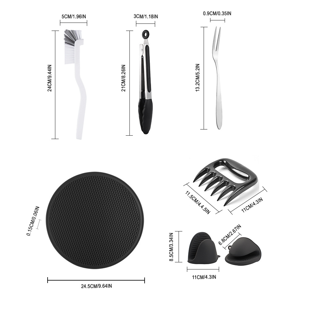 可以配配件(刷子、叉子、夹子、硅胶垫、虎爪、隔热手套都行);