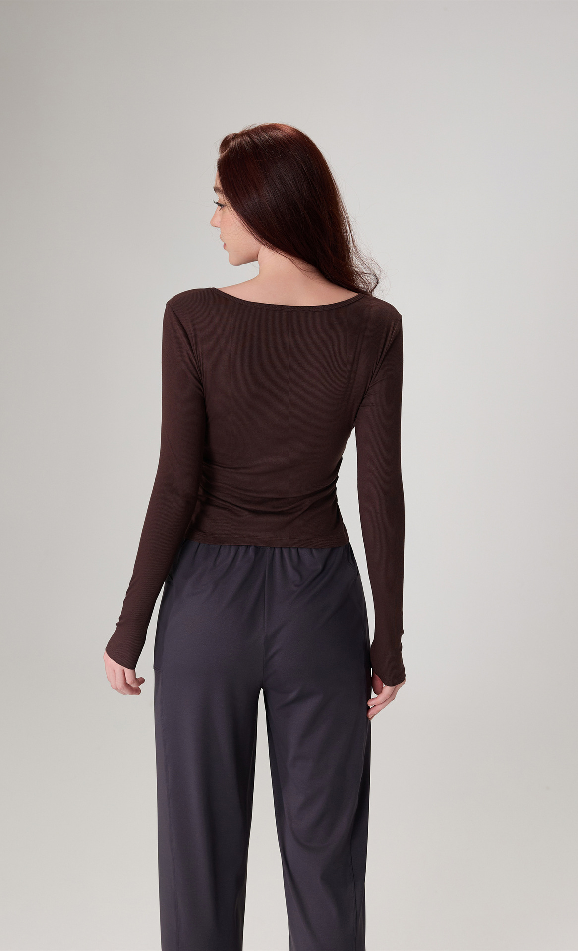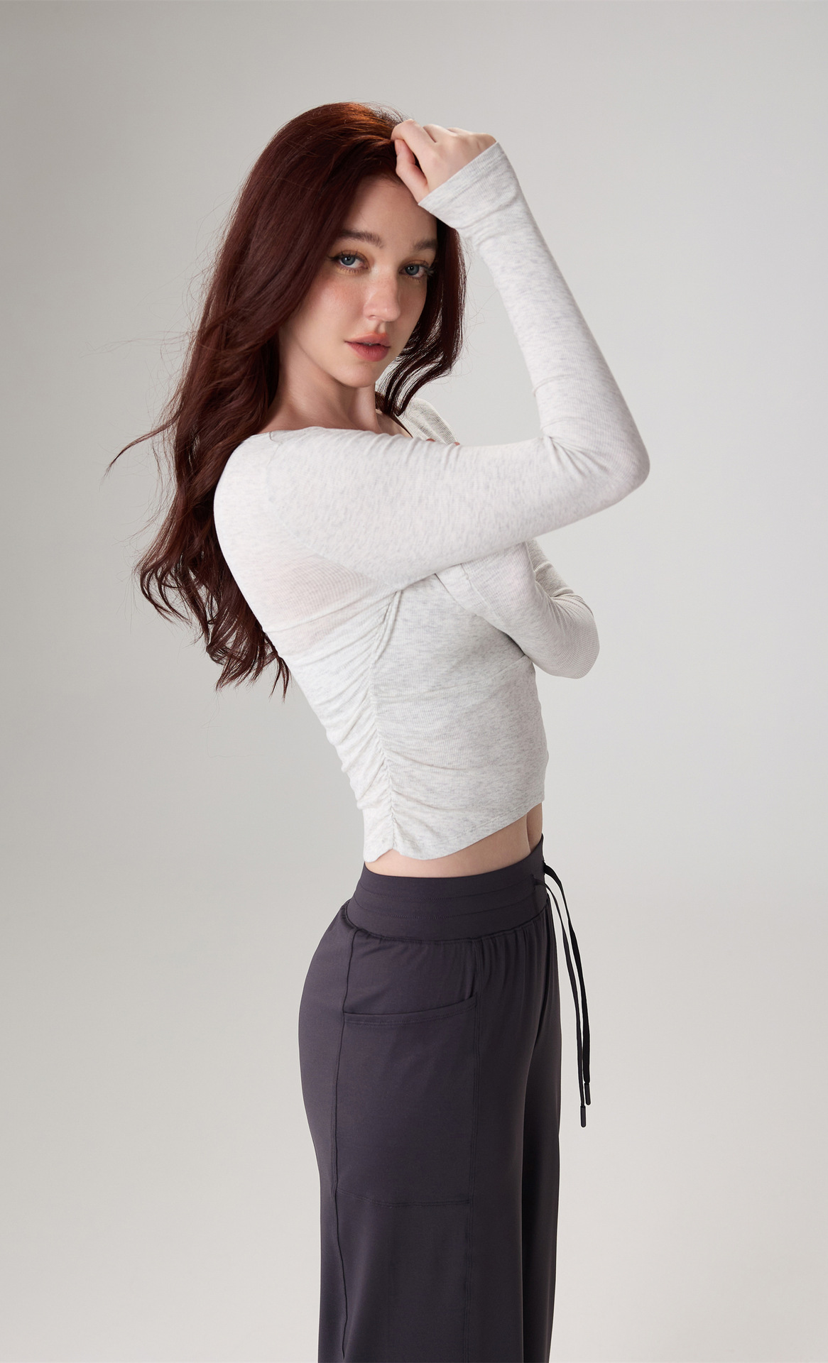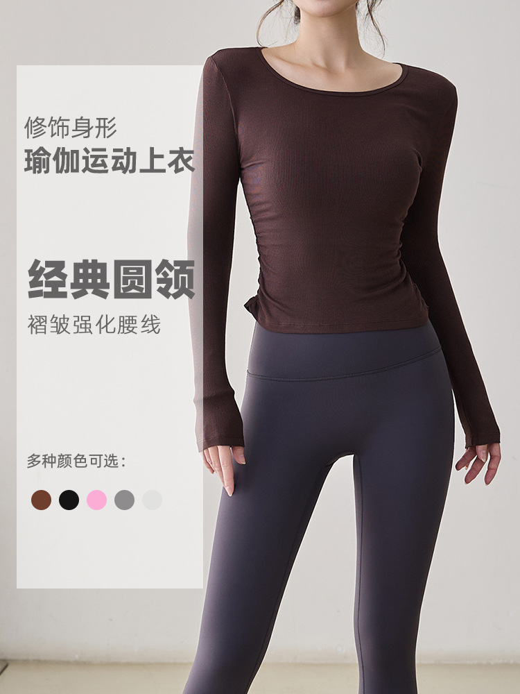 Спортивный топ для йоги из модала с ребристой текстурой, облегающий пуловер с круглым вырезом и длинными рукавами, фитнес-одежда для женщин.