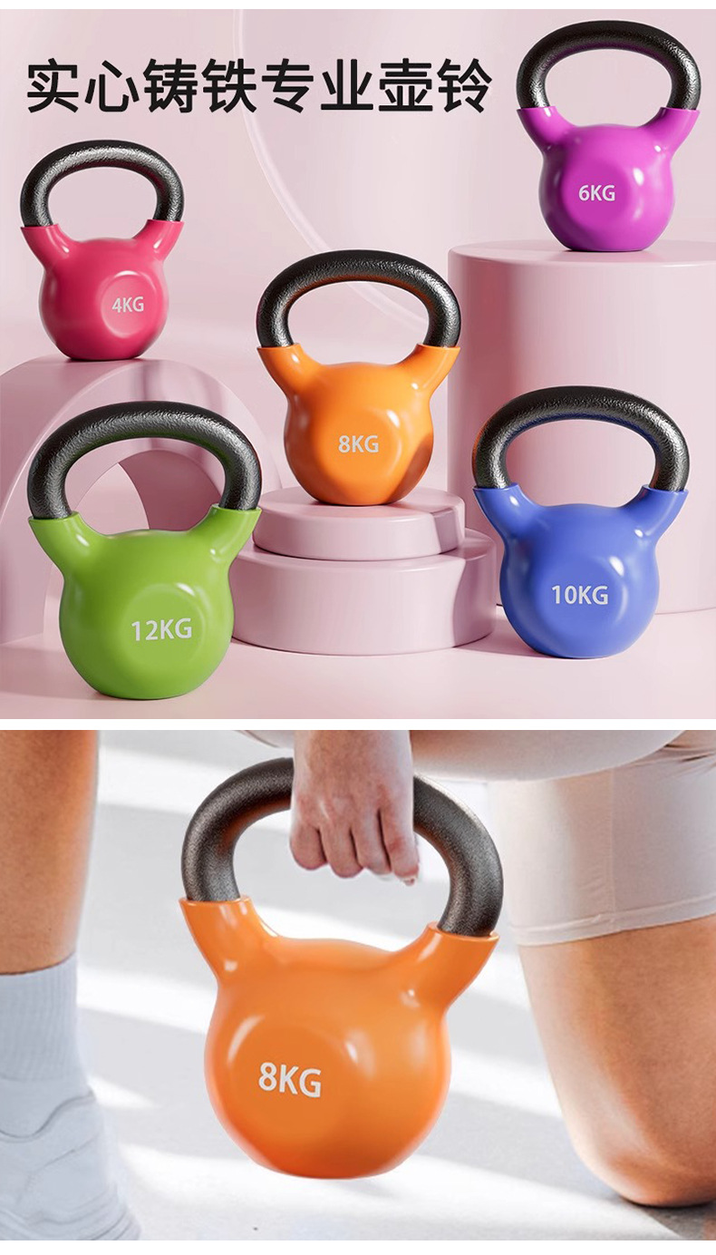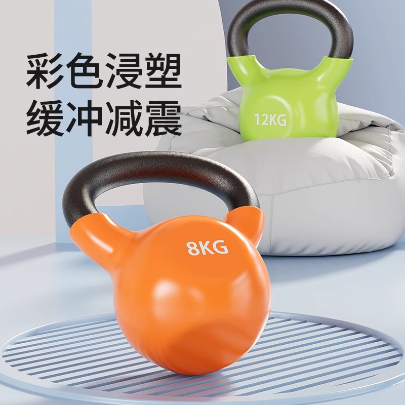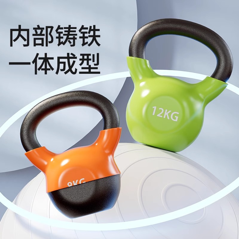 Гиря в пластиковом покрытии для домашних тренировок: приседаний, становой тяги, тренировок ягодиц, йоги, поднятия тяжестей на бедрах (чугунная)