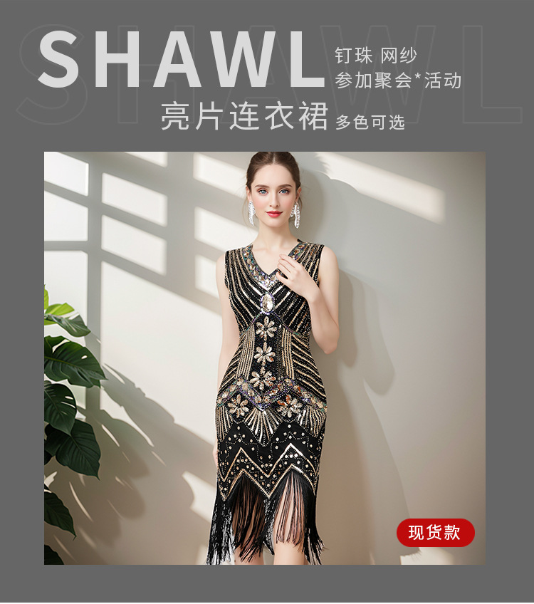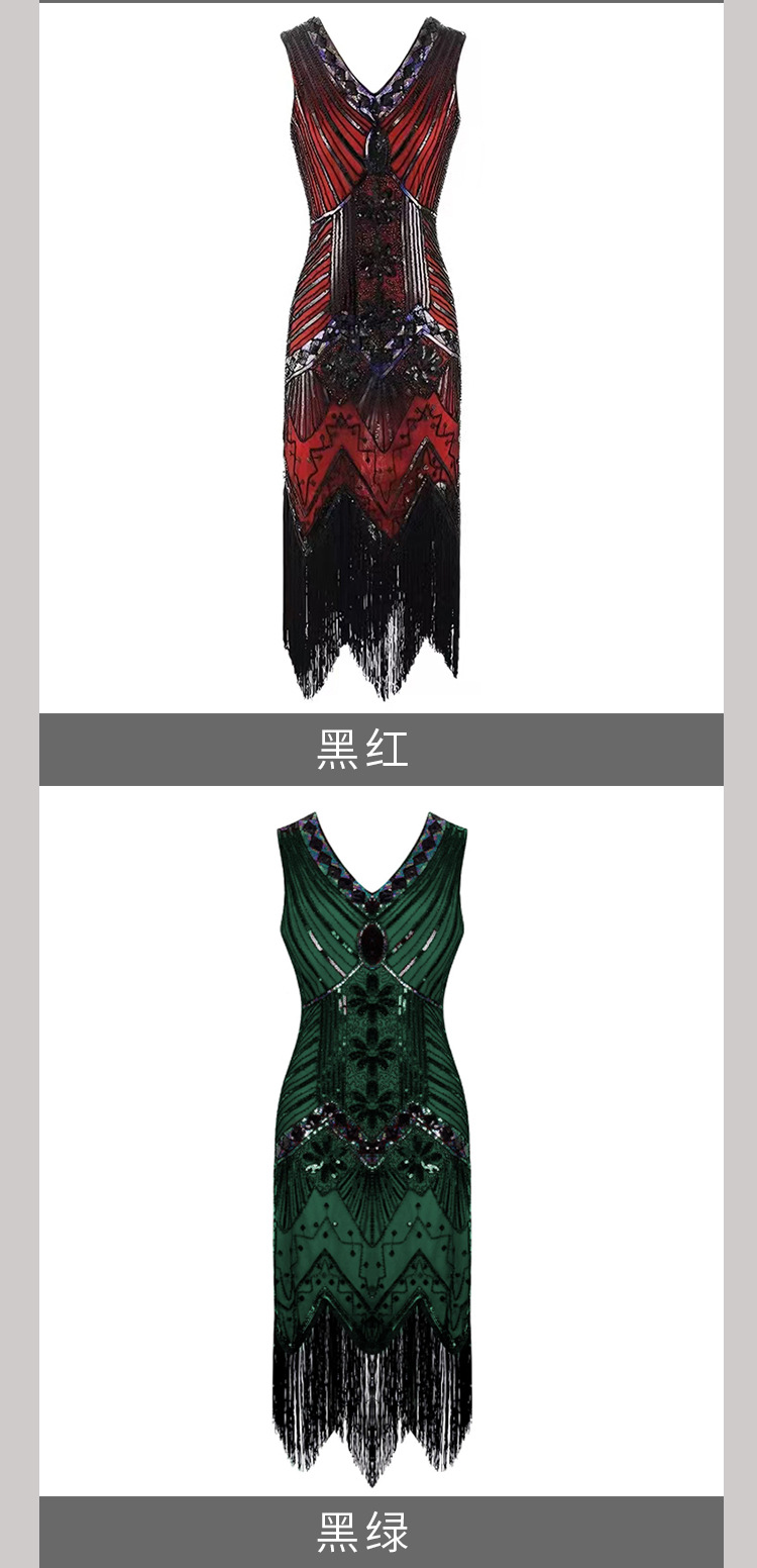 Трансграничные европейские и американские 1920s блестки из бисера кисточки без рукавов жилет с V-образным вырезом платье модное вечернее платье Amazon