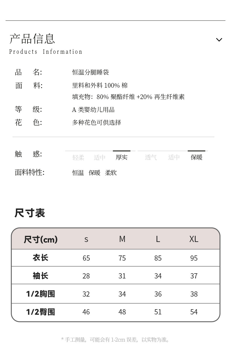 S [рекомендуемый рост 60–85 см, 6–14 месяцев]; М [Рекомендуемый рост 80-95 см, возраст 14 месяцев-2,5 года]; L【Рекомендуемый рост 90-105 см, 2-4 года】; XL [рекомендуемый рост 100-120 см, возраст 3,5-5,5 лет]