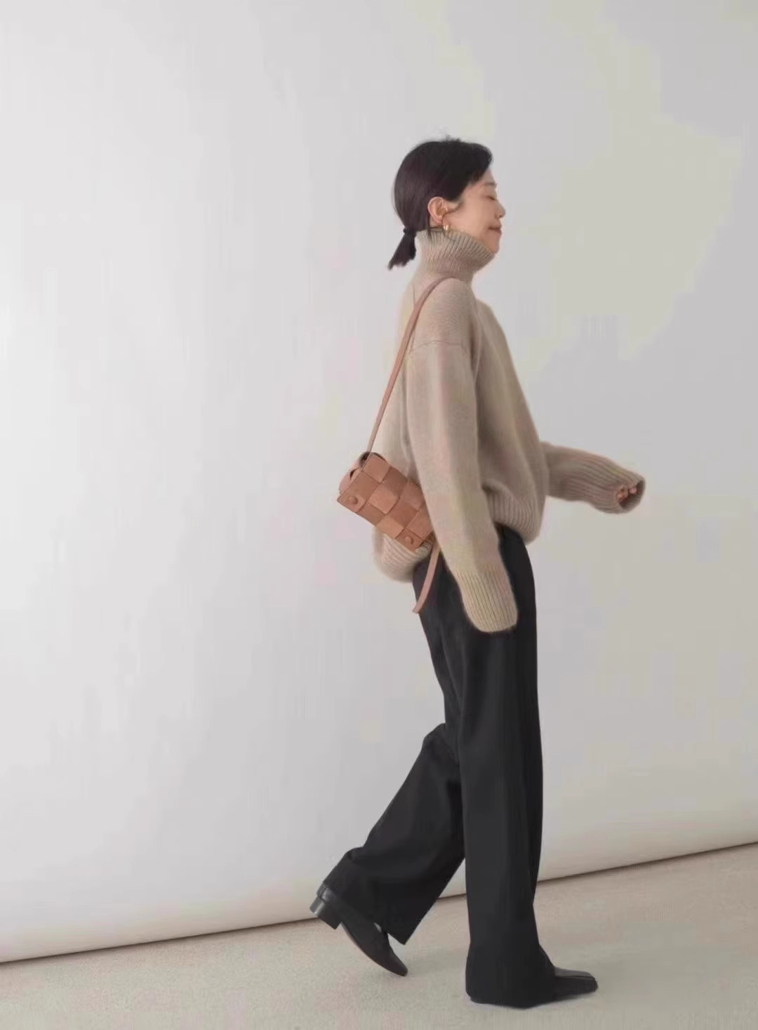 Тяжелый рекомендуется ~ Чистый шерстяной свитер с высоким воротником женский свободный толстый ленивый стиль свитер силуэт трикотажный нижний свитер