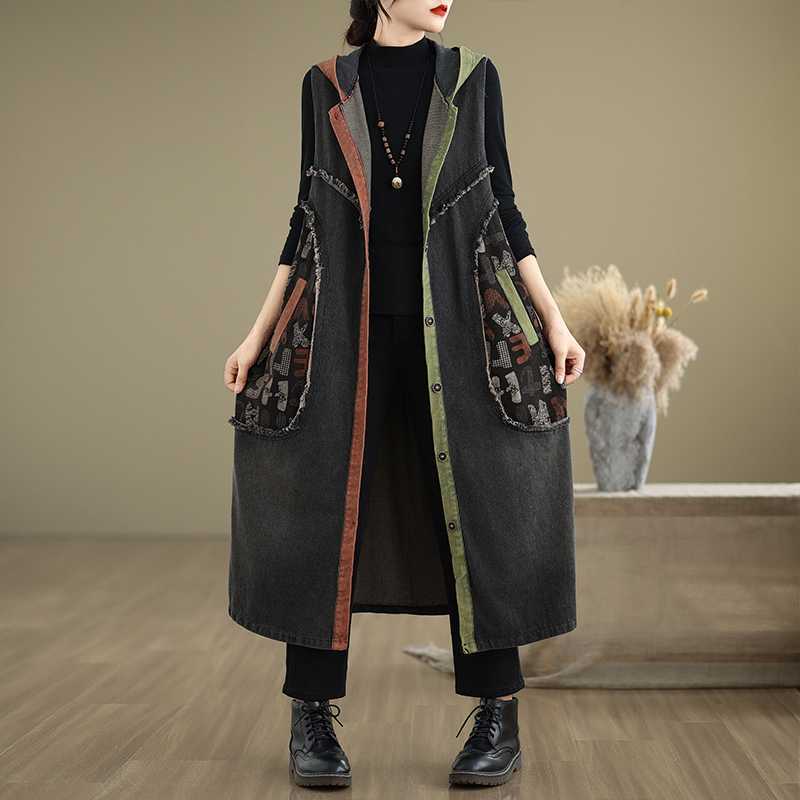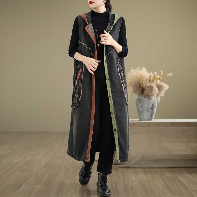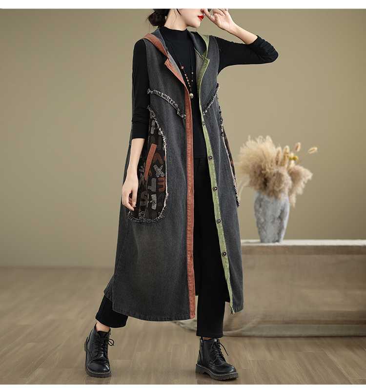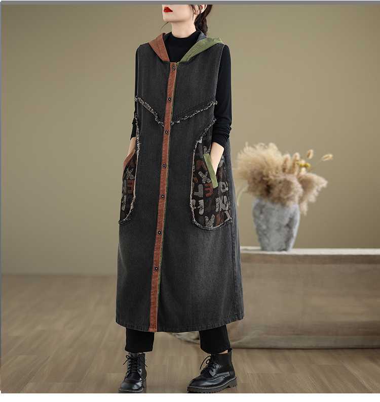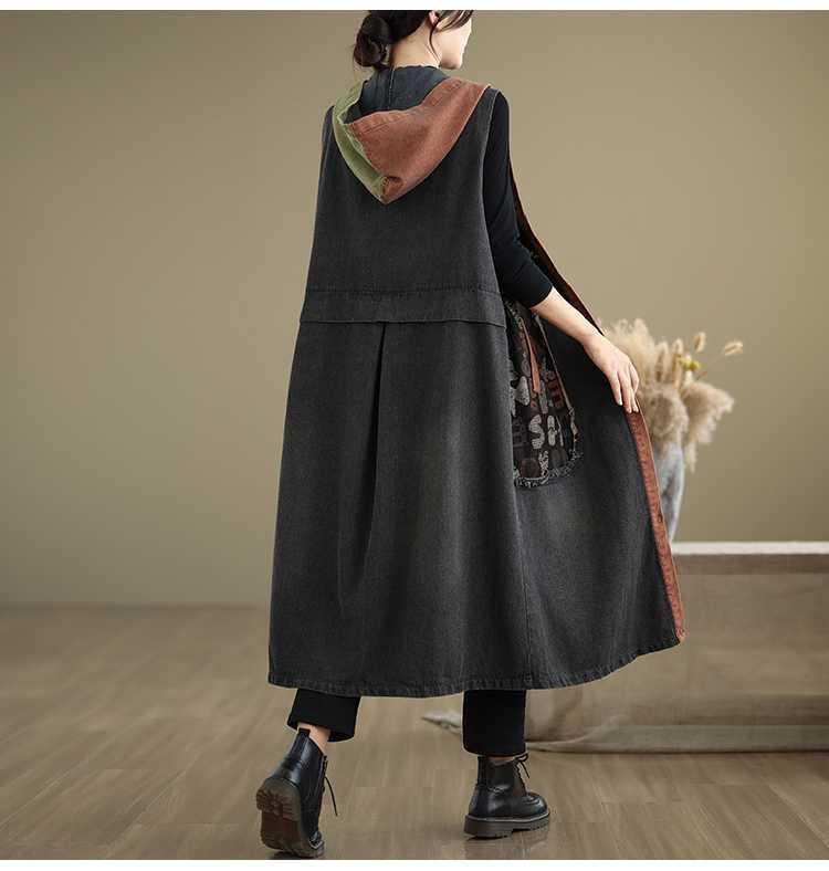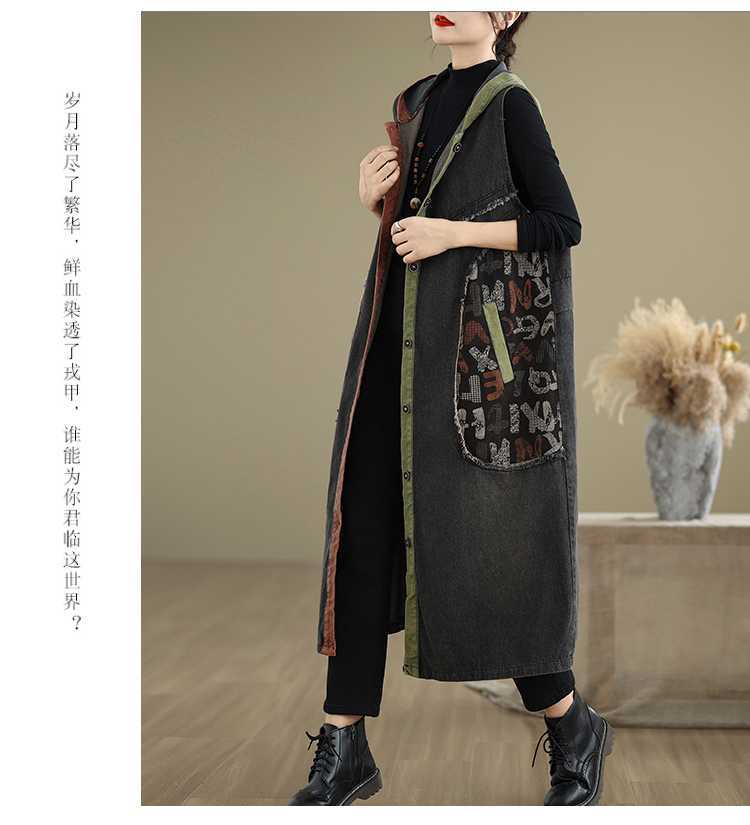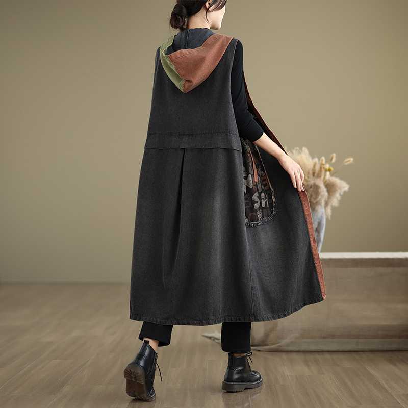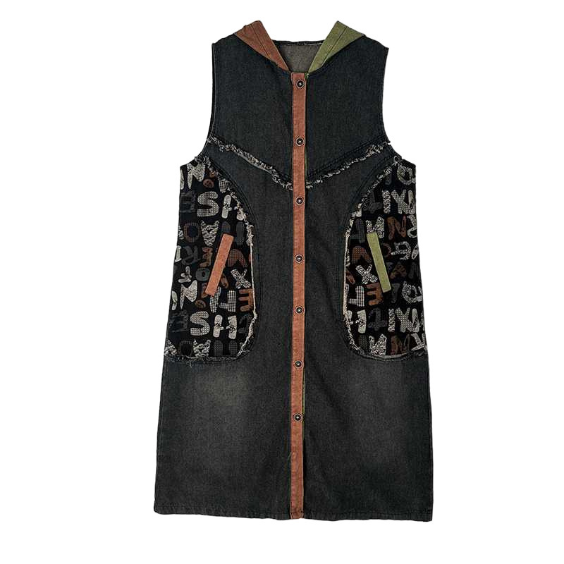 Реальная стрельба Ретро свободный джинсовый жилет с капюшоном