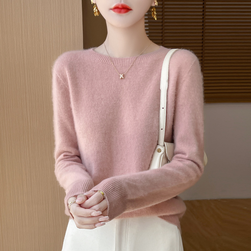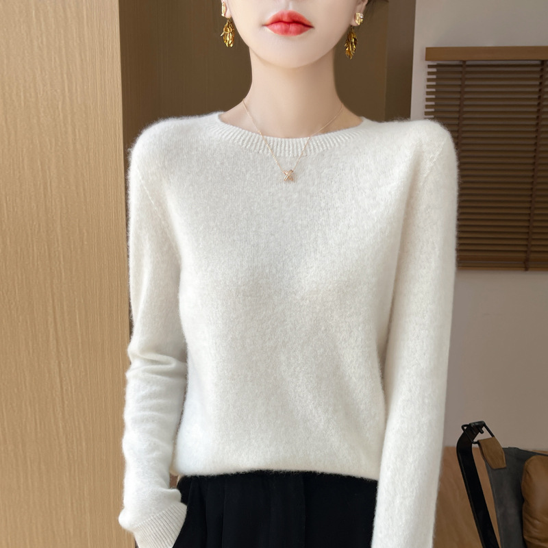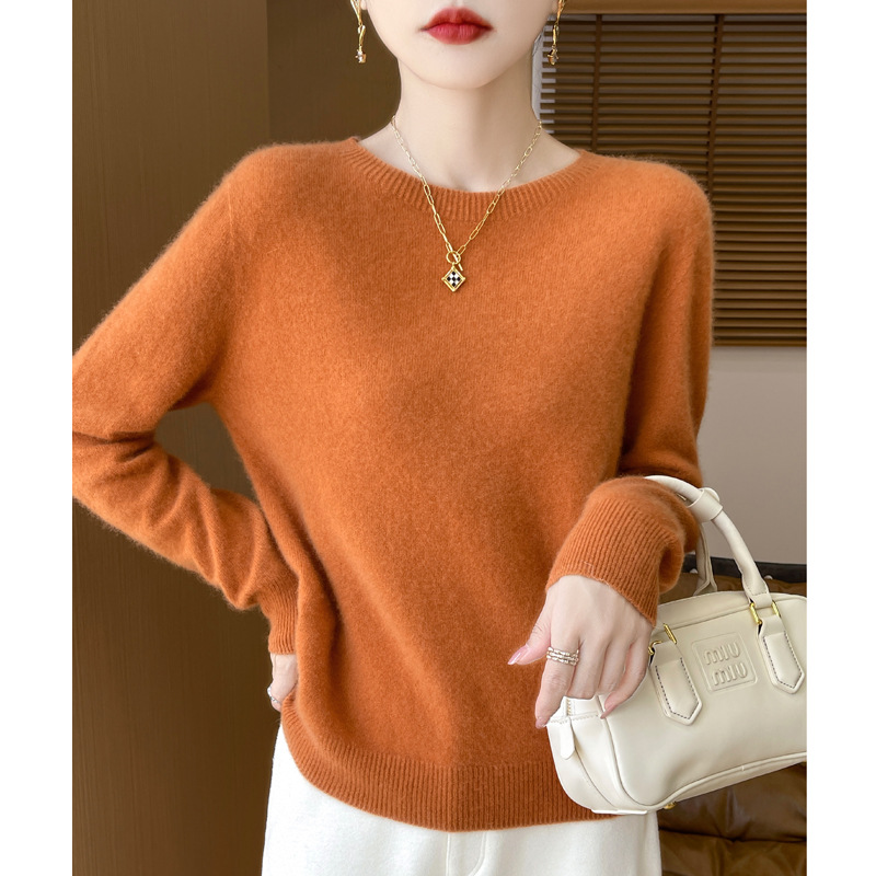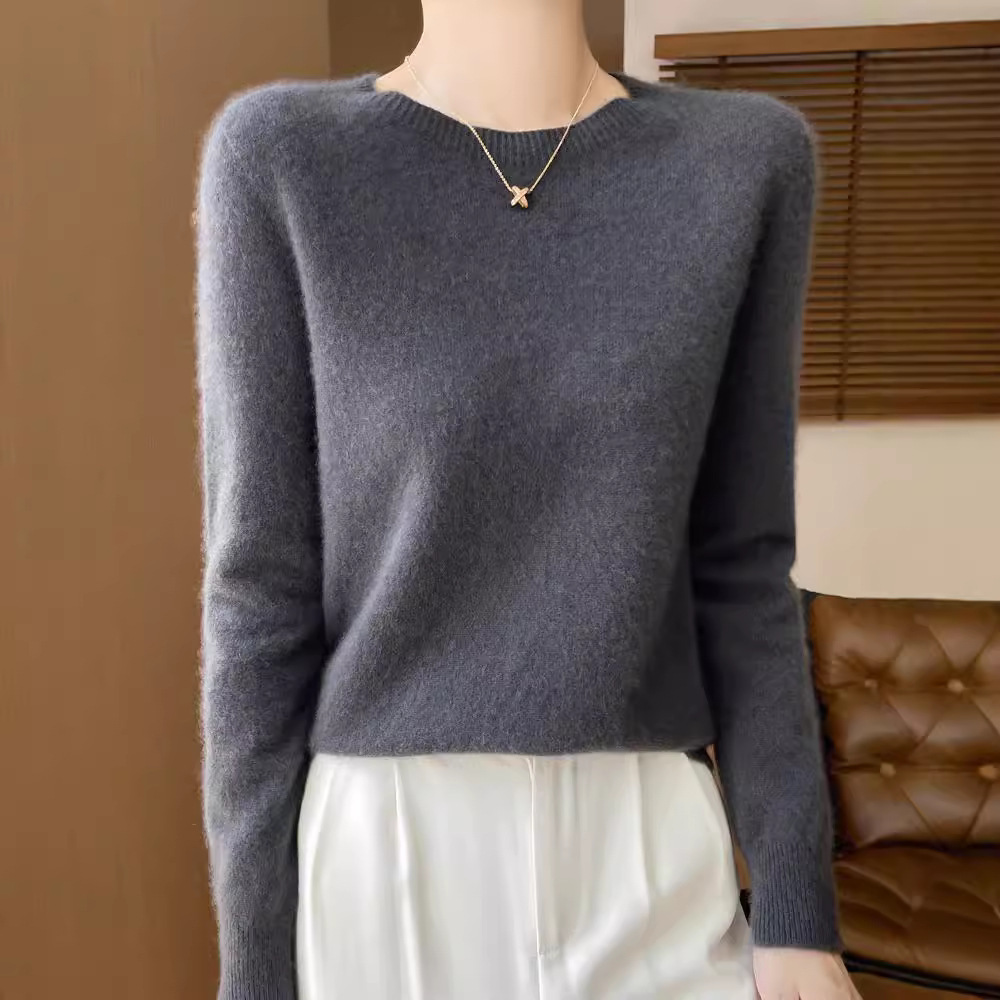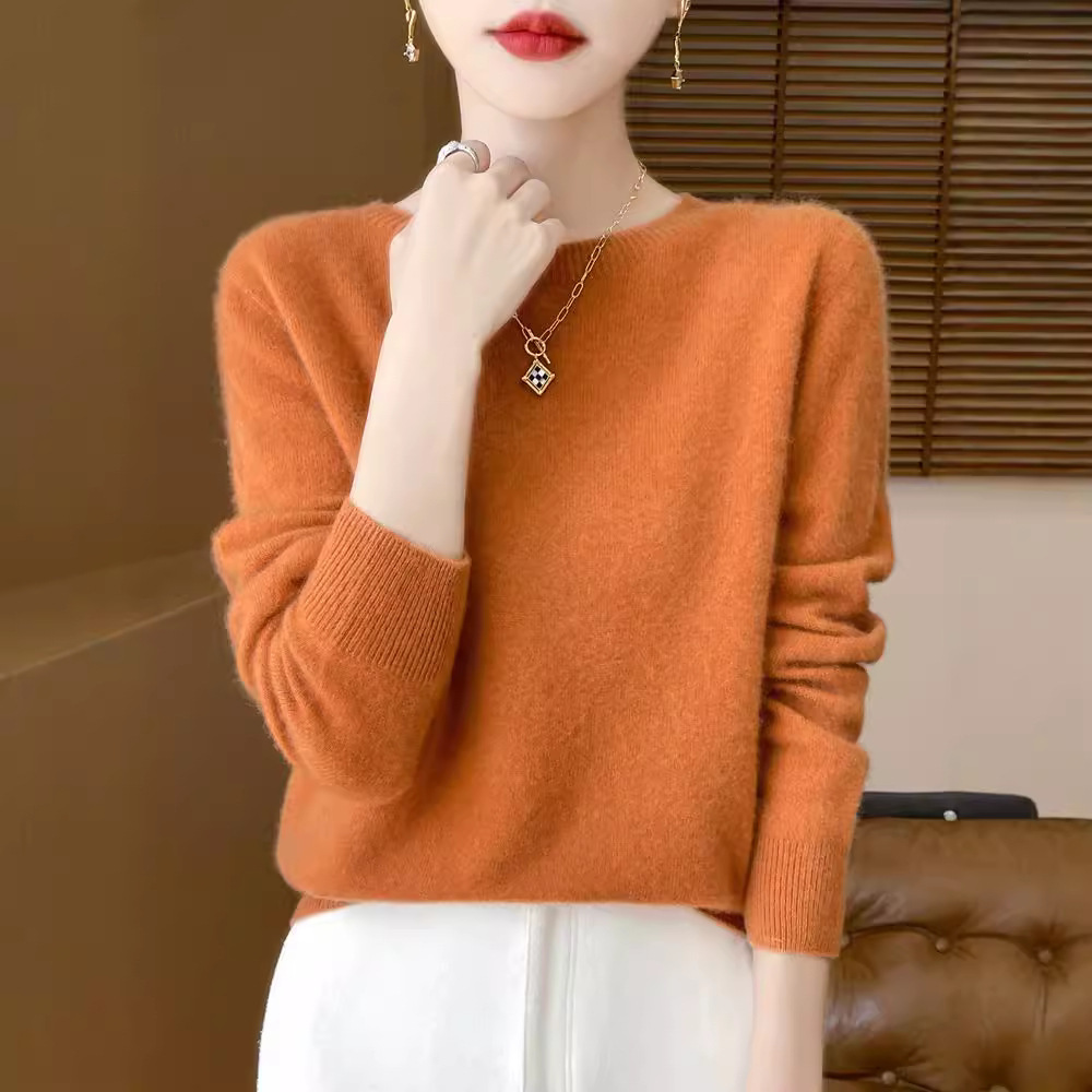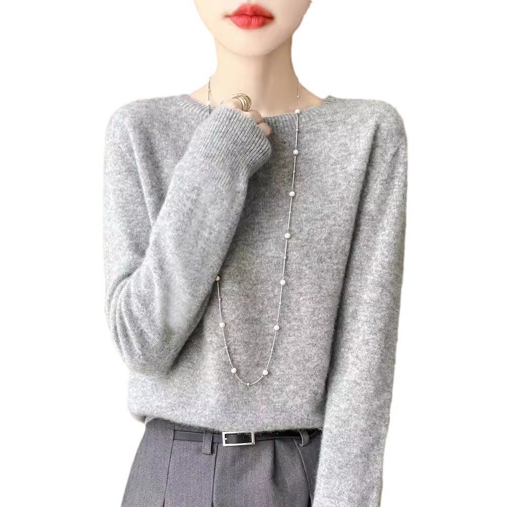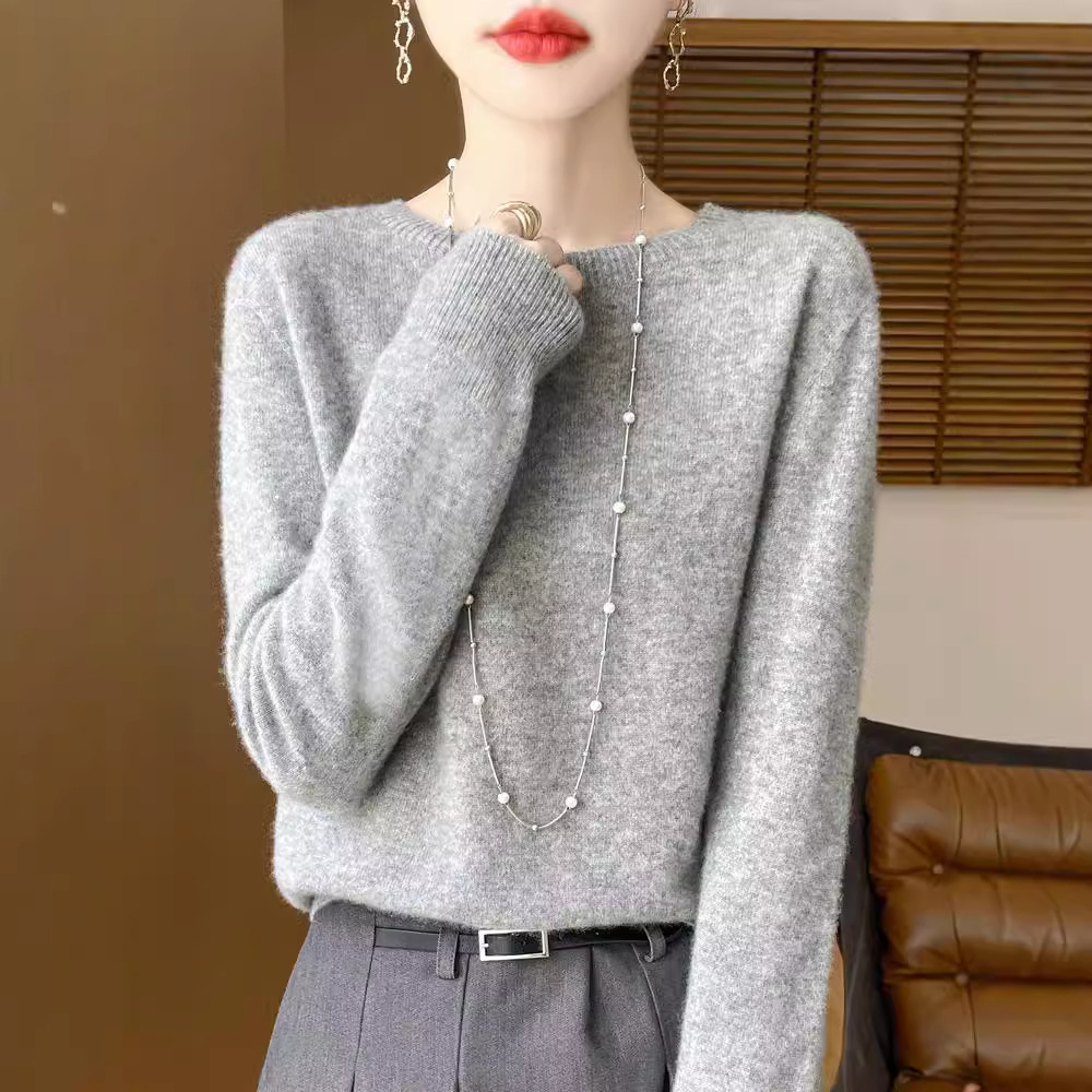 [Первая линия одежды] Чистый шерстяной свитер Женский трикотаж с круглым вырезом свободный отдых осенью и зимой