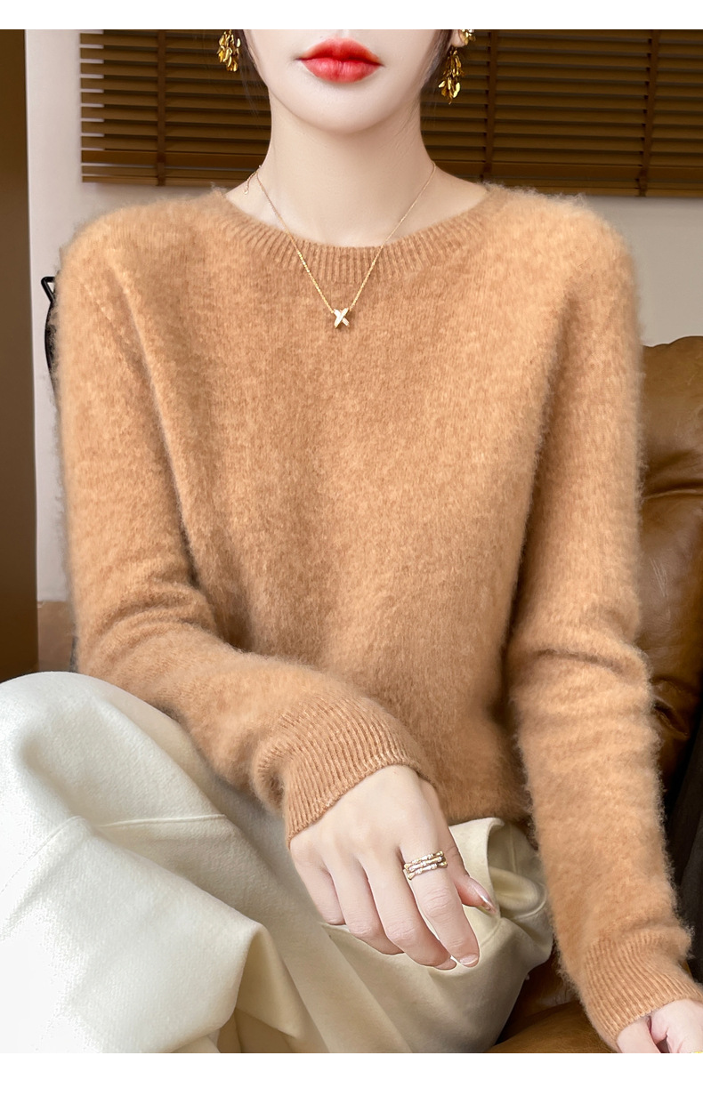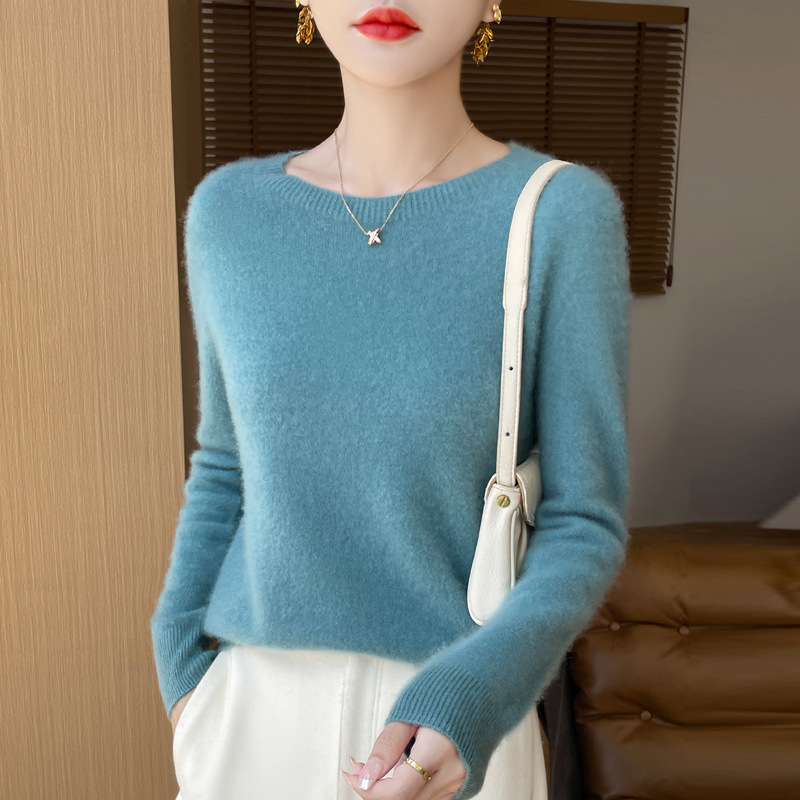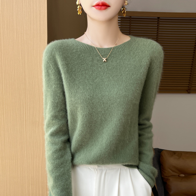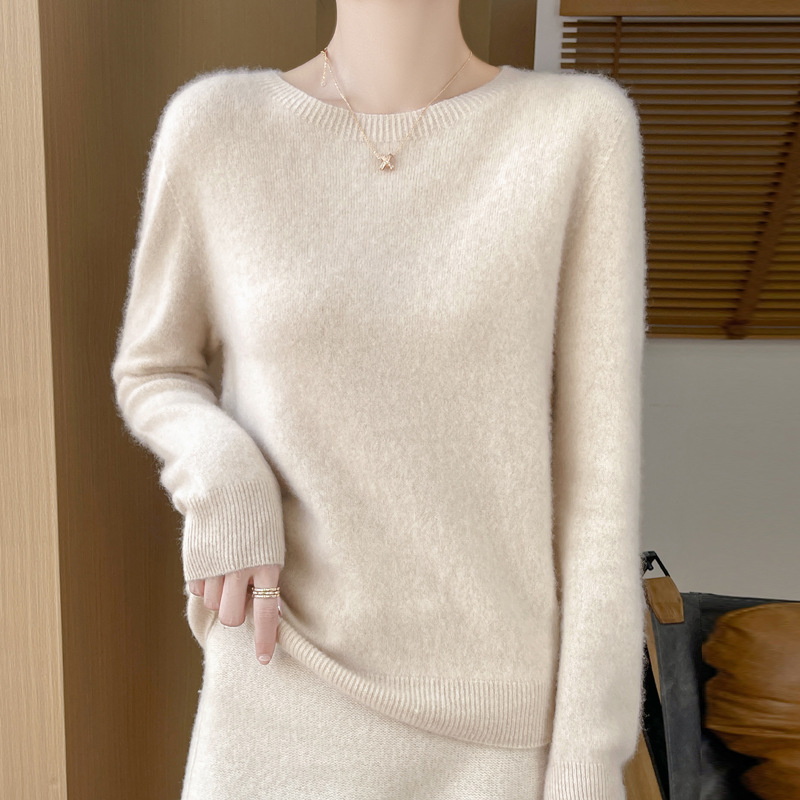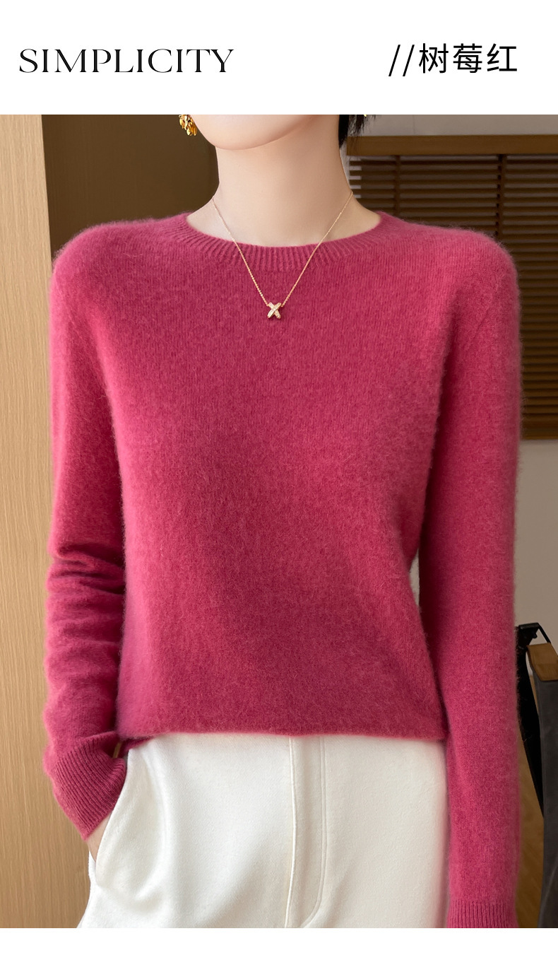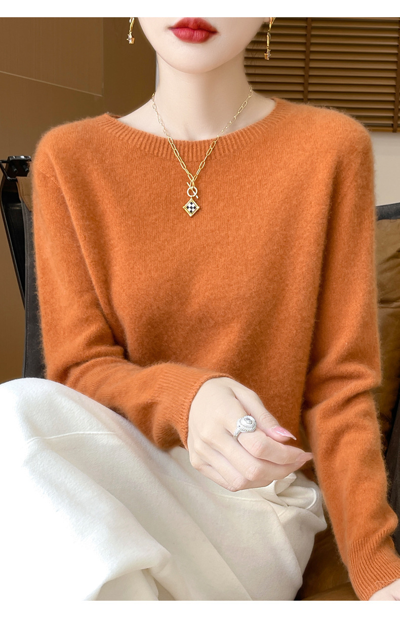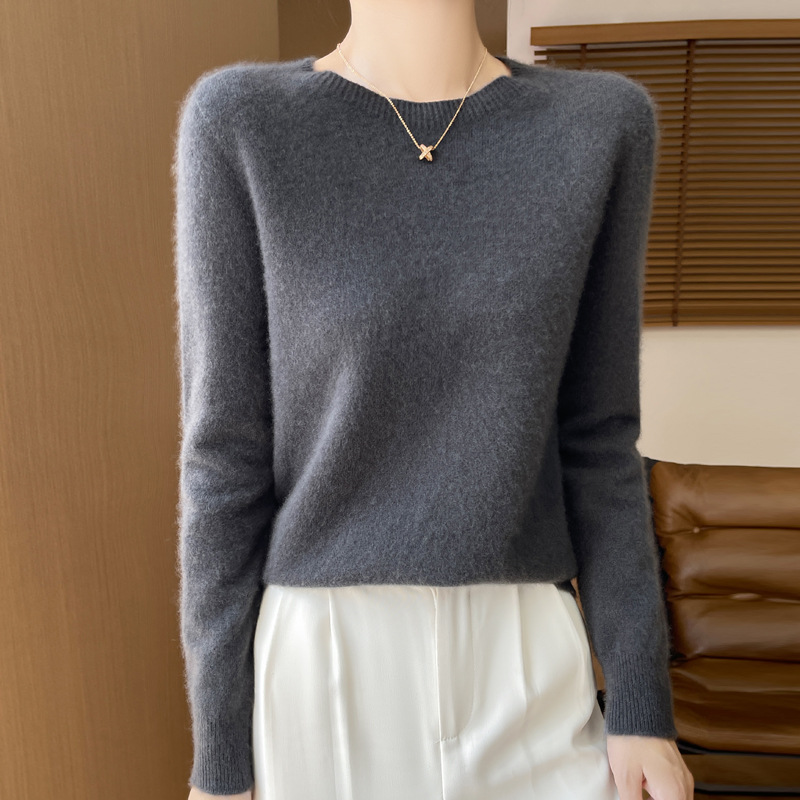 [Первая линия одежды] Чистый шерстяной свитер Женский трикотаж с круглым вырезом свободный отдых осенью и зимой