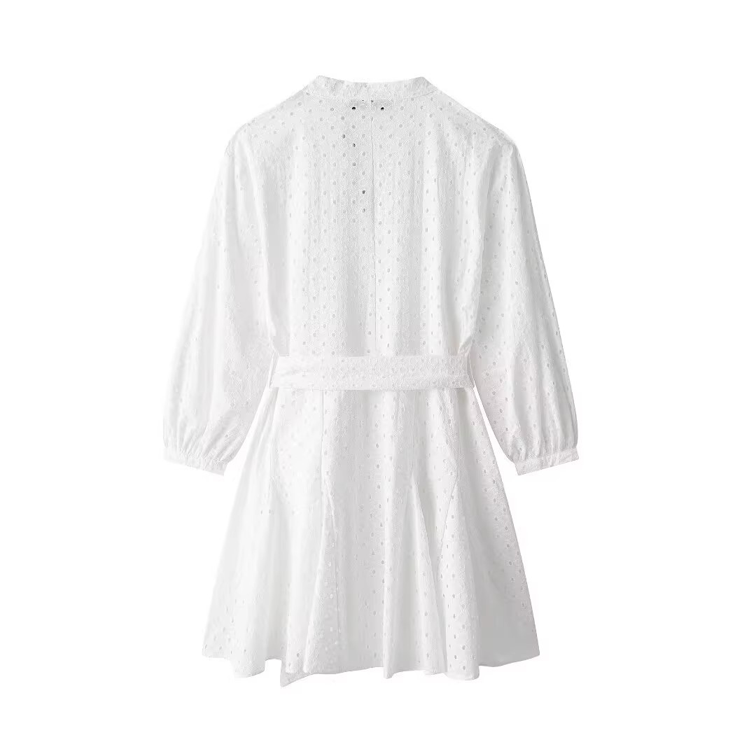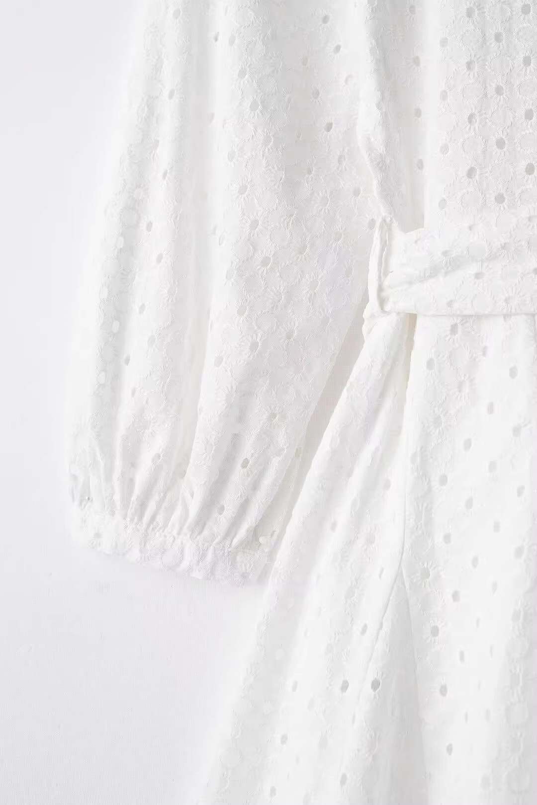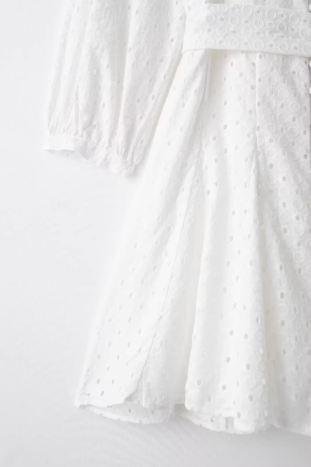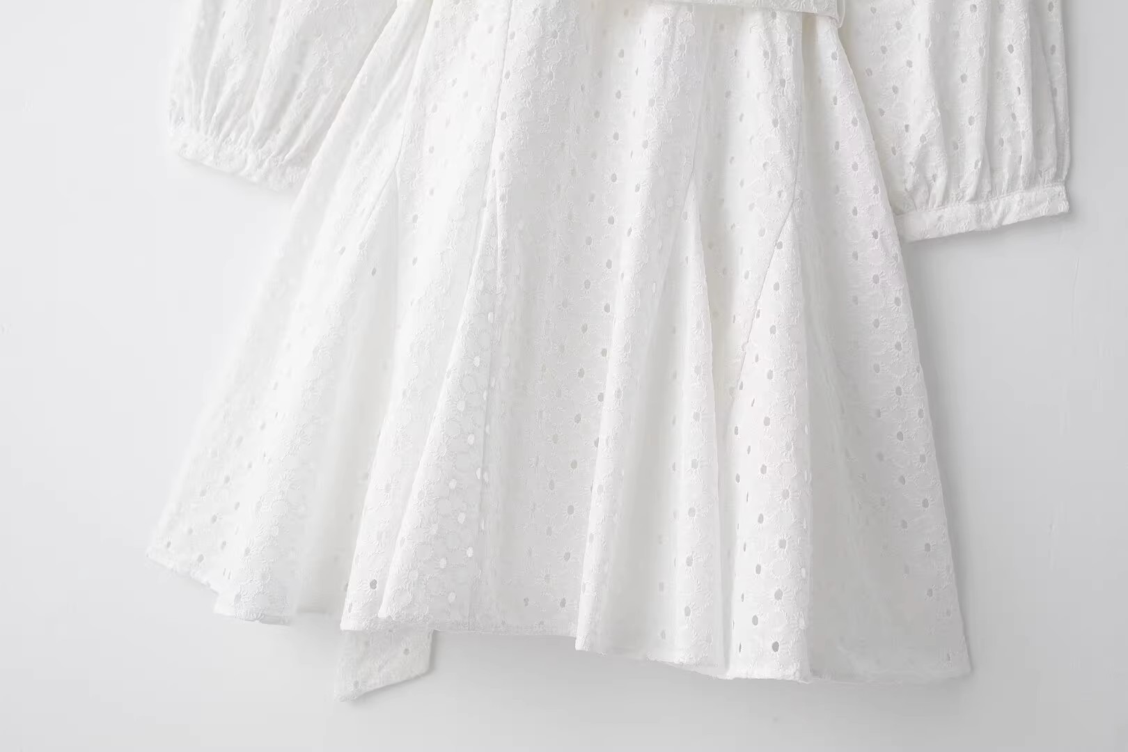 2024 осенний новый женский стиль европейский и американский стиль моды минималистское вырезное вышиваное короткое платье 3307663