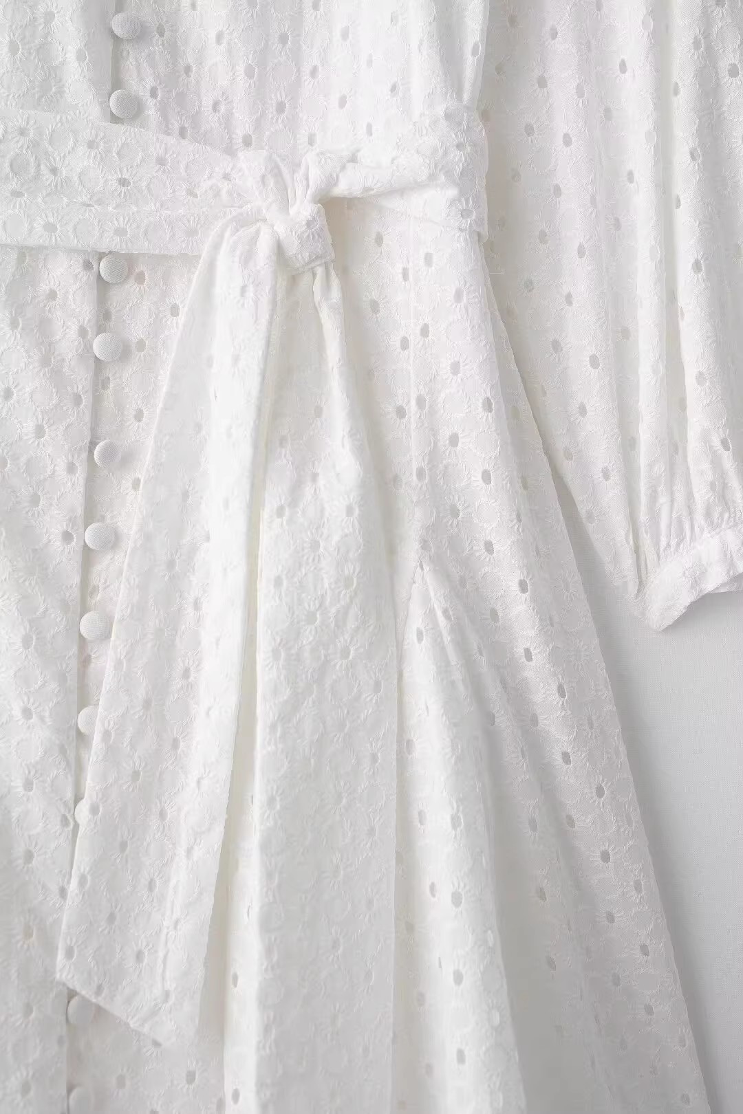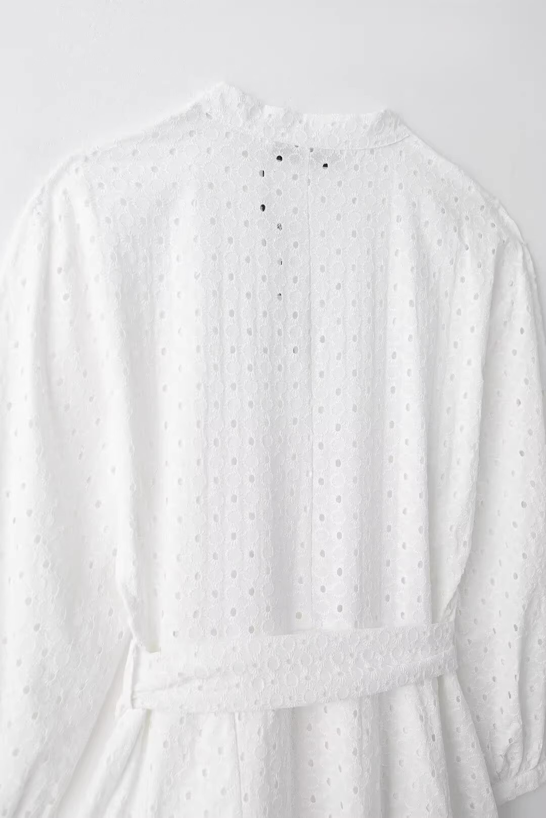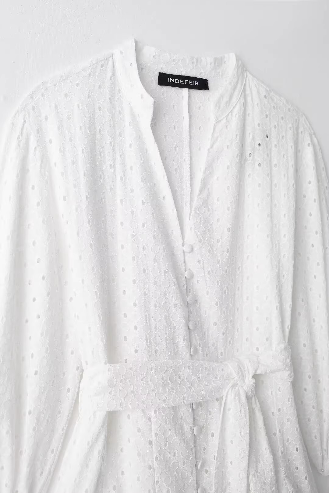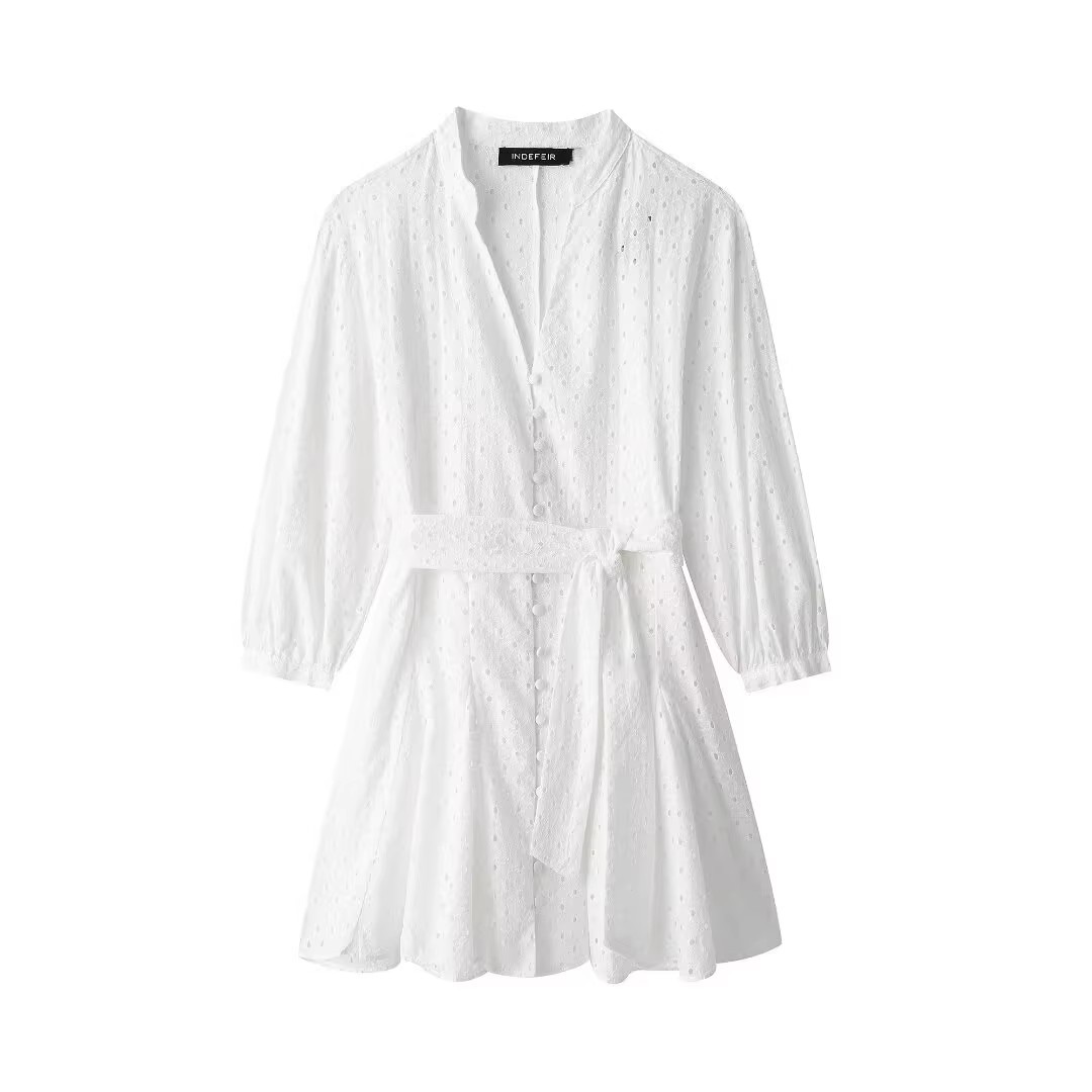 2024 осенний новый женский стиль европейский и американский стиль моды минималистское вырезное вышиваное короткое платье 3307663