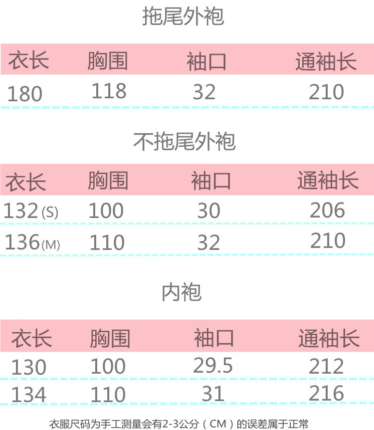 Халат Trail + внутренний халат + пояс + нижняя юбка + подтяжки; Халат без хвоста + внутренний халат + пояс + нижняя юбка + подтяжки
