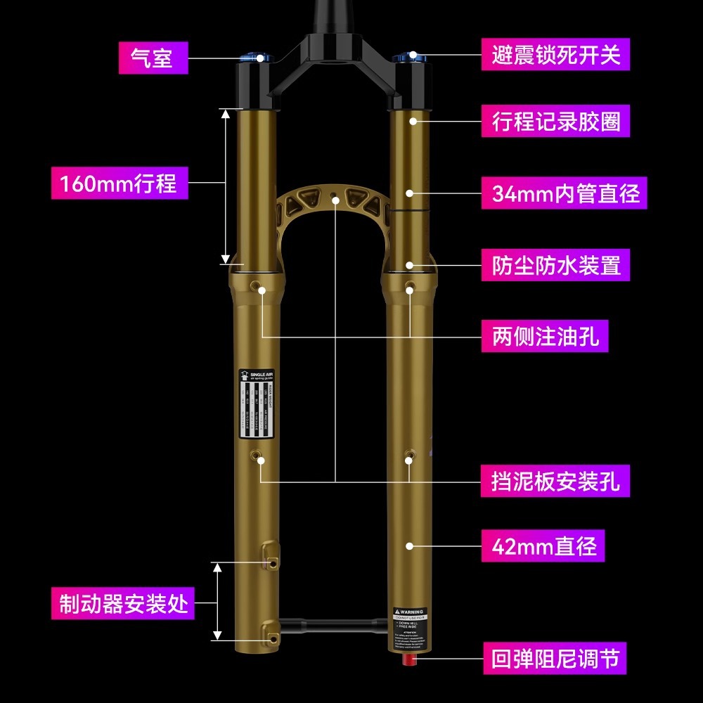 Углеродный гость TANKE Mountain Car Fork Быстрый демонтаж ствола оси амортизации давления 27.5/29-дюймовое давление черепахи кролика 36 трубок передняя вилка