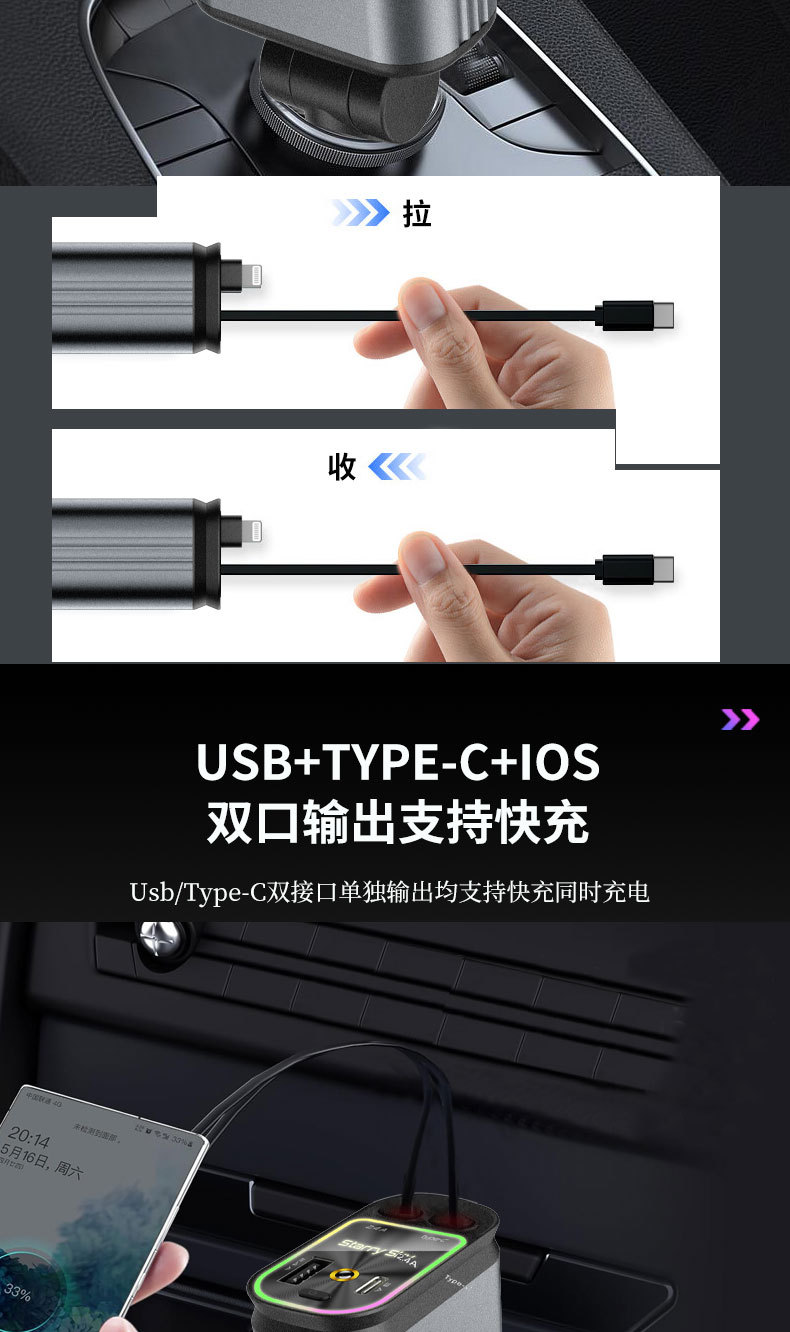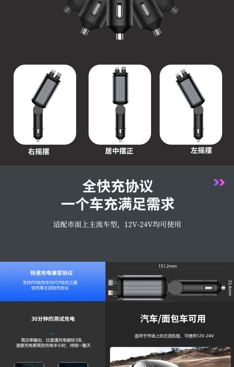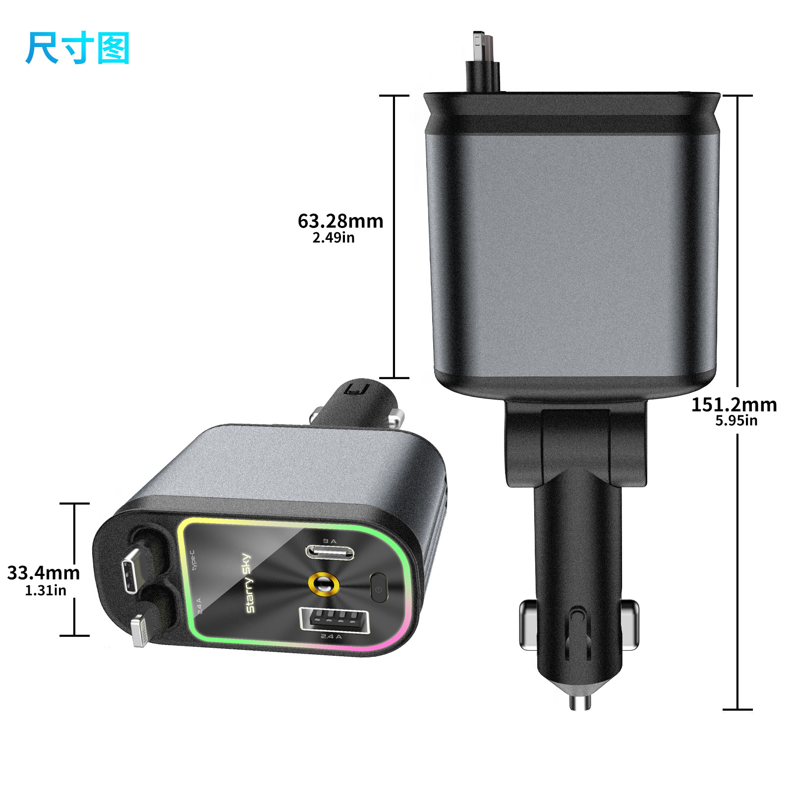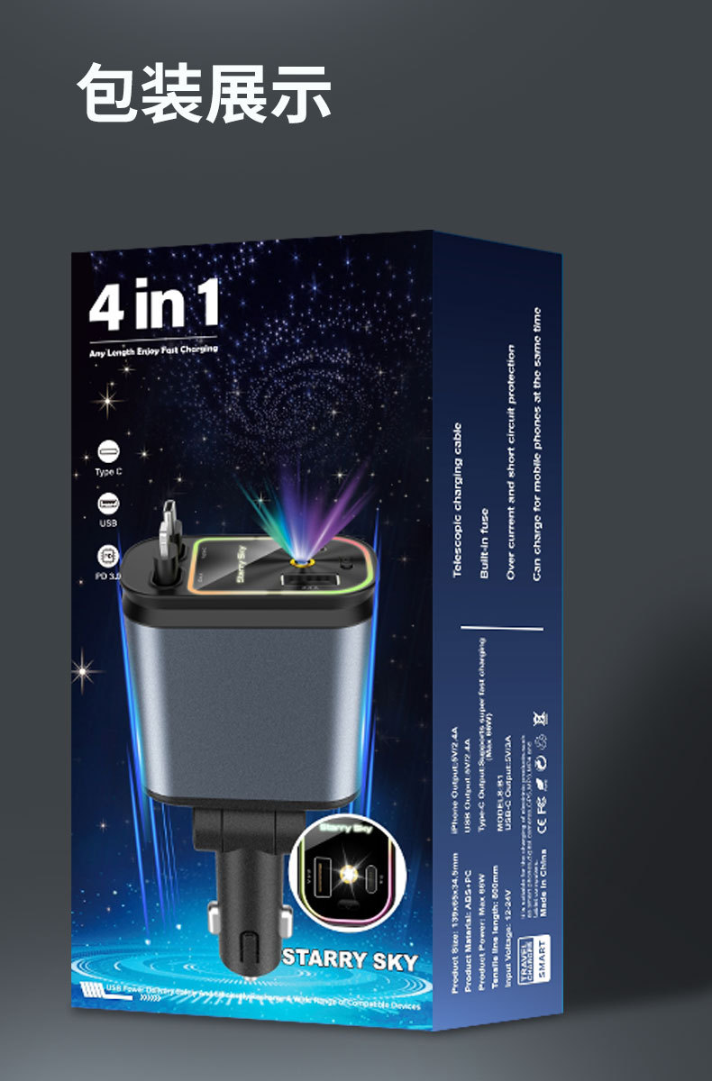 Трансграничный C3 Автомобильный телефон Зарядное устройство 66W Супер быстрая зарядка PD со звездным потолком проектор четыре в одном телескопическая линия B