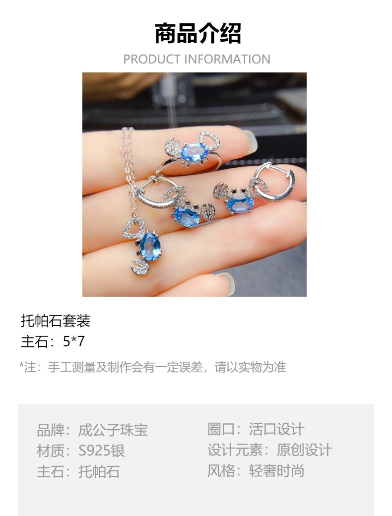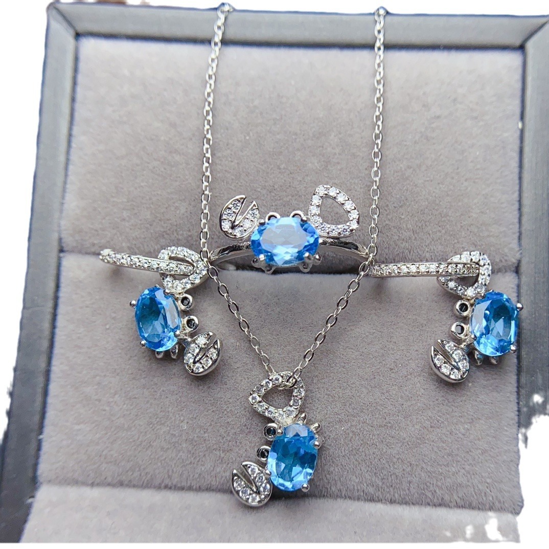 Новый натуральный набор топа S925 Серебряный инкрустированный основной камень 5*7 мм