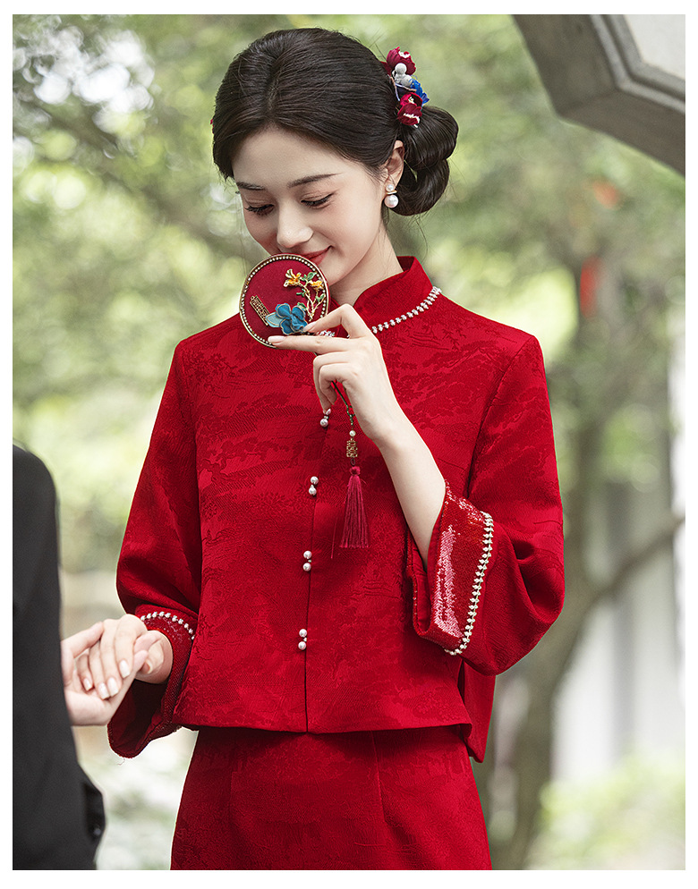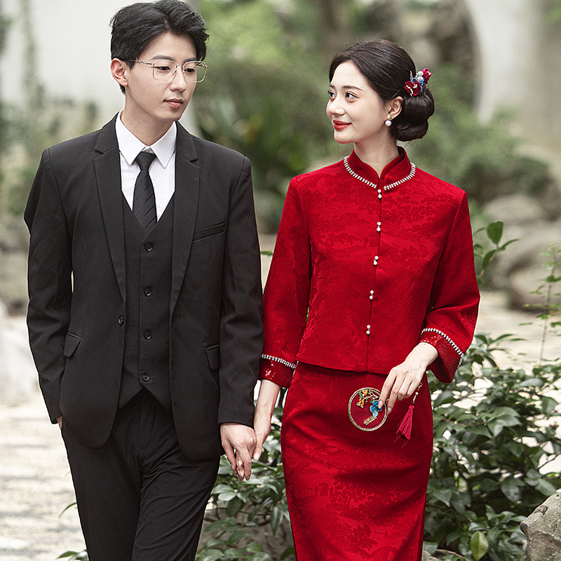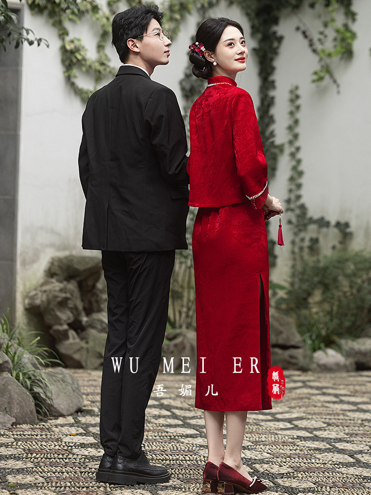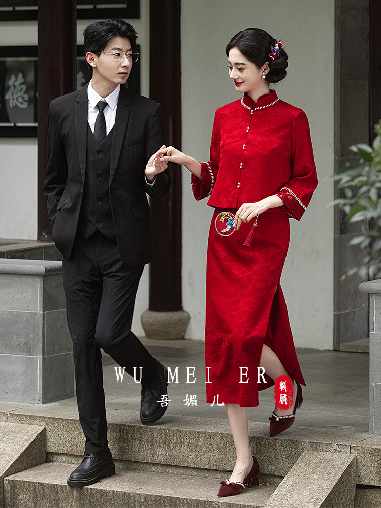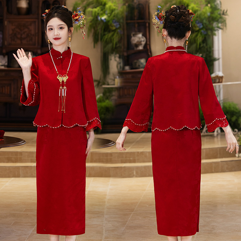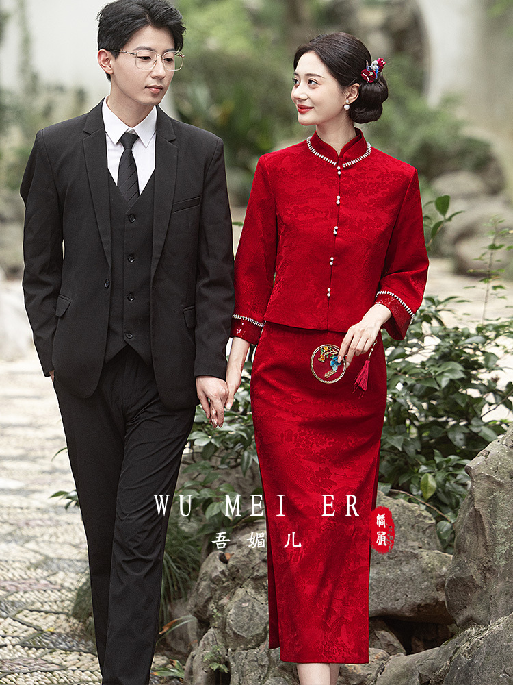 Новое китайское красное платье-ципао 2025 года, свадебный комплект из двух предметов для невесты, платье для тостов на свадьбу для невысоких женщин.