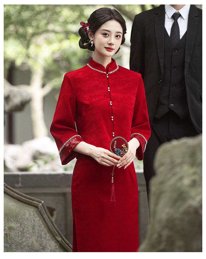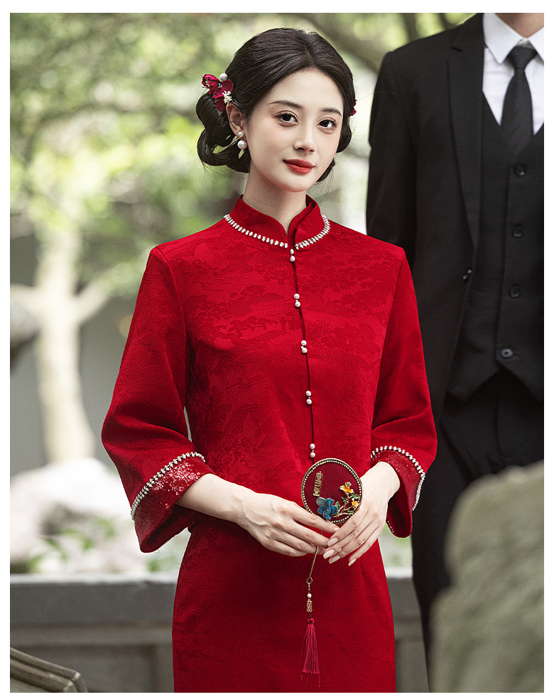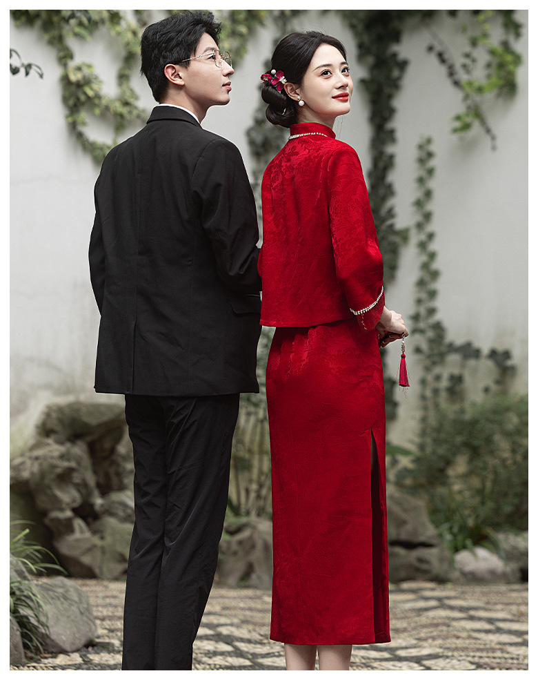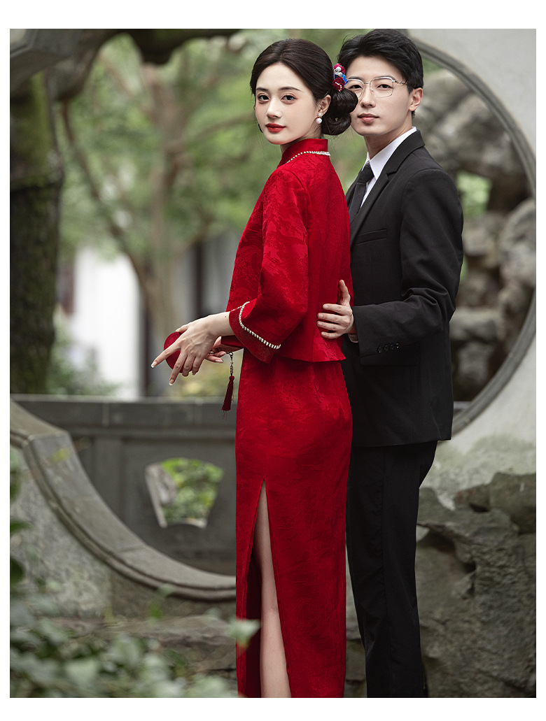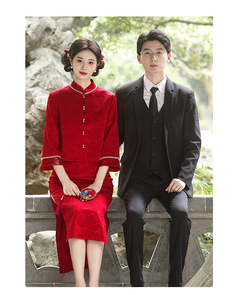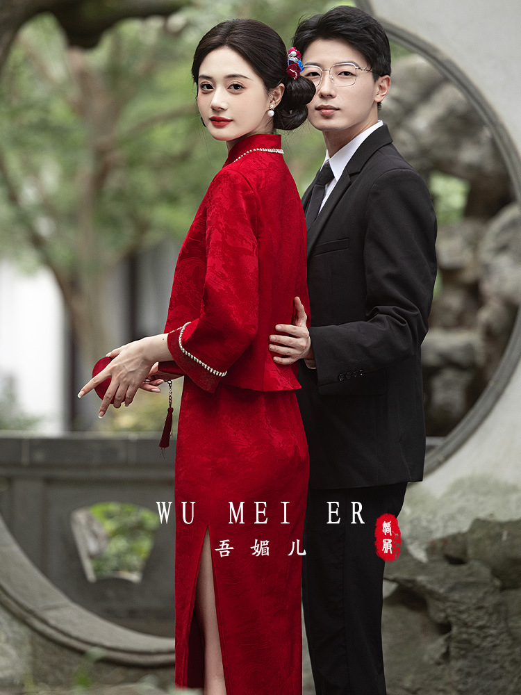 Новое китайское красное платье-ципао 2025 года, свадебный комплект из двух предметов для невесты, платье для тостов на свадьбу для невысоких женщин.