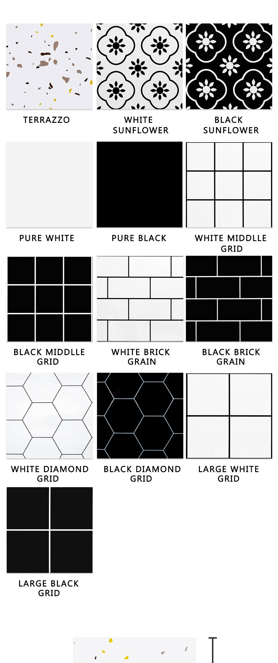 чистый черный; чистый белый; Терраццо; черный кирпичный узор; узор из белого кирпича; черный подсолнух; белый подсолнух; черный квадрат; белый квадрат; Белая девятиквадратная сетка; Черная девятисекционная сетка; черная ромбовидная сетка; Белый ромбовидный узор