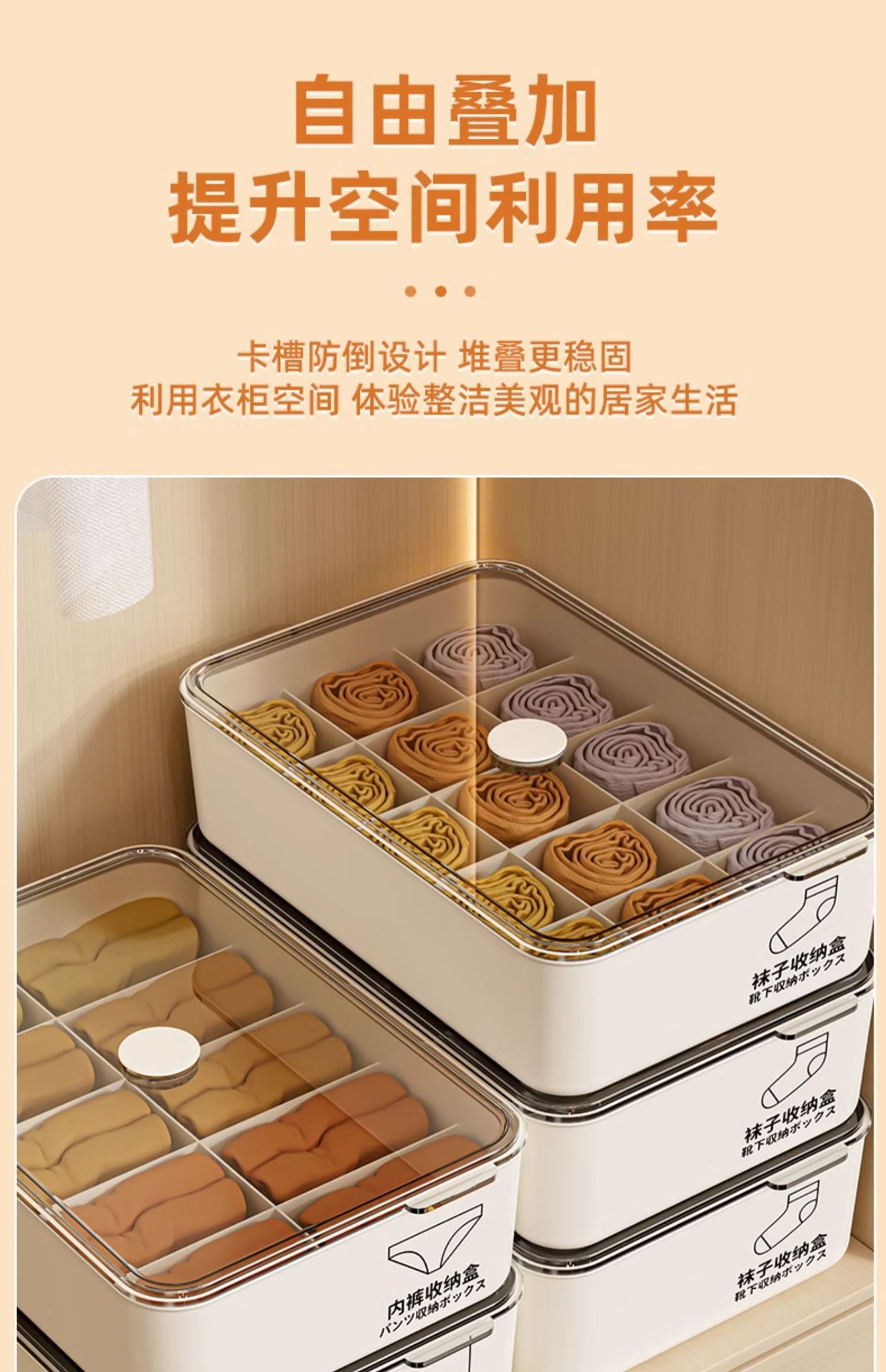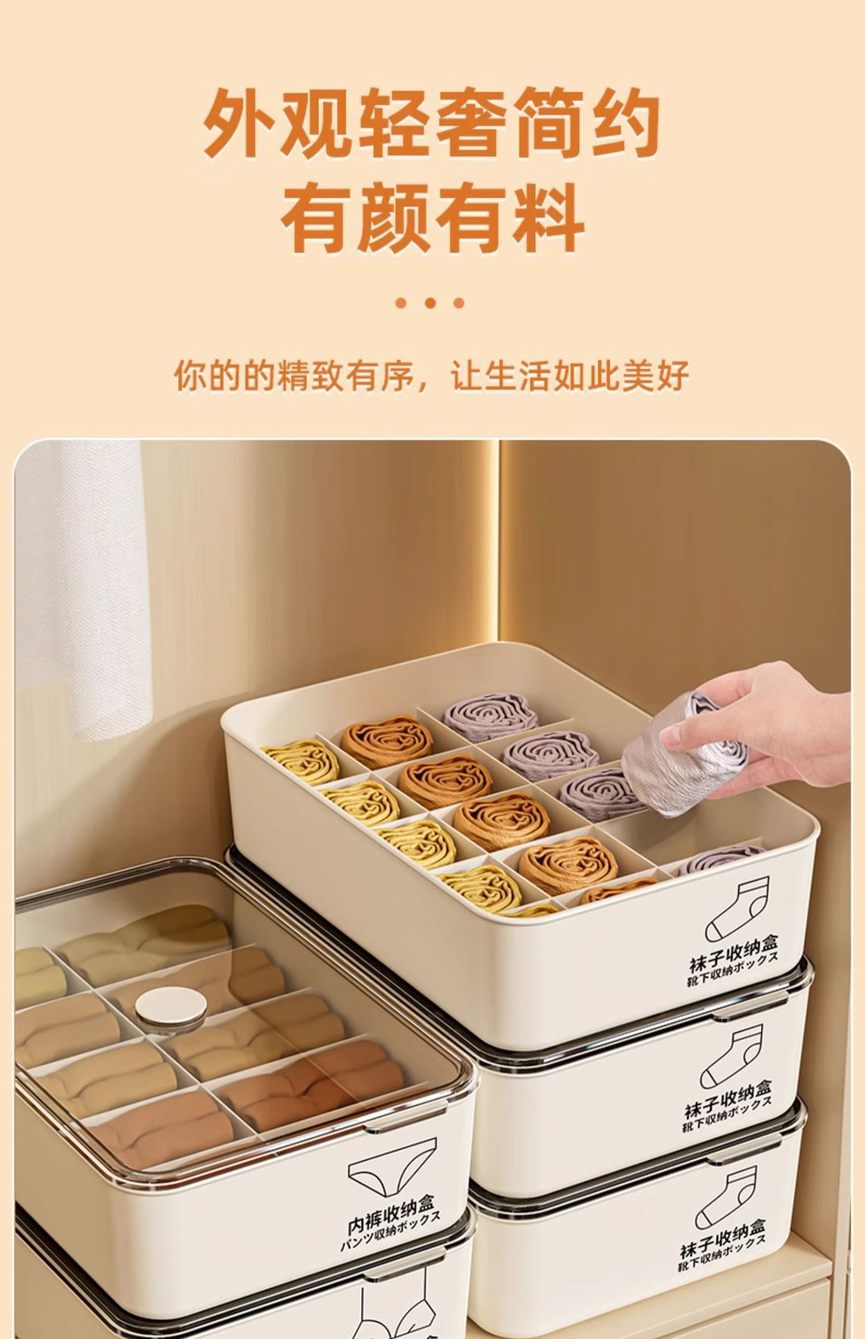 Ящик для хранения нижнего белья для домашнего использования, органайзер для носков и бюстгальтеров, шкаф для интимной одежды «три в одном» с крышкой.