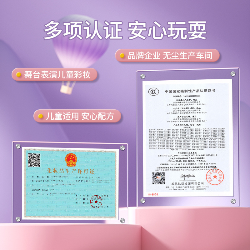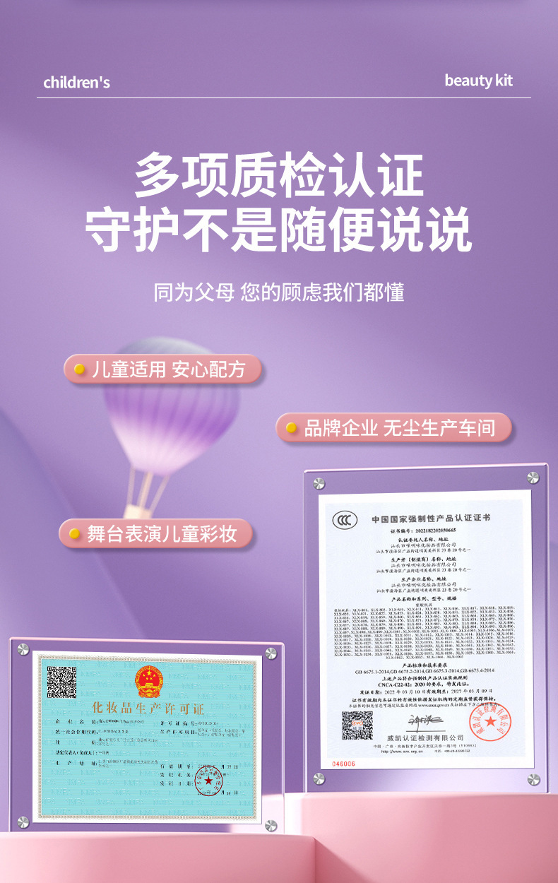 【产品证书】质检证书、化妆品生产许可证、3C、ASTM D4236,TRA,HR4040,CPC,EN71,7P认证
