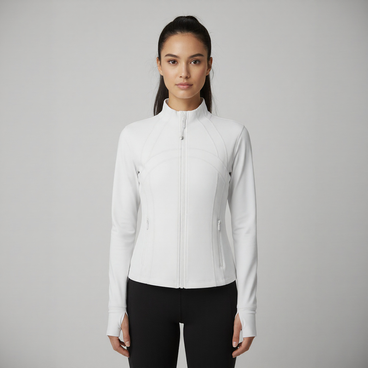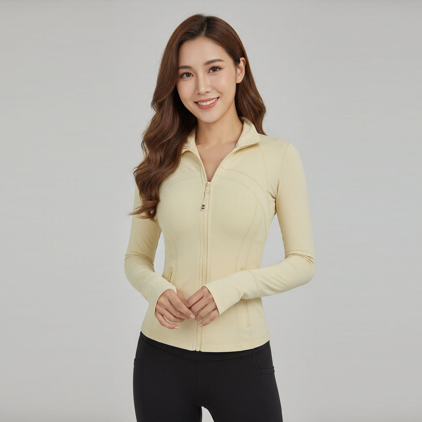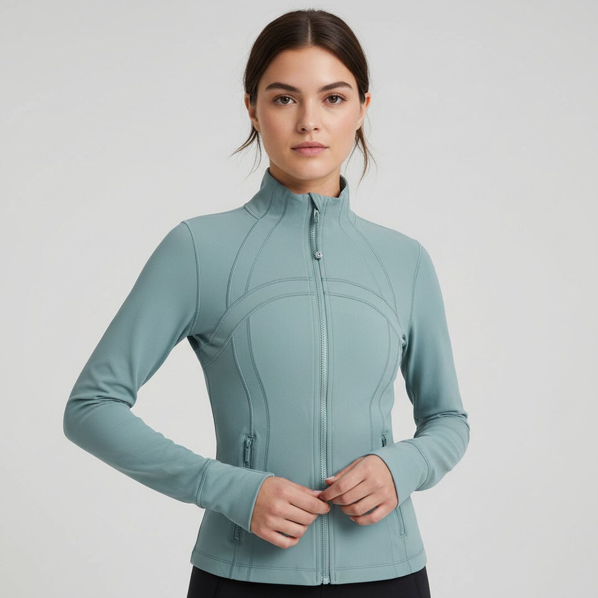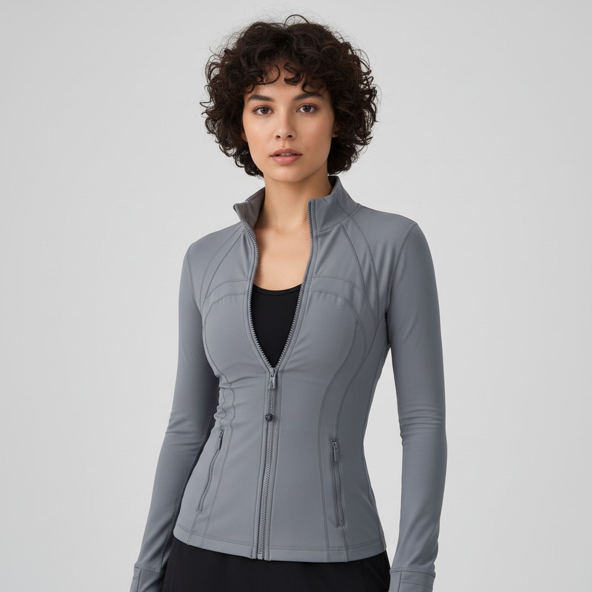 Женская спортивная куртка с воротником-стойкой для йоги, облегающая, эластичная, на молнии, для бега, повседневная, с длинным рукавом