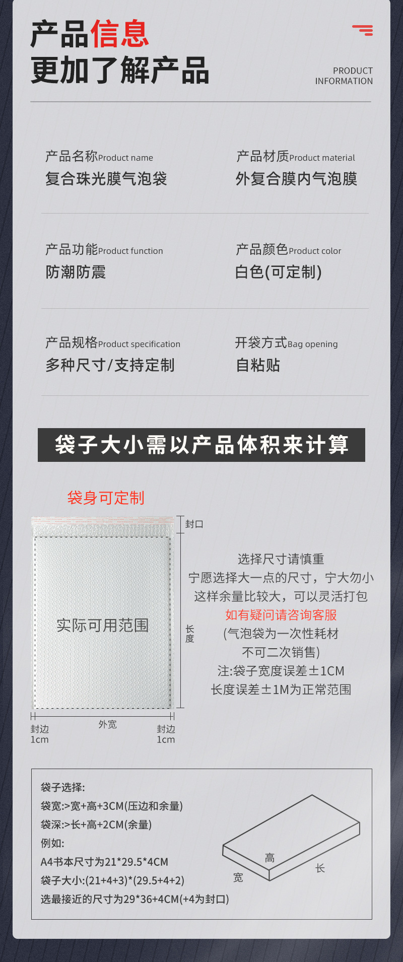 Композитный пузырчатый пакет весом 85 г (поставляется в полной коробке); 11*11+4см, 950 штук в коробке; Композитный пузырчатый пакет весом 85 г (поставляется в полной коробке); 11*13+4см, 800 штук в коробке; Композитный пузырчатый пакет весом 85 г (поставляется в полной коробке); 11*15+4см 700 штук в коробке; Композитный пузырчатый пакет весом 85 г (поставляется в полной коробке); 12*18+4см 550 штук в коробке; Композитный пузырчатый пакет весом 85 г (поставляется в полной коробке); 13*13+4см 700 штук в коробке; Композитный пузырчатый пакет весом 85 г (поставляется в полной коробке); 13*15+4см 600 штук в коробке; Композитный пузырчатый пакет весом 85 г (поставляется в полной коробке); 13*18+4см 530 штук в коробке; Композитный пузырчатый пакет весом 85 г (поставляется в полной коробке); 13*21+4см 450 штук в коробке; Композитный пузырчатый пакет весом 85 г (поставляется в полной коробке); 13*23+4см 430 штук в коробке; Композитный пузырчатый пакет весом 85 г (поставляется в полной коробке); 14*16+4см 550 штук в коробке; Композитный пузырчатый пакет весом 85 г (поставляется в полной коробке); 15*18+4см 450 штук в коробке; Композитный пузырчатый пакет весом 85 г (поставляется в полной коробке); 15*21+4см 380 штук в коробке; Композитный пузырчатый пакет весом 85 г (поставляется в полной коробке); 15*25+4см 320 штук в коробке; Композитный пузырчатый пакет весом 85 г (поставляется в полной коробке); 16*16+4см, 470 штук в коробке; Композитный пузырчатый пакет весом 85 г (поставляется в полной коробке); 16*22+4см 350 штук в коробке; Композитный пузырчатый пакет весом 85 г (поставляется в полной коробке); 18*18+4см 380 штук в коробке; Композитный пузырчатый пакет весом 85 г (поставляется в полной коробке); 18*20+4см 350 штук в коробке; Композитный пузырчатый пакет весом 85 г (поставляется в полной коробке); 18*23+4см 300 штук в коробке; Композитный пузырчатый пакет весом 85 г (поставляется в полной коробке); 19*28+4см 240 штук в коробке; Композитный пузырчатый пакет весом 85 г (поставляется в полной коробке); 20*20+4см, 300 штук в коробке; Композитный пузырчатый пакет весом 85 г (поставляется в полной коробке); 20*25+4см, 250 штук в коробке; Композитный пузырчатый пакет весом 85 г (поставляется в полной коробке); 20*30+4см 210 штук в коробке; Композитный пузырчатый пакет весом 85 г (поставляется в полной коробке); 23*28+4см 190 штук в коробке; Композитный пузырчатый пакет весом 85 г (поставляется в полной коробке); 24*25+4см, 200 штук в коробке; Композитный пузырчатый пакет весом 85 г (поставляется в полной коробке); 26*30+4см 160 штук в коробке; Композитный пузырчатый пакет весом 85 г (поставляется в полной коробке); 26*32+4см, 150 штук в коробке; Композитный пузырчатый пакет весом 85 г (поставляется в полной коробке); 26*36+4см 140 штук в коробке; Композитный пузырчатый пакет весом 85 г (поставляется в полной коробке); 28*32+4см 130 штук в коробке; Композитный пузырчатый пакет весом 85 г (поставляется в полной коробке); 29*36+4см 120 штук в коробке; Композитный пузырчатый пакет весом 85 г (поставляется в полной коробке); 30*30+4см 135 штук в коробке; Композитный пузырчатый пакет весом 85 г (поставляется в полной коробке); 30*40+4см, 100 штук в коробке; Композитный пузырчатый пакет весом 85 г (поставляется в полной коробке); 32*42+4см 90 штук в коробке; Композитный пузырчатый пакет весом 85 г (поставляется в полной коробке); 35*35+4см, 100 штук в коробке; Композитный пузырчатый пакет весом 85 г (поставляется в полной коробке); 35*40+4см 90 штук в коробке; Композитный пузырчатый